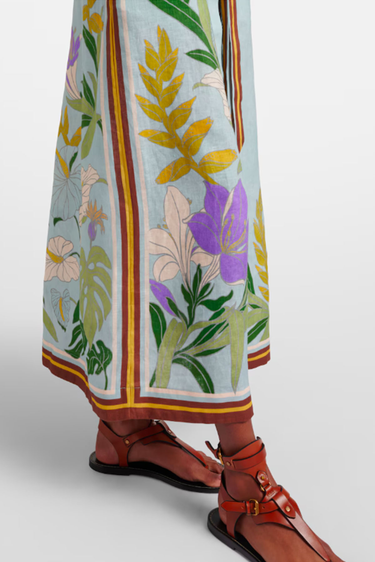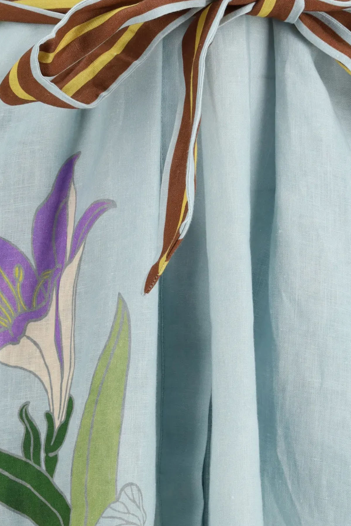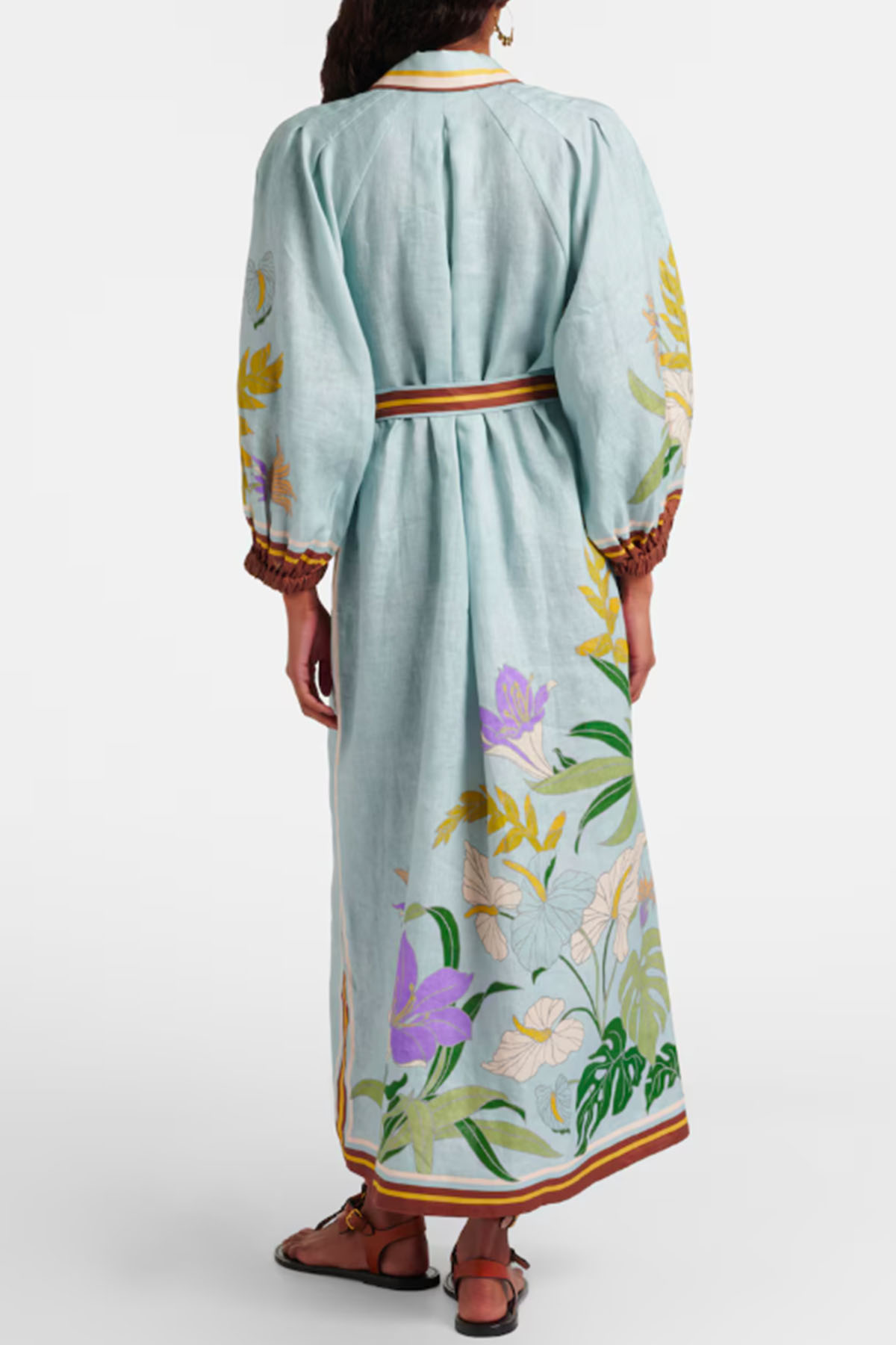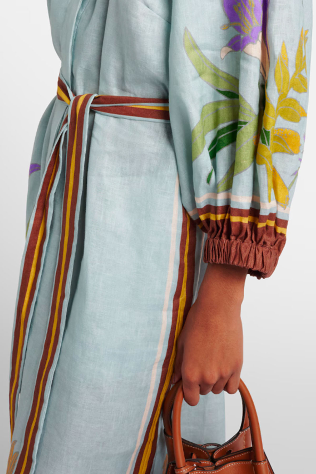 Relaxed midi shirt dress, Pointed collar with band, Concealed placket with covered buttons, Short raglan sleeves with shoulder pleats and elasticated cuffs, Removable fabric belt, Waistband with belt loops, Side pockets, Ankle length.