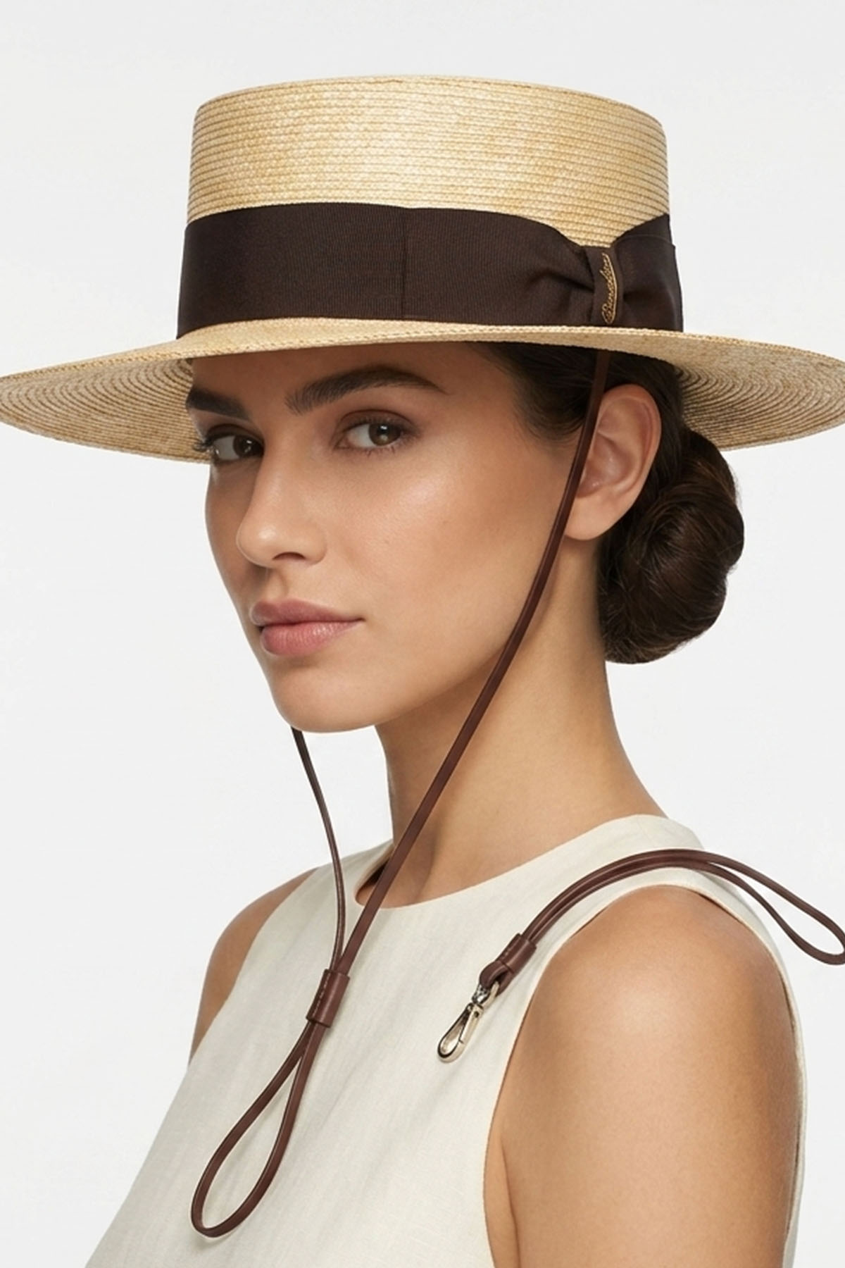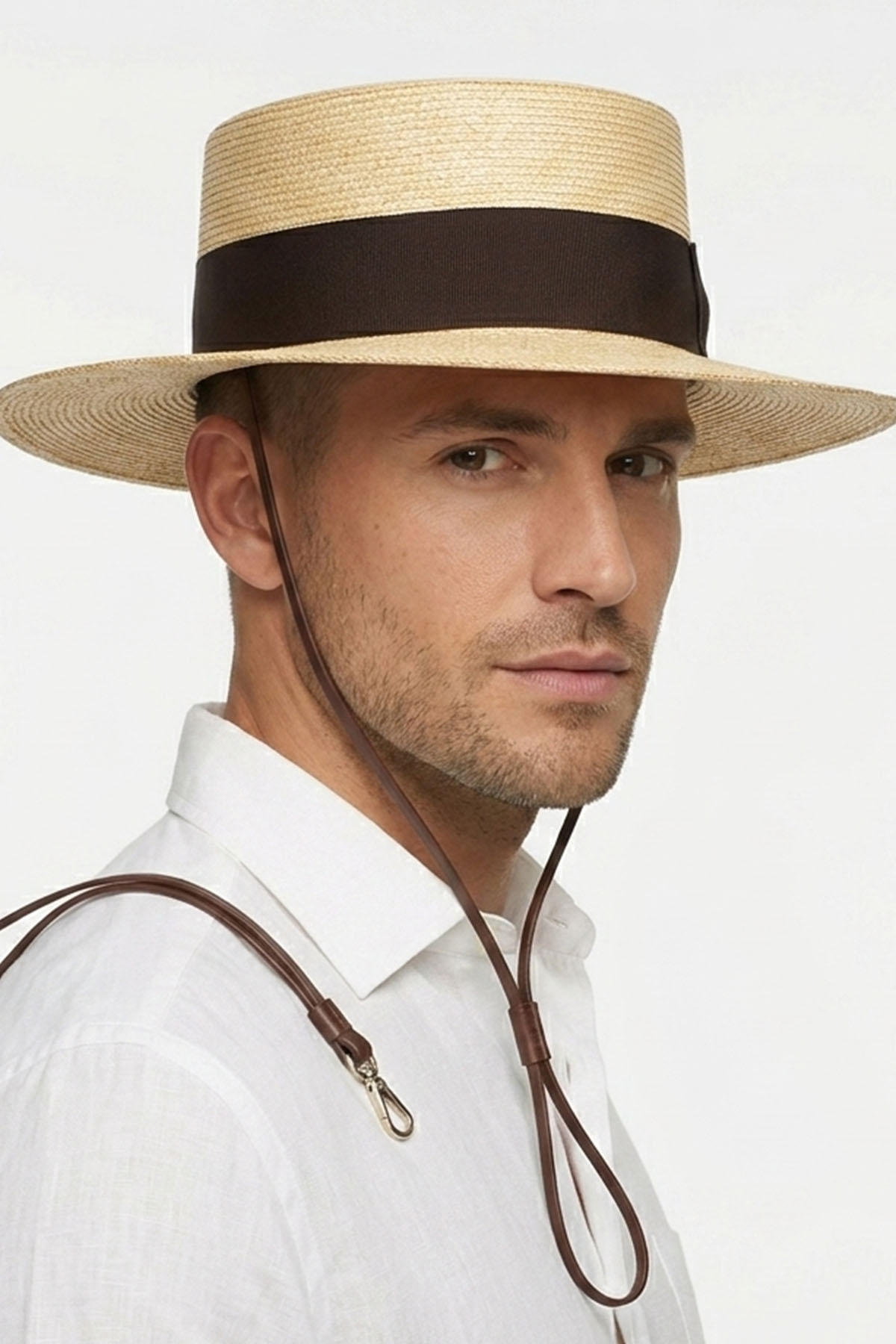 Made of braided straw, crafted to create a durable yet lightweight weave, it features a medium brim of approximately 6 cm. A 4 cm ribbed belt with a gaucho chin strap completes the design. Made in Italy