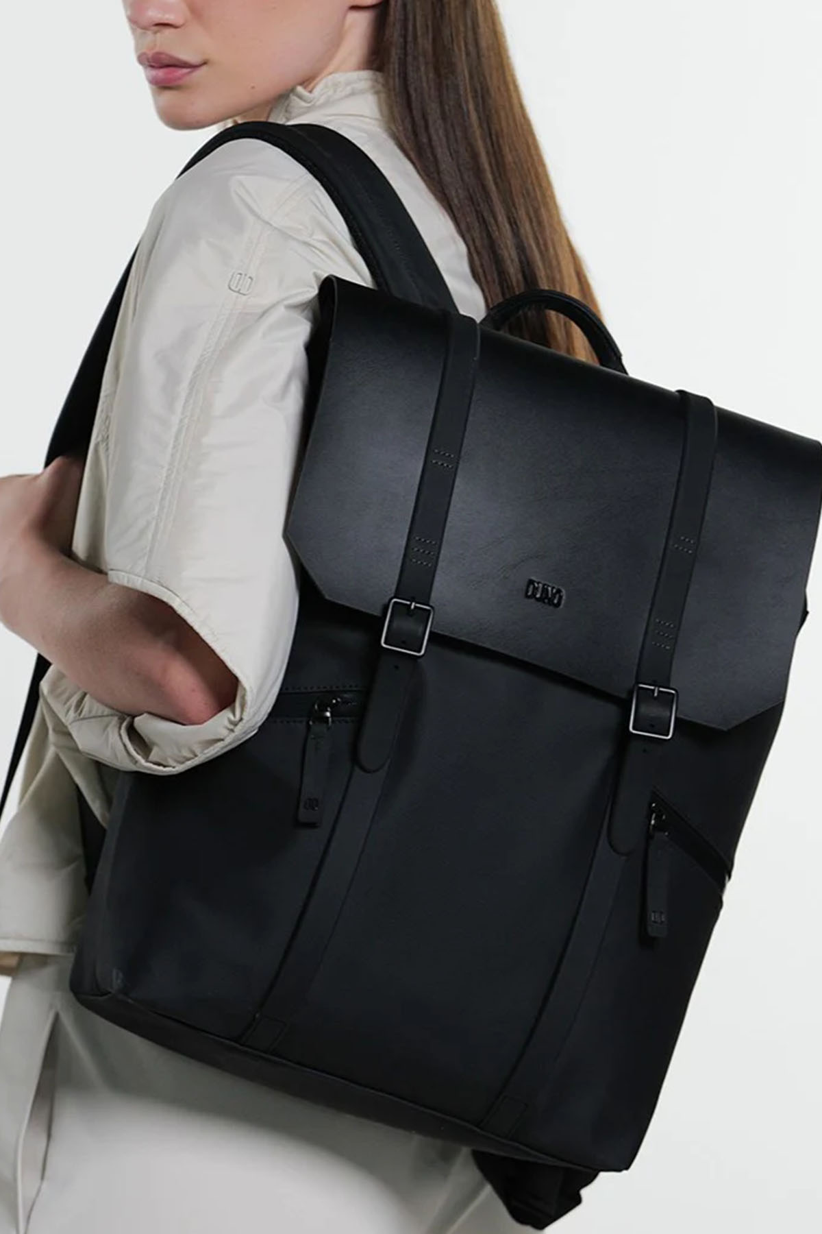 Water-repellent backpack for laptops up to 15", front closure with magnetic snaps, front side pockets with water-resistant zippers, hidden front pocket with velcro closure, main zippered pocket, padded interior pocket for laptops up to 15", multifunctional interior pockets, padded back with large zippered pocket and adjustable padded shoulder straps.