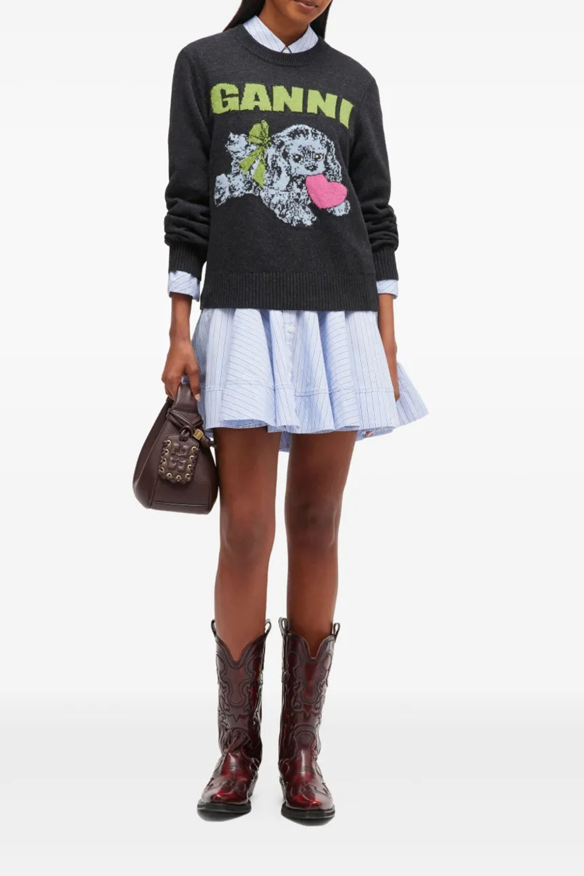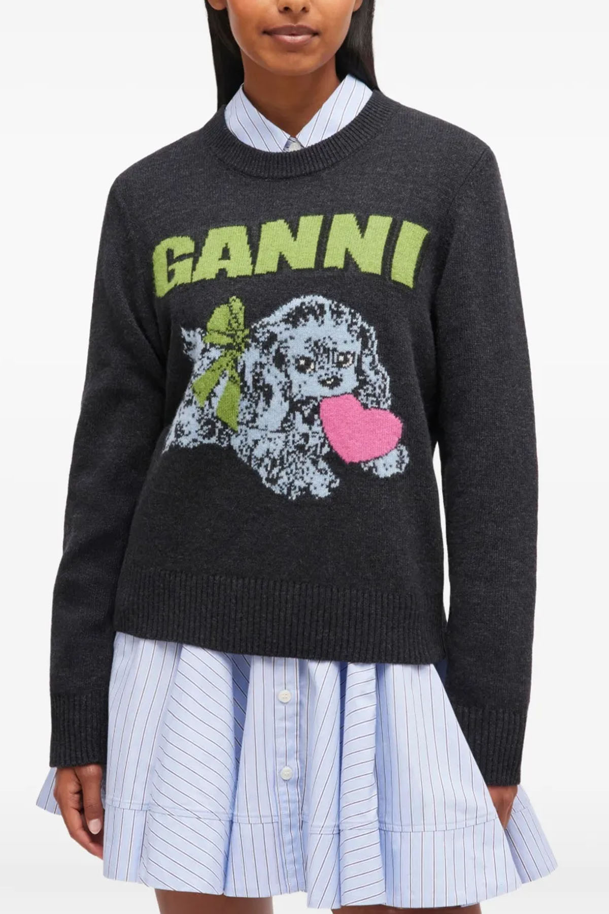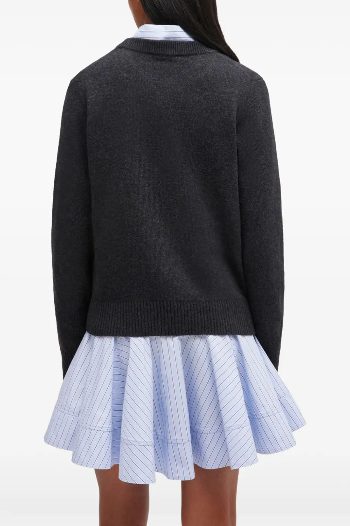 Crew neck, long sleeves, ribbed cuffs, and front logo.