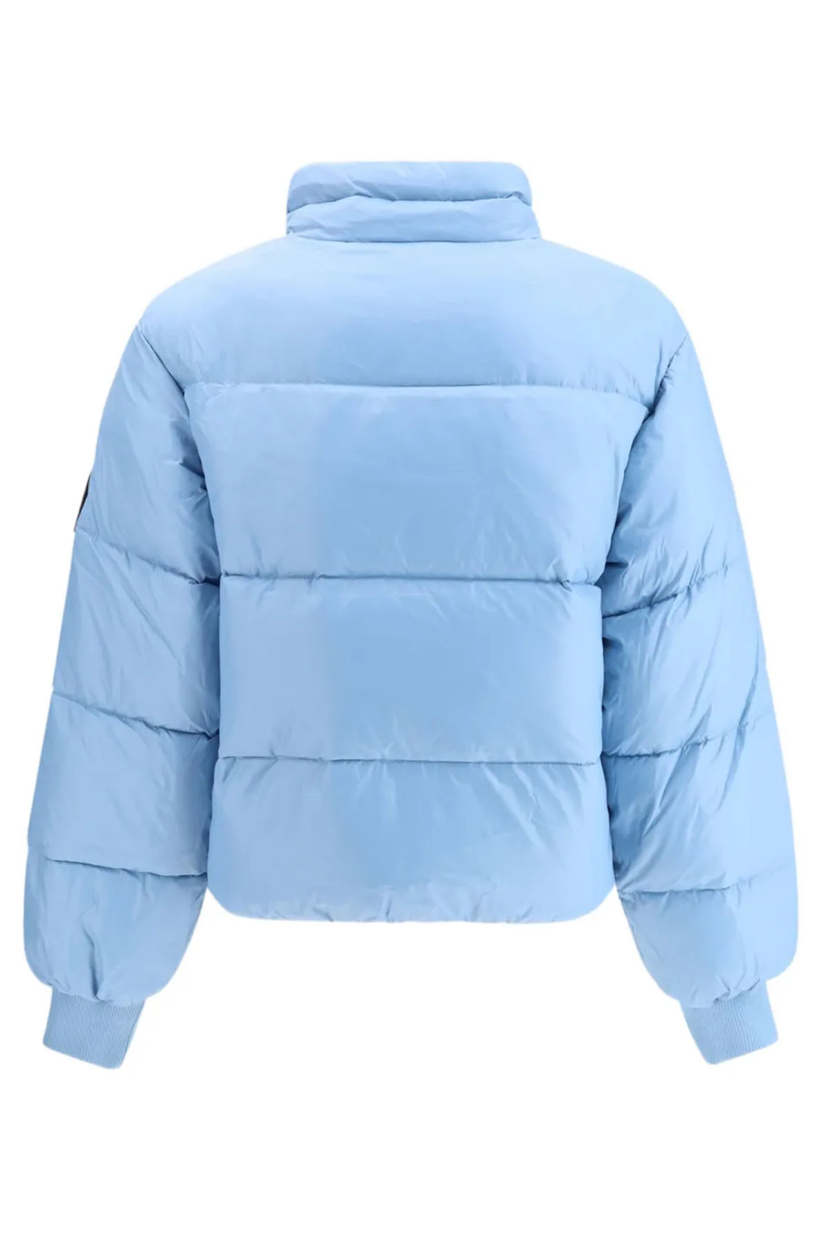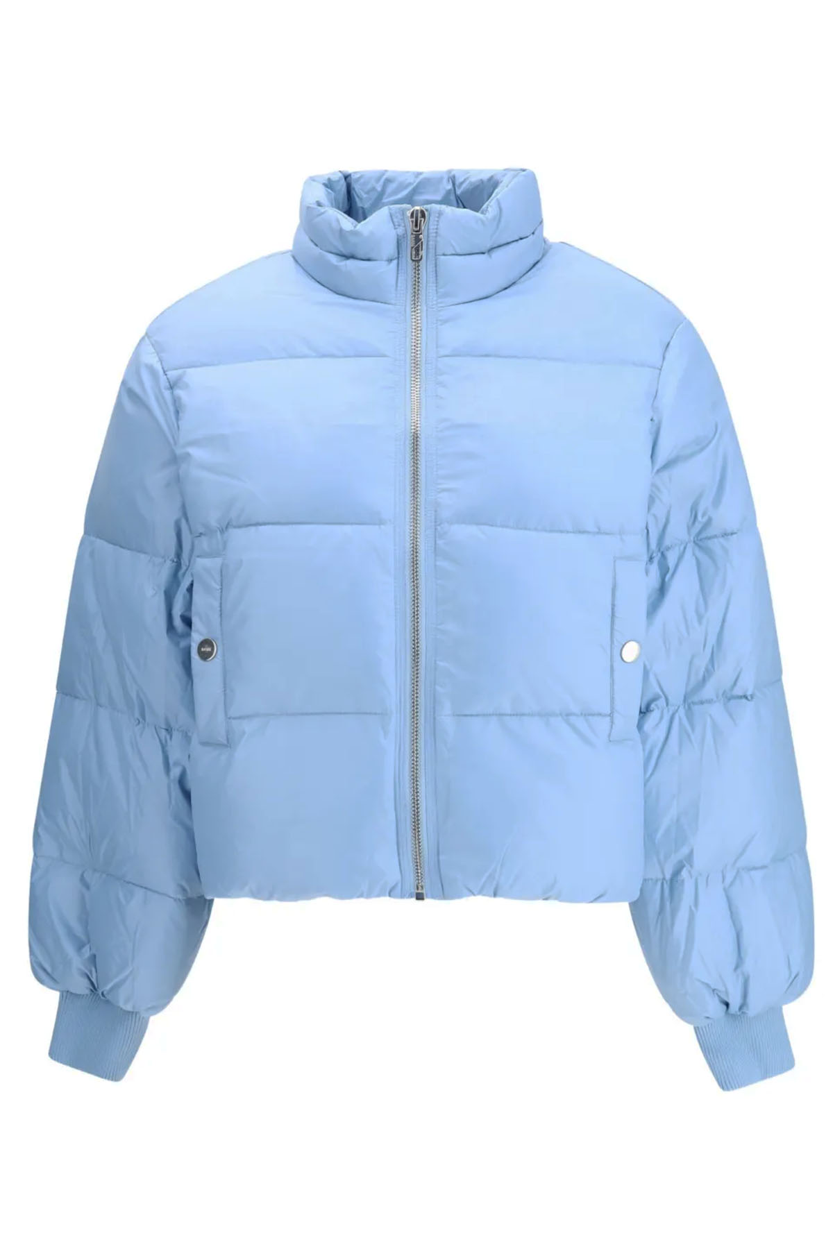 This model features a high collar, front zip closure, two pockets, and ribbed cuffs.