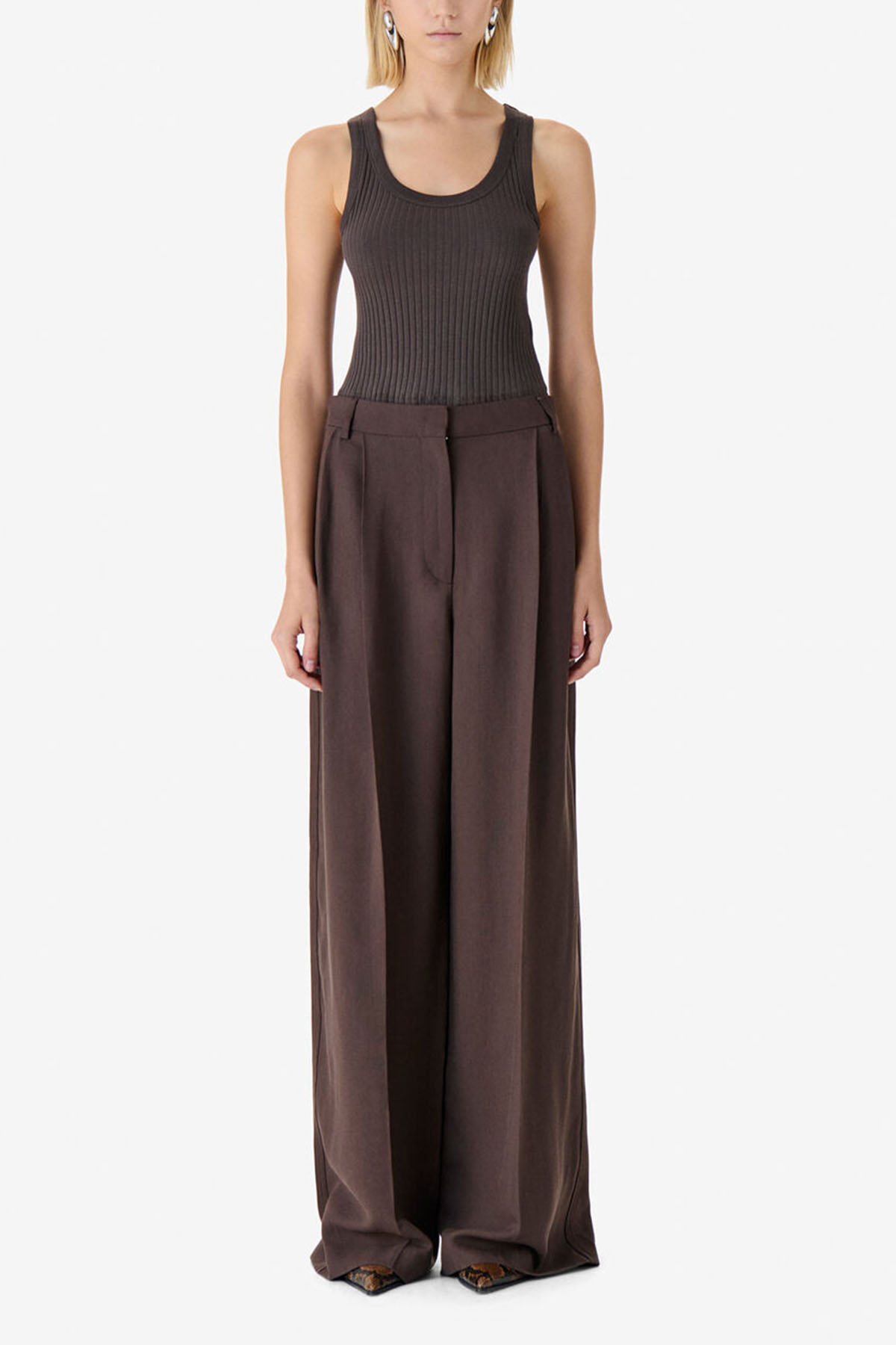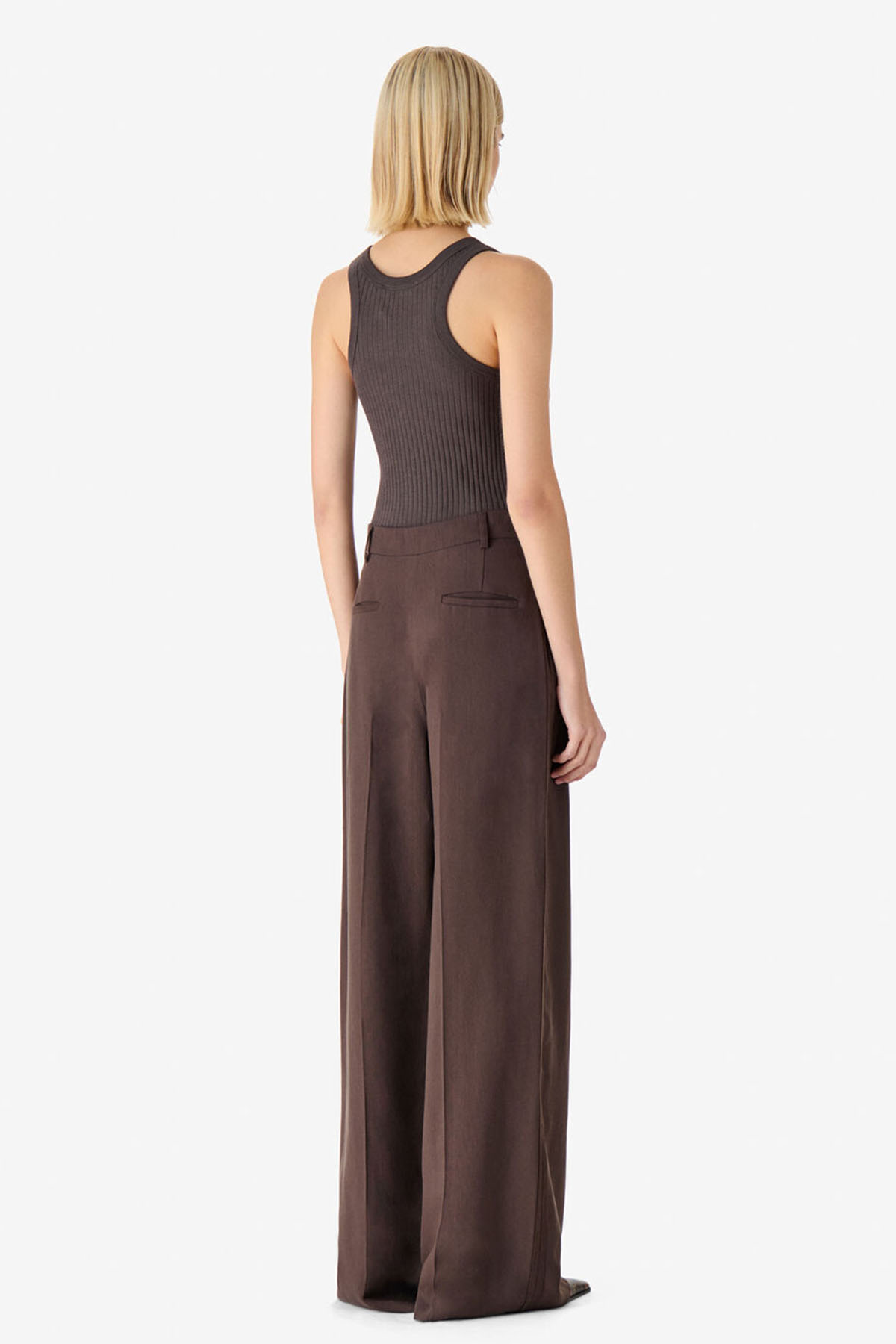 Ribbed tank top, round neck, slim fit with short waist.