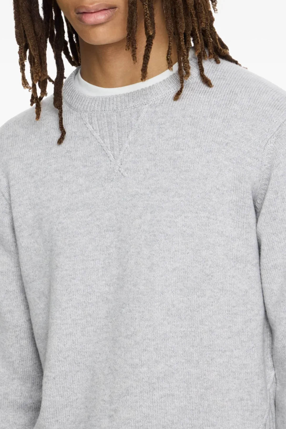 Crew neck, long sleeves, ribbed hem and cuffs.