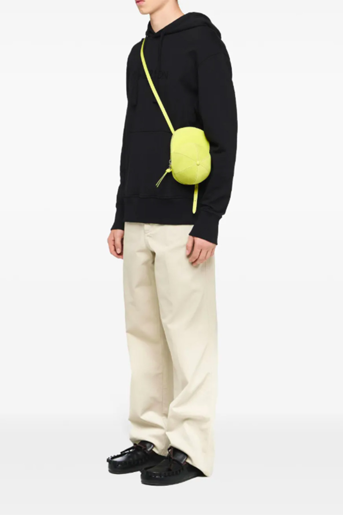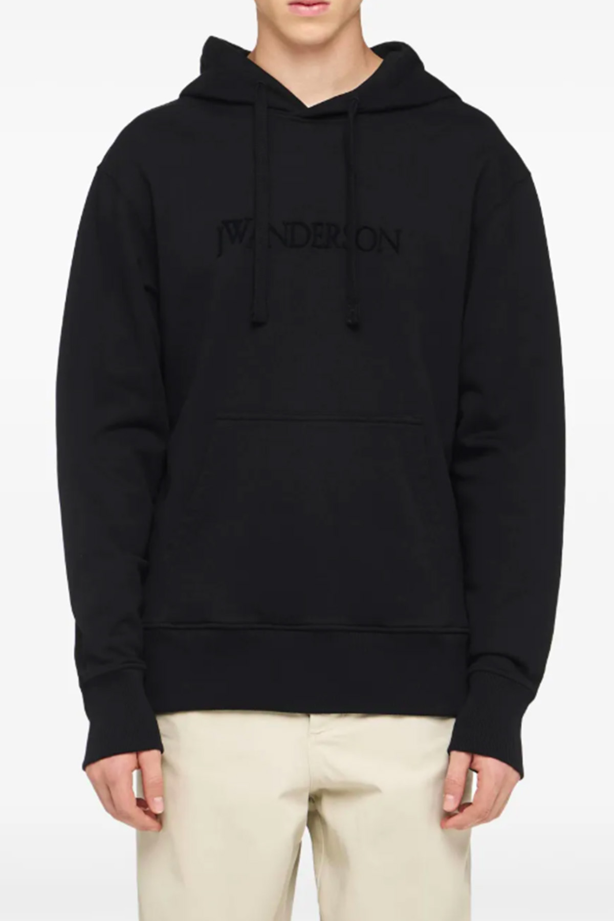 Cotton model, jersey weave, logo on the chest, hood with drawstring, sleeves with dropped shoulders, long sleeves, front kangaroo pocket, ribbed hem and cuffs.