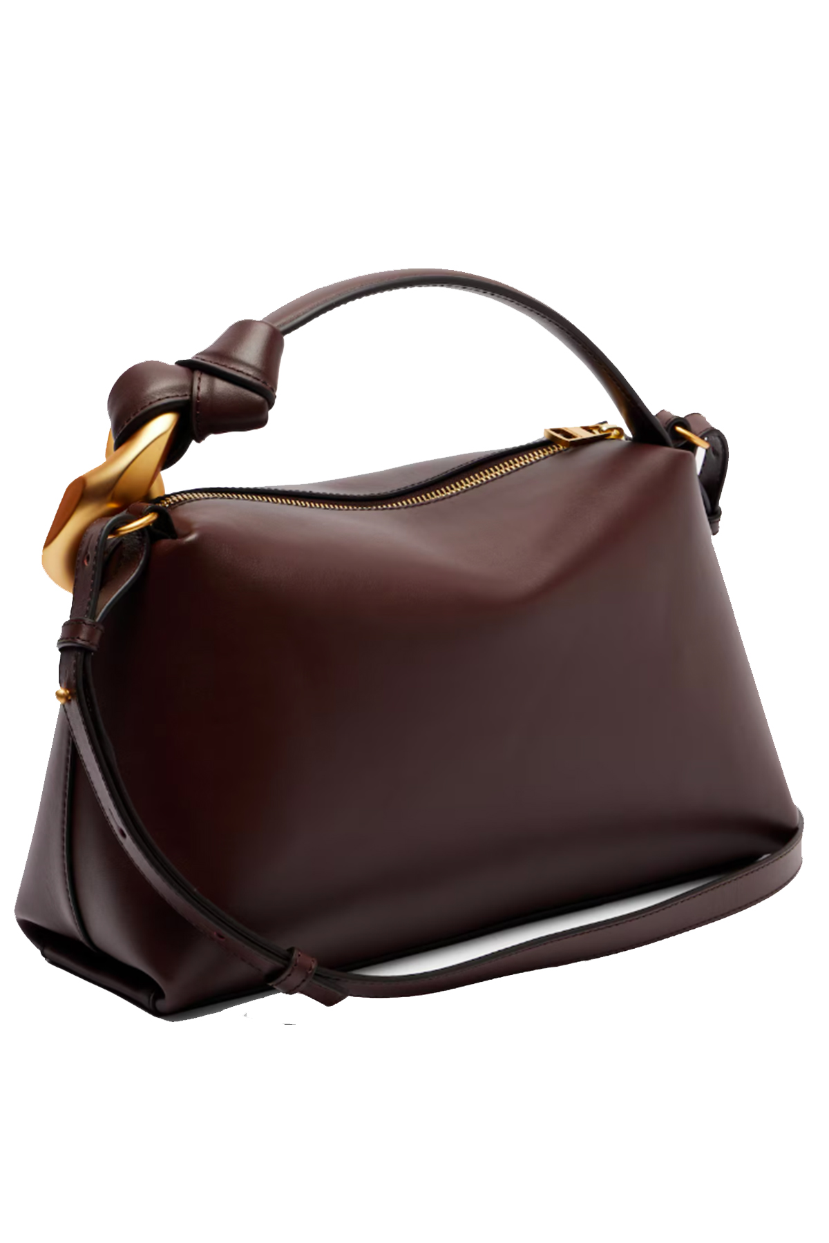 Smooth-grain calfskin, engraved front logo, gold-tone chain detail, top zip closure, adjustable and removable shoulder strap, top handle, single compartment, internal gusseted pocket, fully lined.