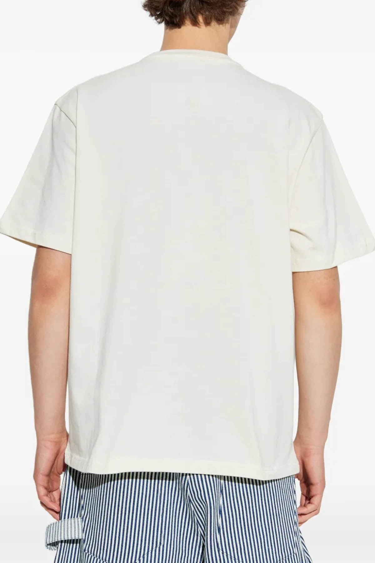 Crewneck model, short sleeve, front logo, straight hem.