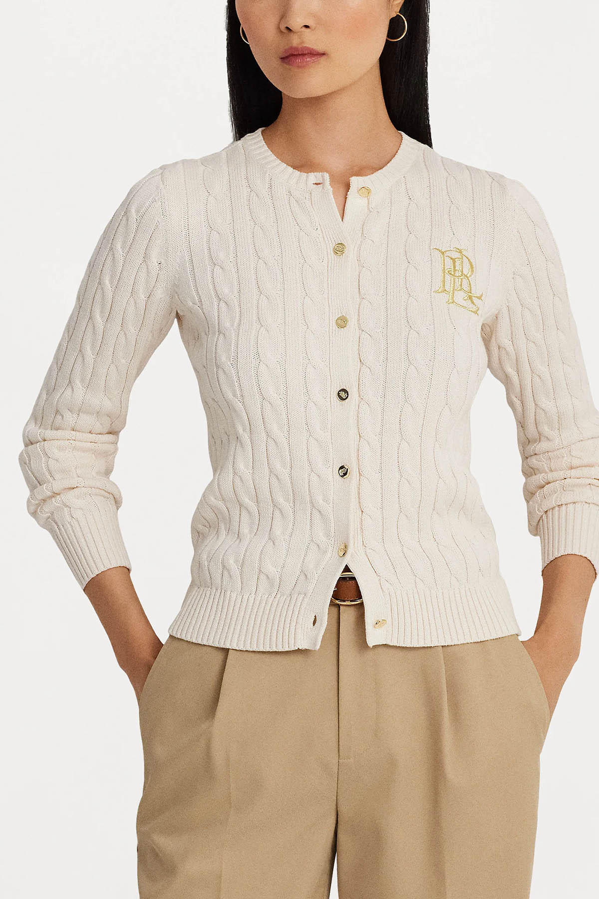 Crew neck, long sleeve, front buttoning, elasticated hem and cuffs, embroidered logo on the chest.