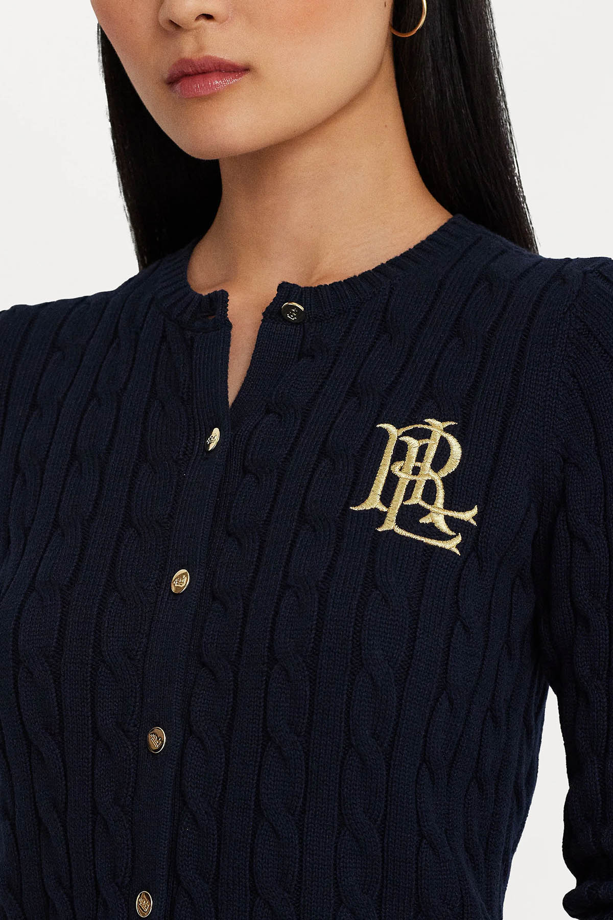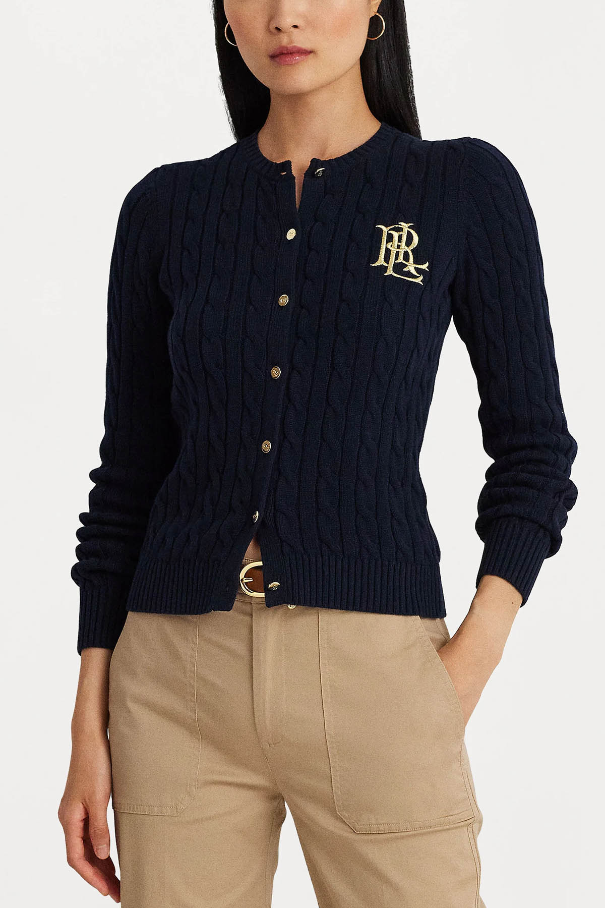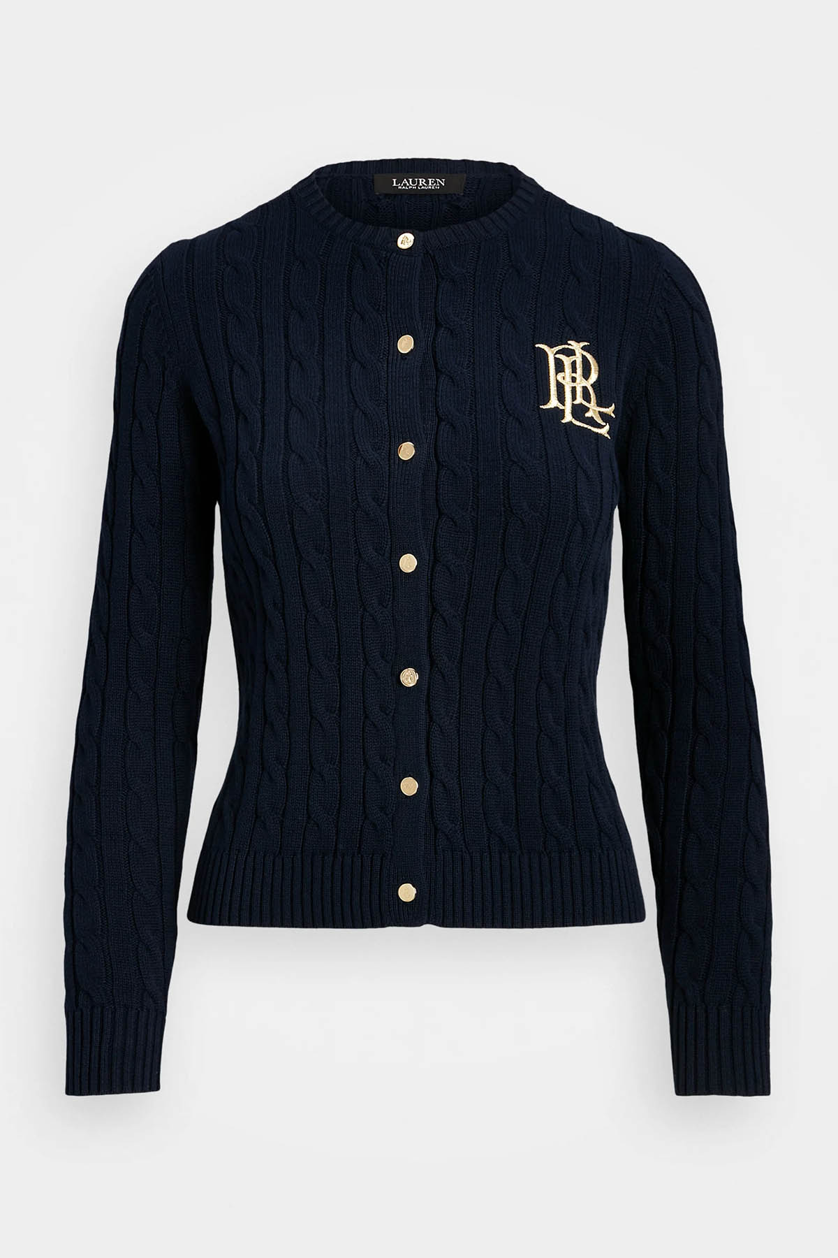 Crew neck, long sleeve, front buttoning, elasticated hem and cuffs, embroidered logo on the chest.