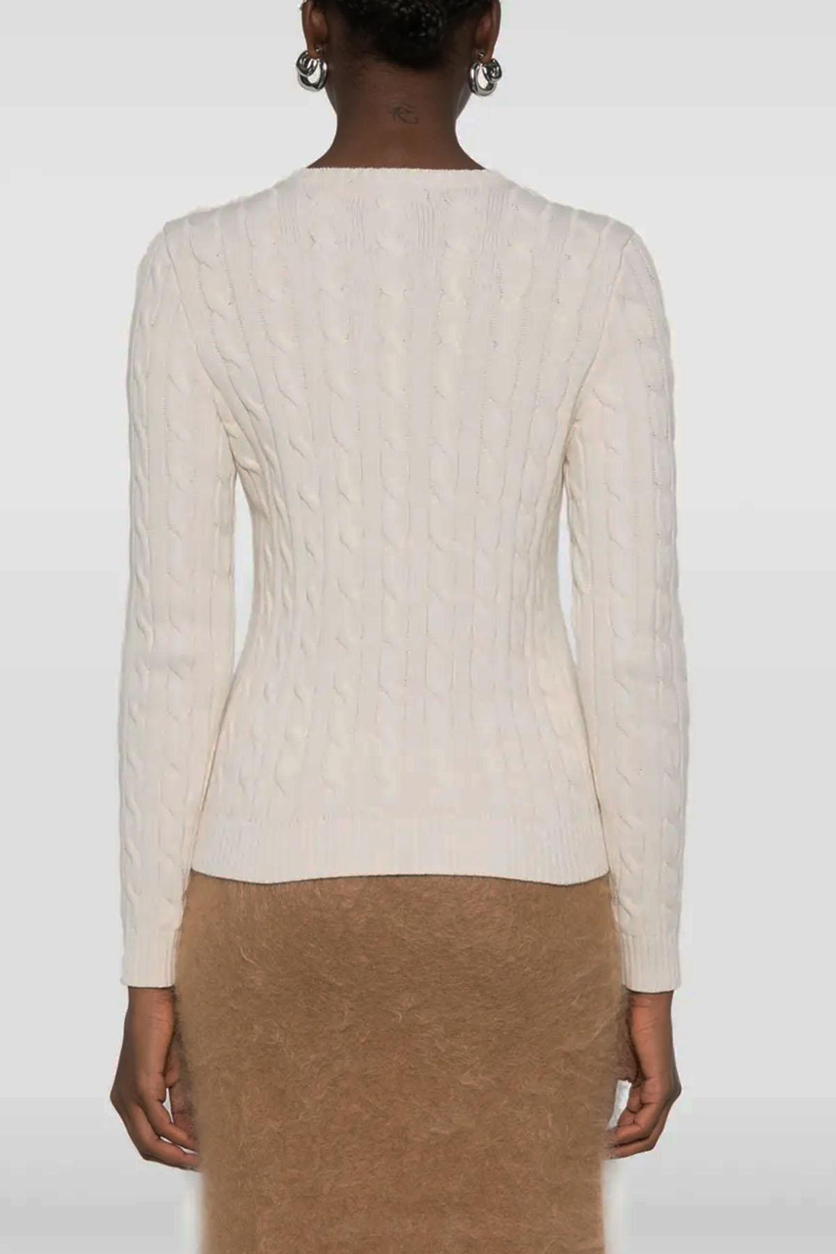 Crew neck, long sleeve, button closure on the shoulder, elasticated cuffs and hem, braided design, embroidered logo on the chest.