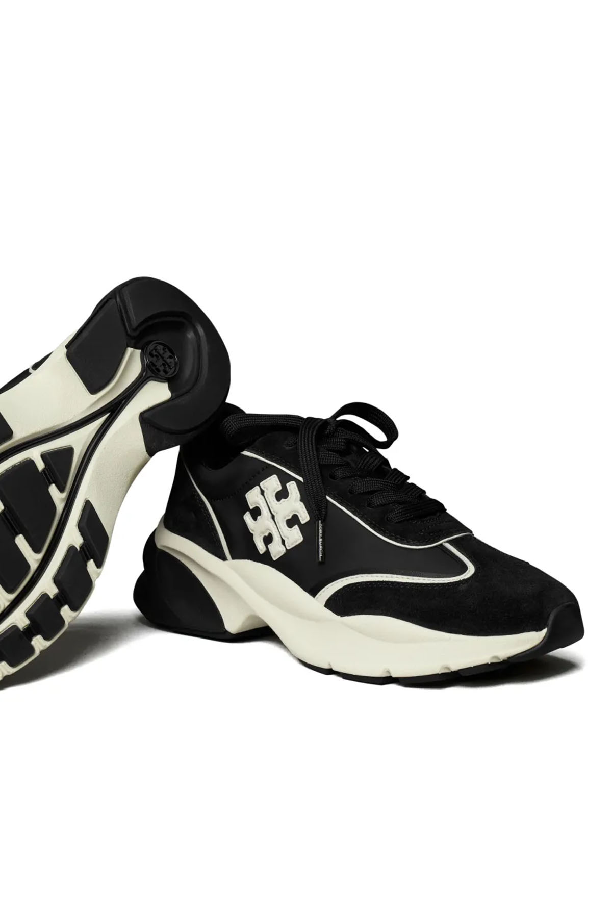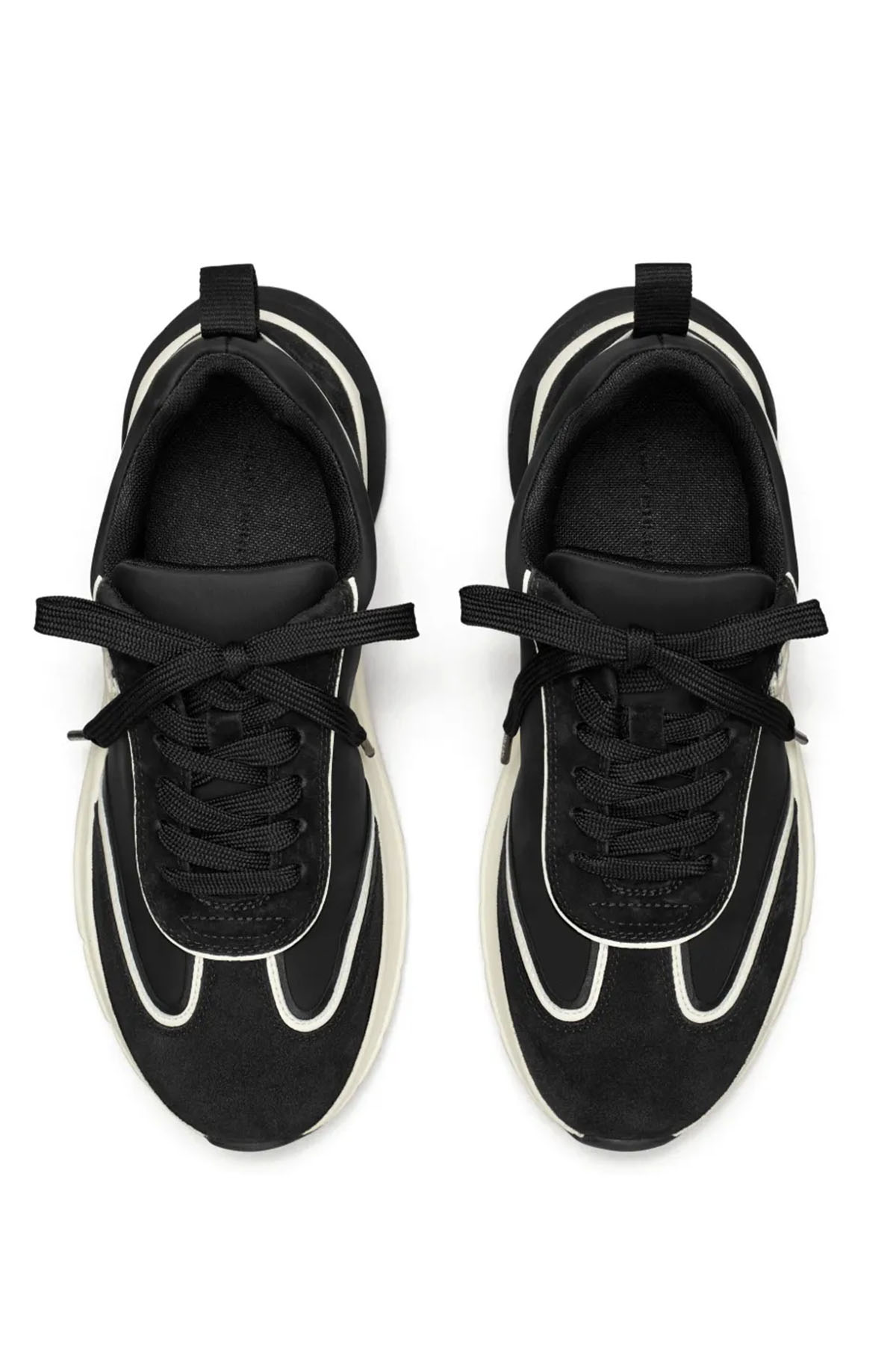 Model with nylon, nappa, and suede upper, mesh footbed and lining, CMEVA, TPU, rubber sole, lace-up closure; double laces in contrasting colors, two-tone design, distinctive Double T motif, round toe. Dust bag included.