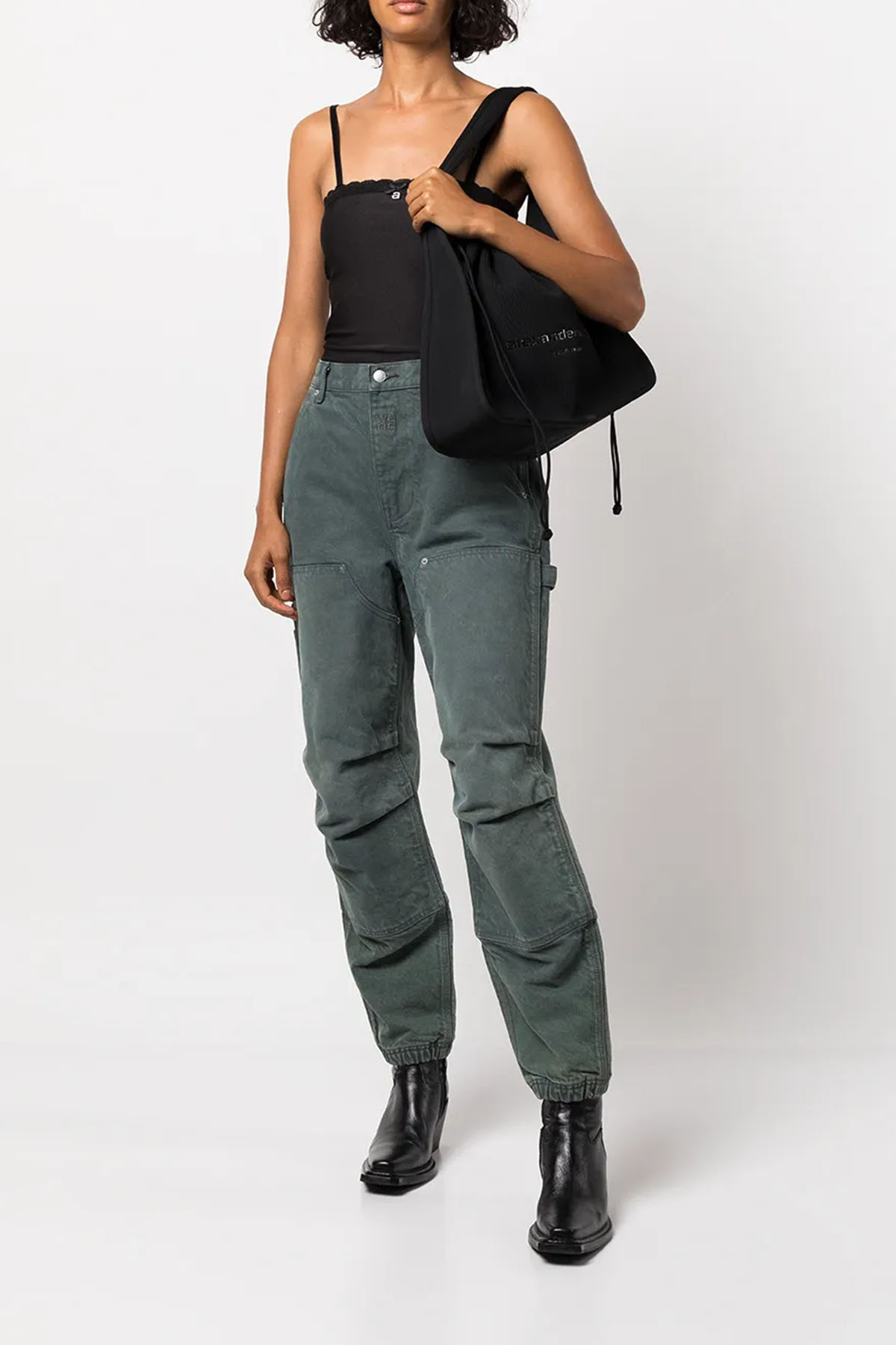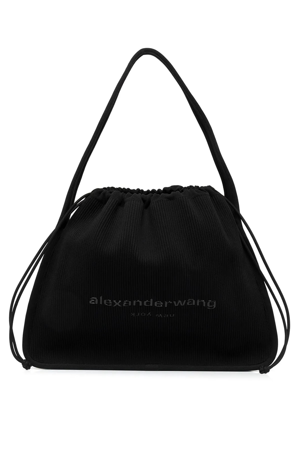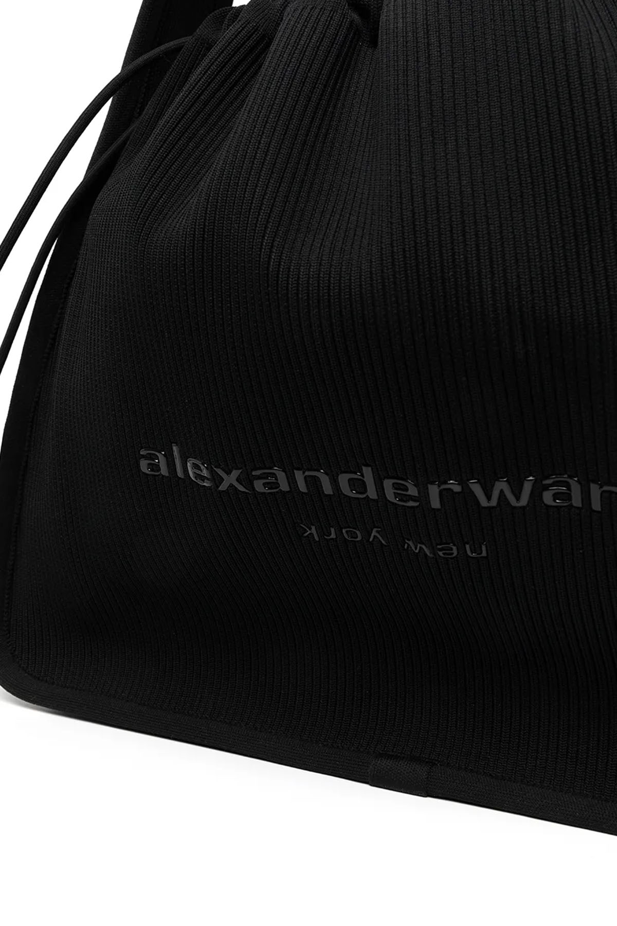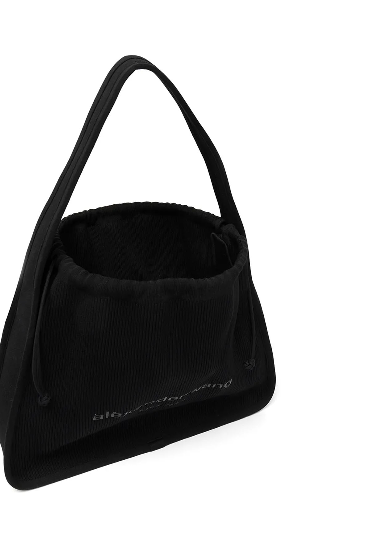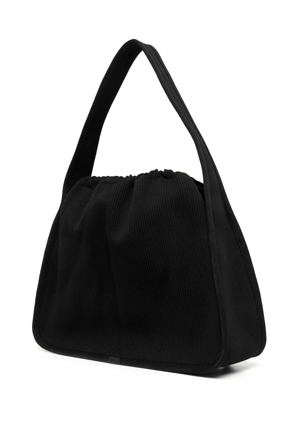 Modello nero, cotone, chiusura a coulisse, design a coste e placca con logo.
