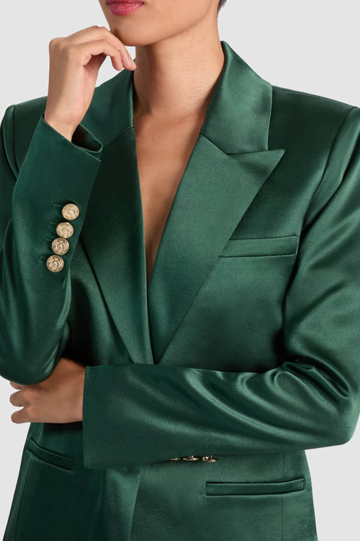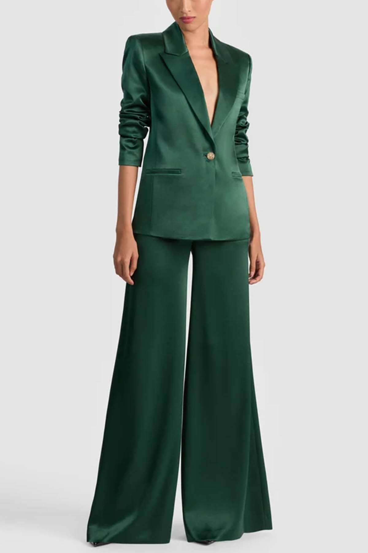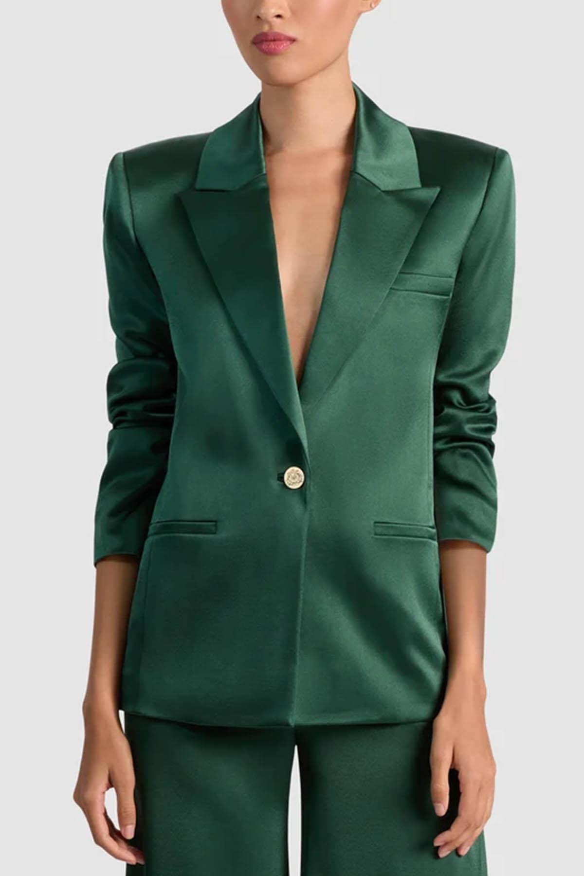 Modello monopetto, collo con revers, manica lunga, chiusura frontale con bottone oro, tasche a filetto.