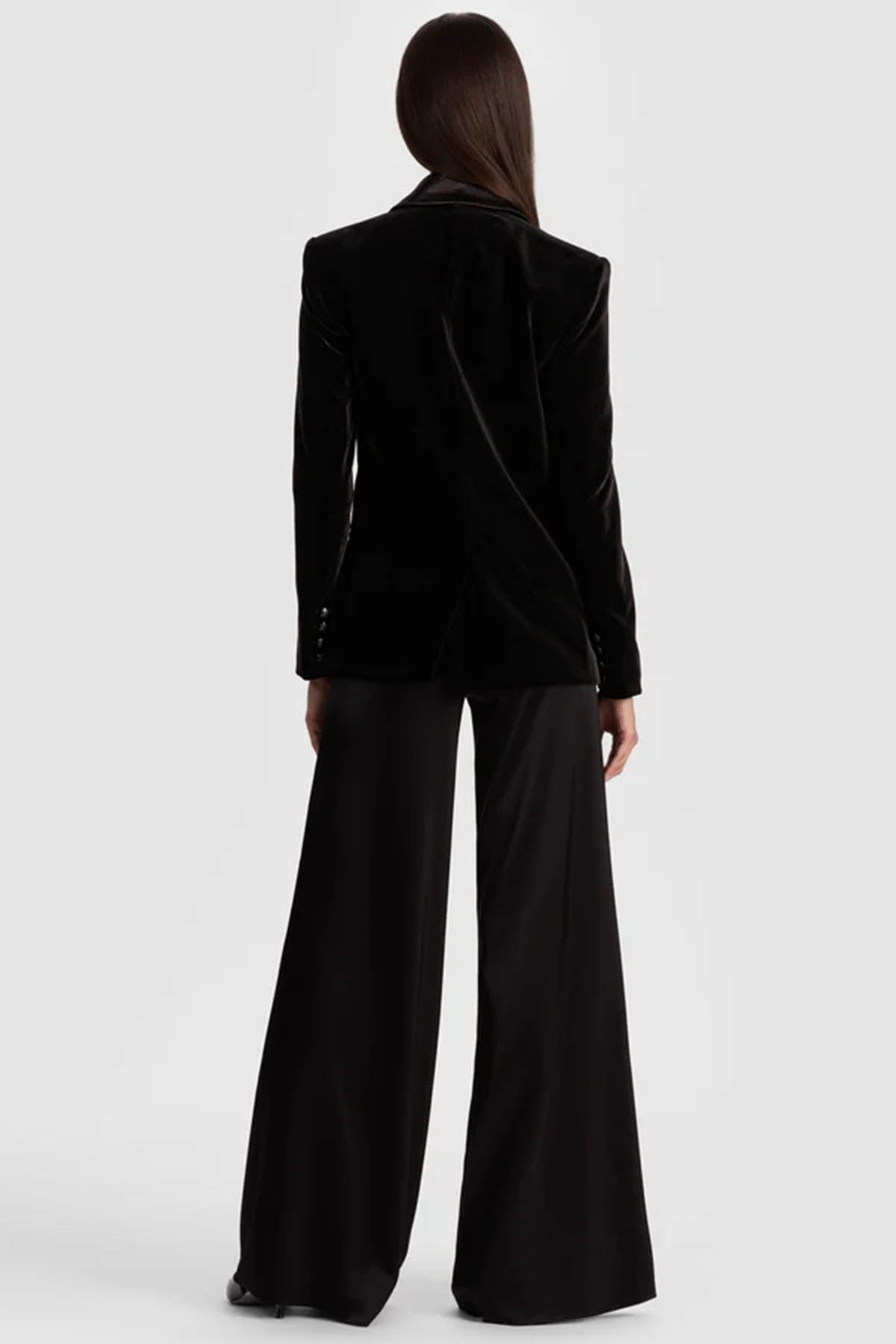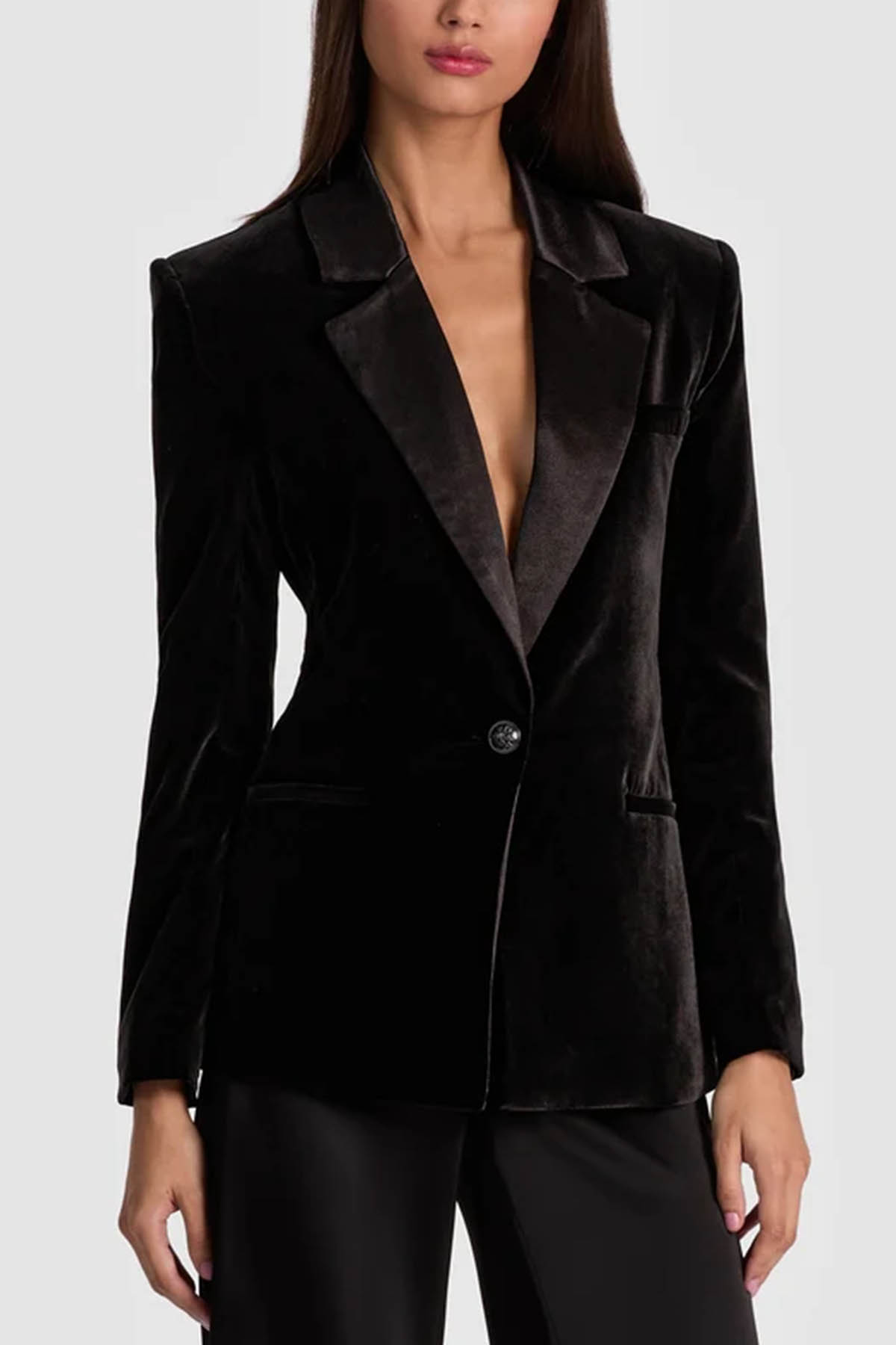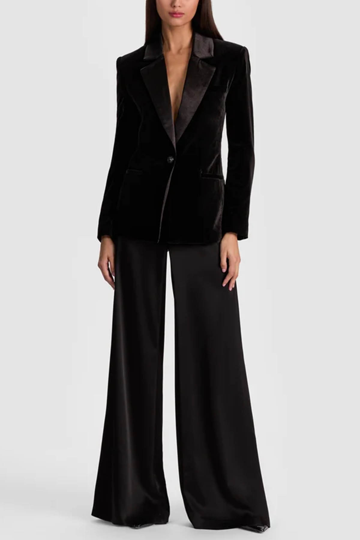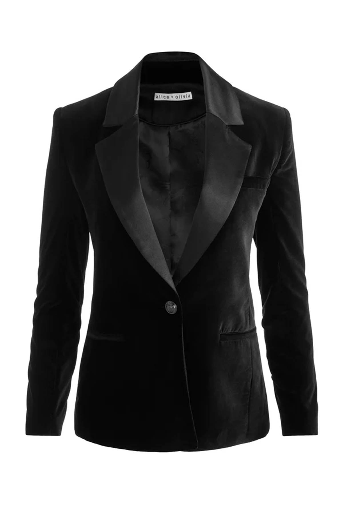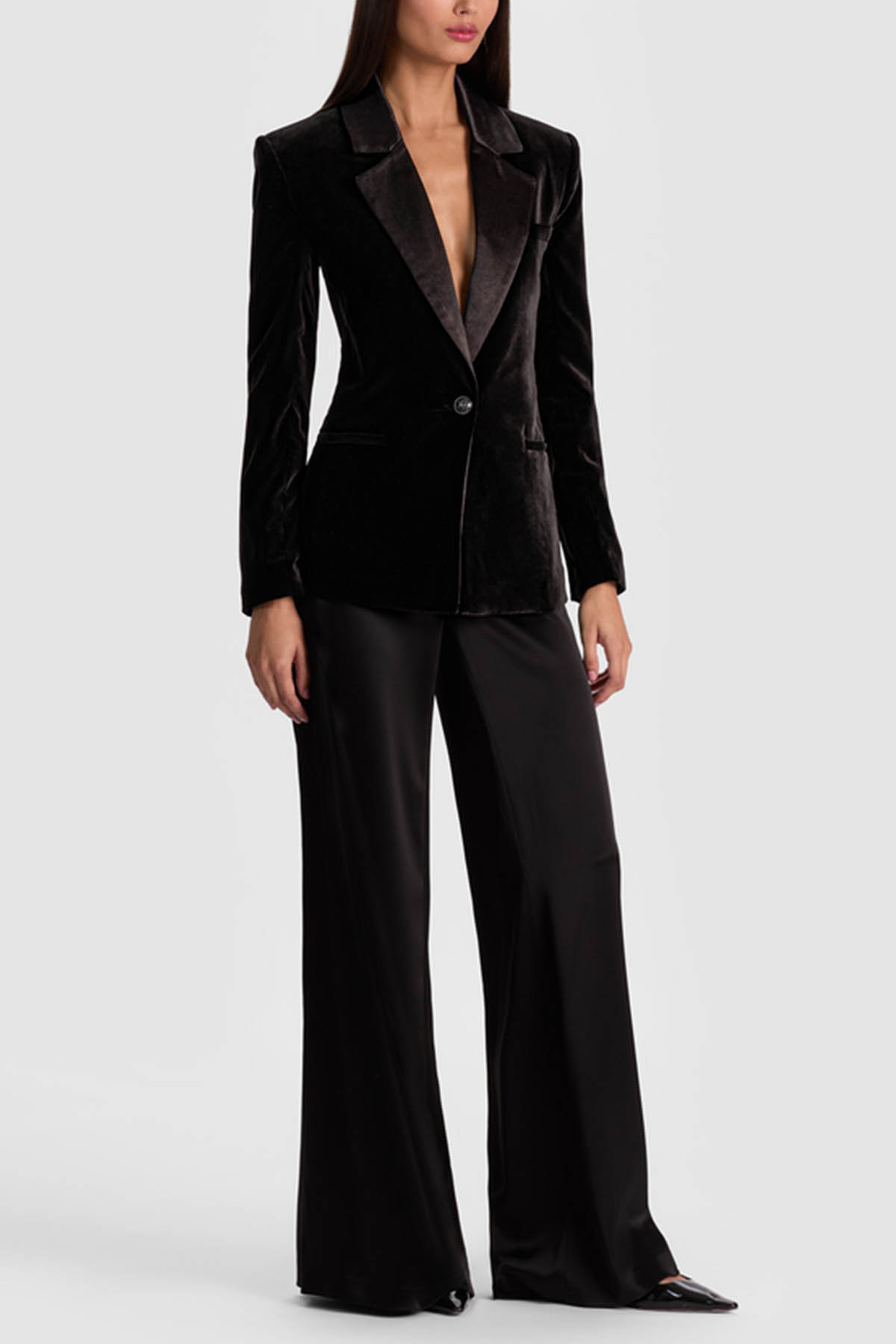 Modello monopetto, revers classici in raso, manica lunga, chiusura frontale con bottone, tasche laterali a filetto.