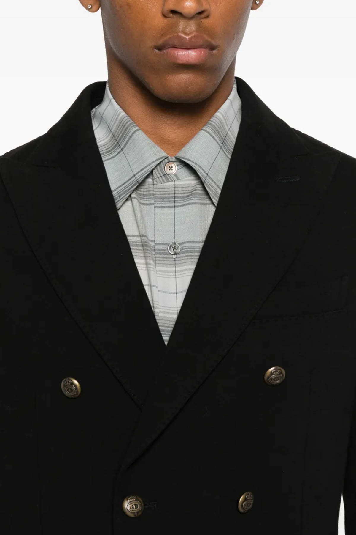 Modello doppiopetto, manica lunga, tasche laterali, rever classico,soderata, bottoni in metallo.