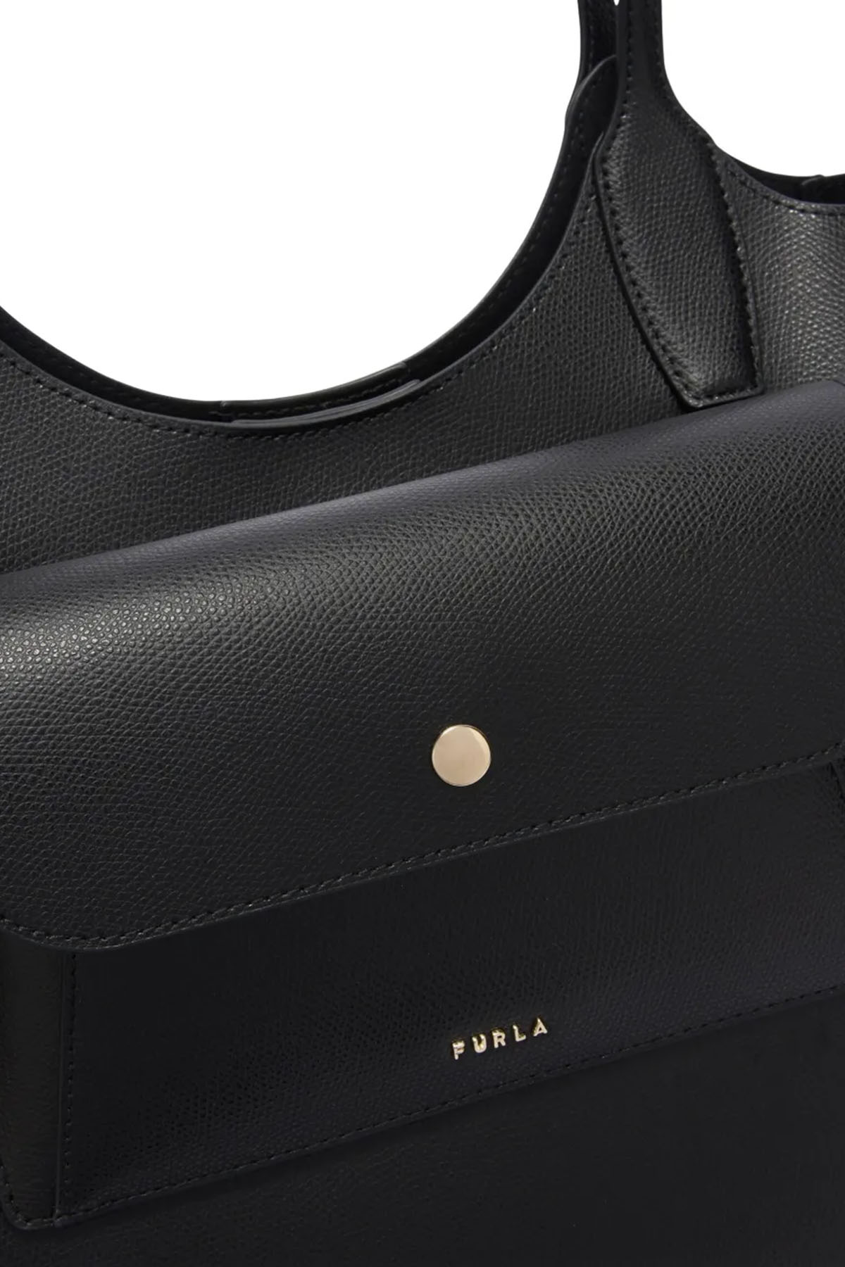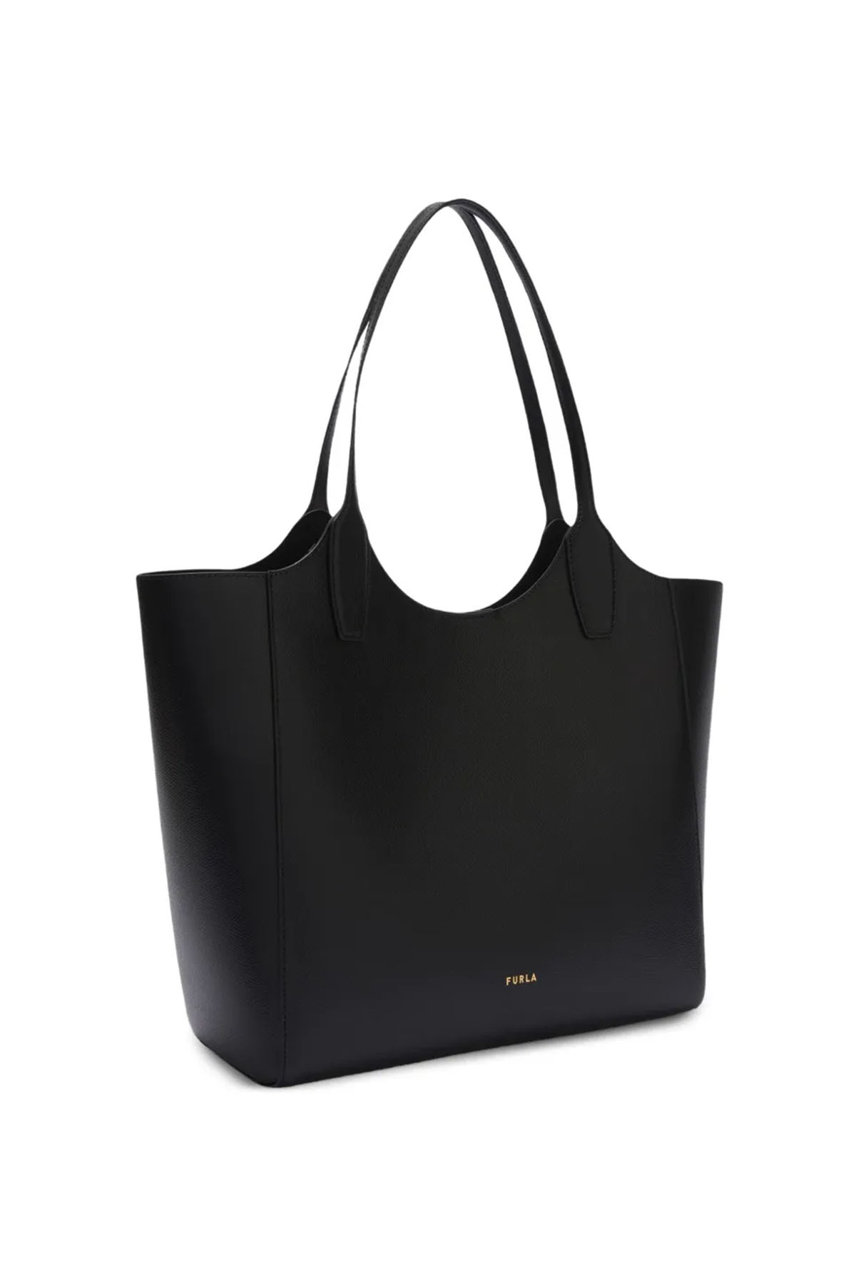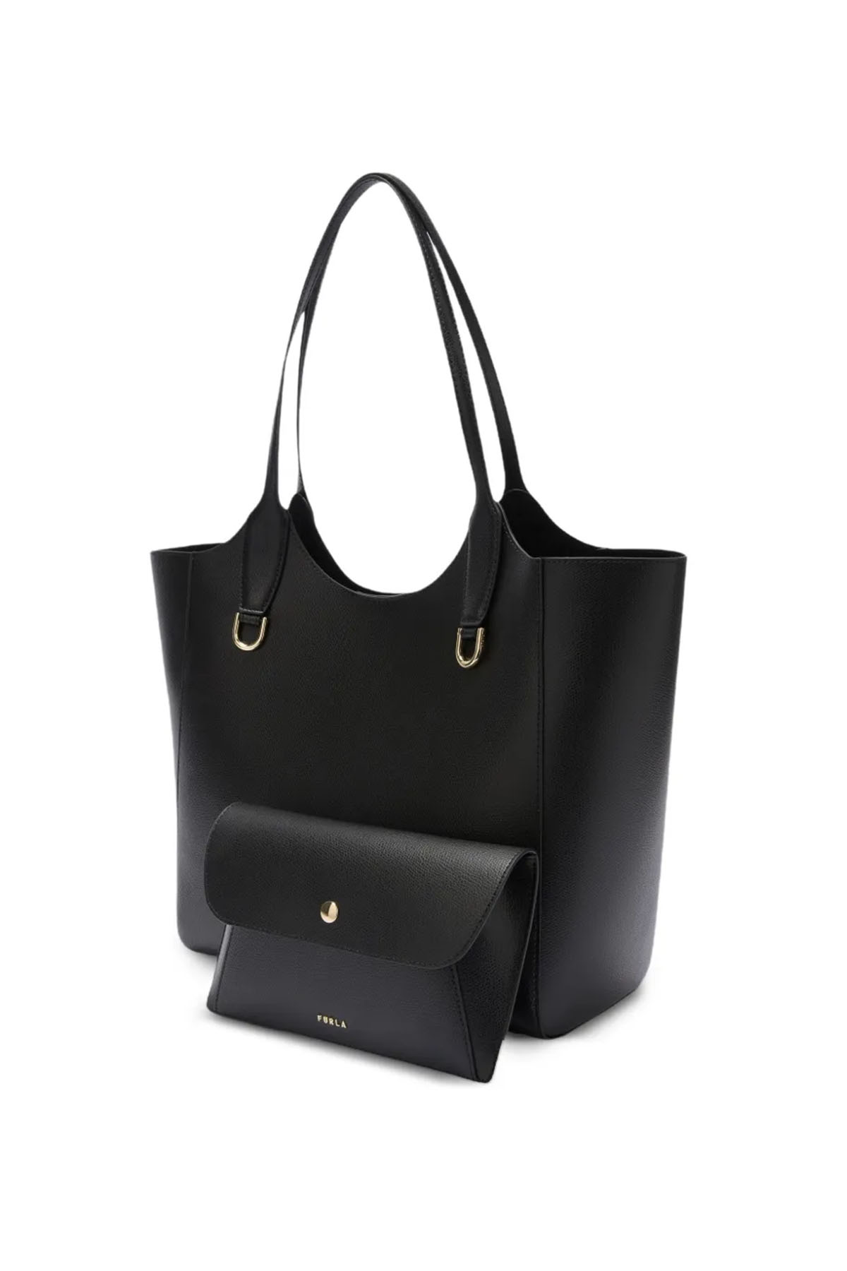 realizzata in pregiata pelle stampata, doppi manici è ideale sia all'indosso a mano che a spalla, pratica pouch esterna rimovibile da poter indossare a tracolla o a mano, Anello a D per charms e chiavi, Chiusura con bottone a pressione, Logo Furla punzonato.