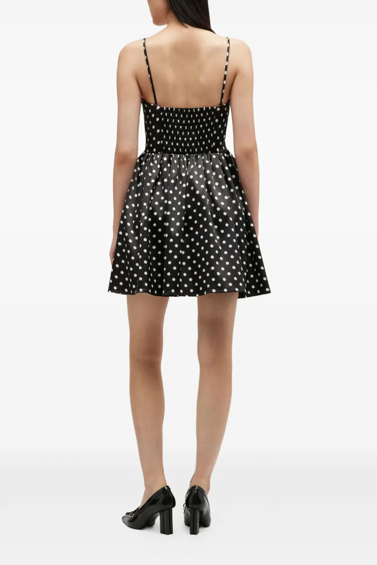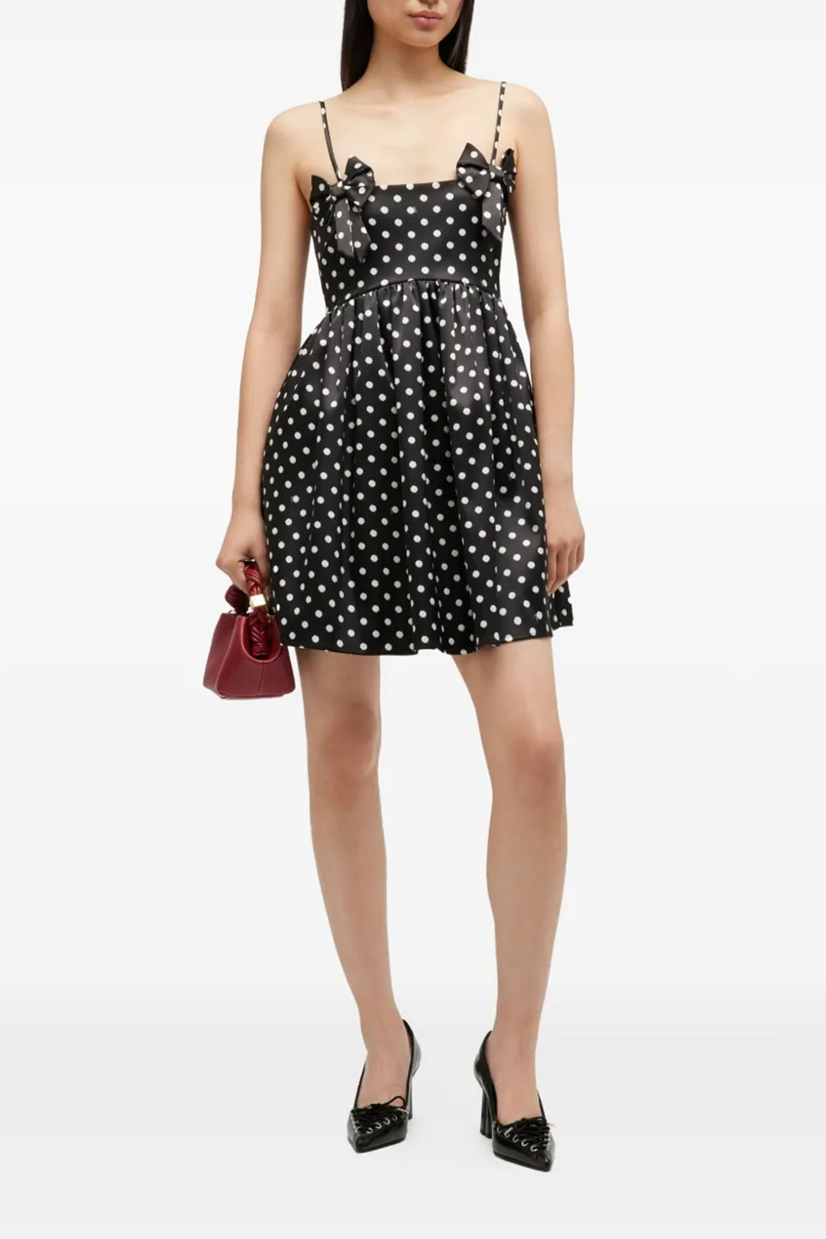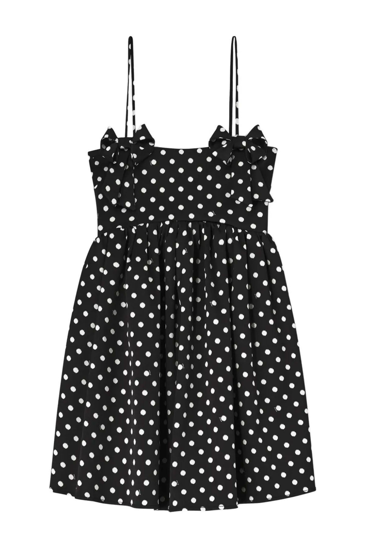 abito con motivo a pois, nero/bianco, dettaglio con fiocco, spalline sottili e regolabili, inserto elasticizzato sul retro, chiusura laterale con zip nascosta, lunghezza sopra al ginocchio.