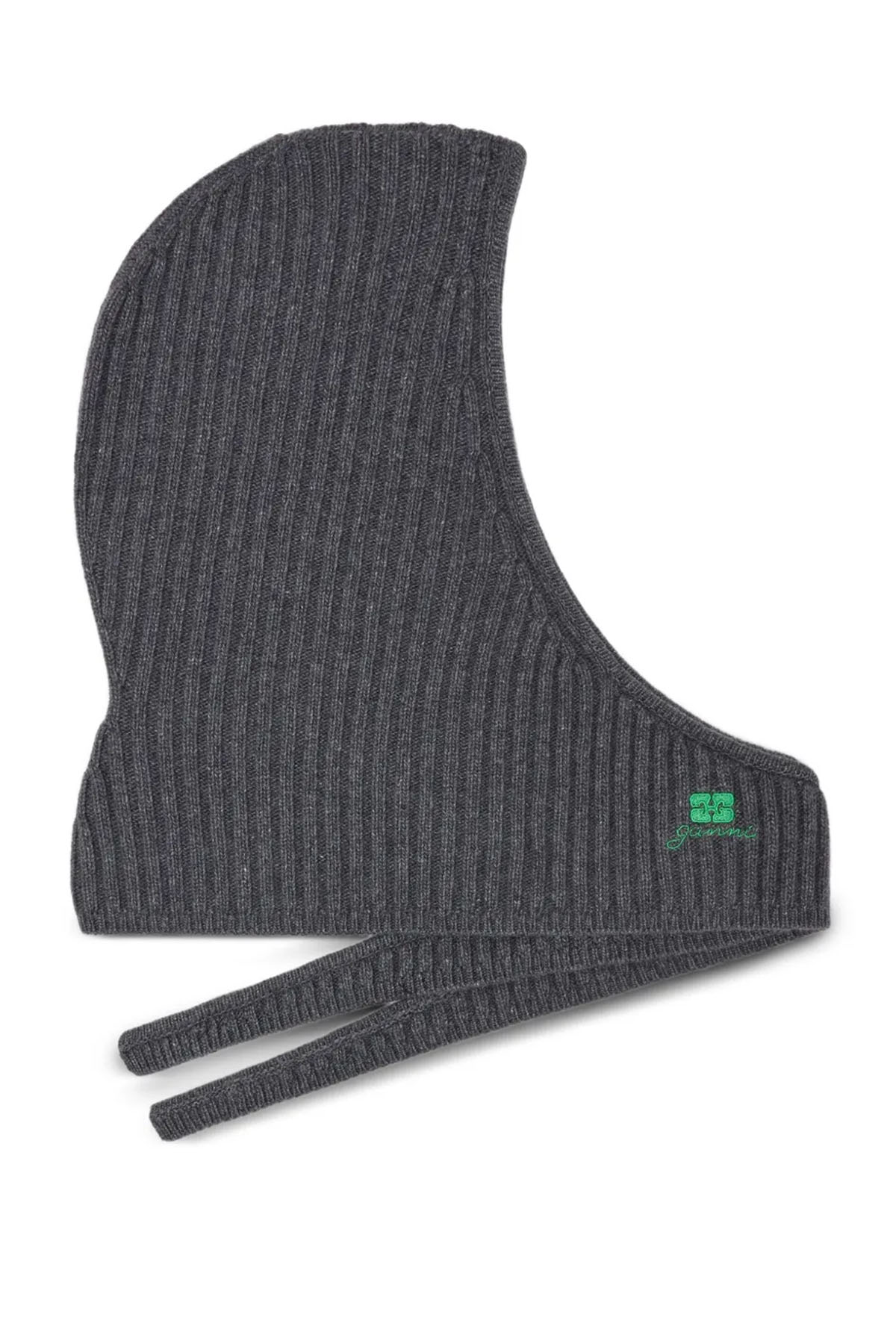 Modello con lavorazione in maglia a coste, chiusura con nodo, dettaglio logo ricamato.