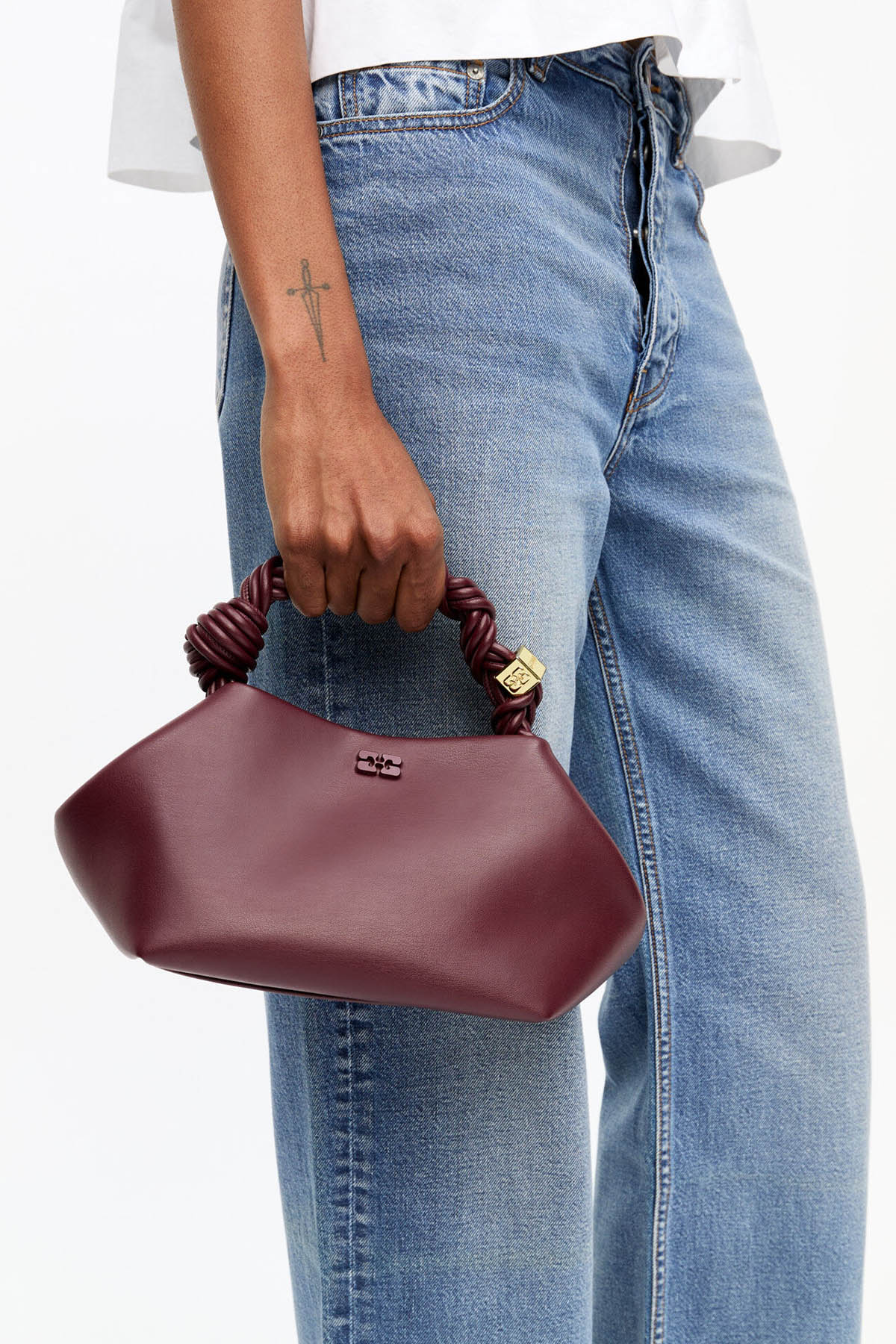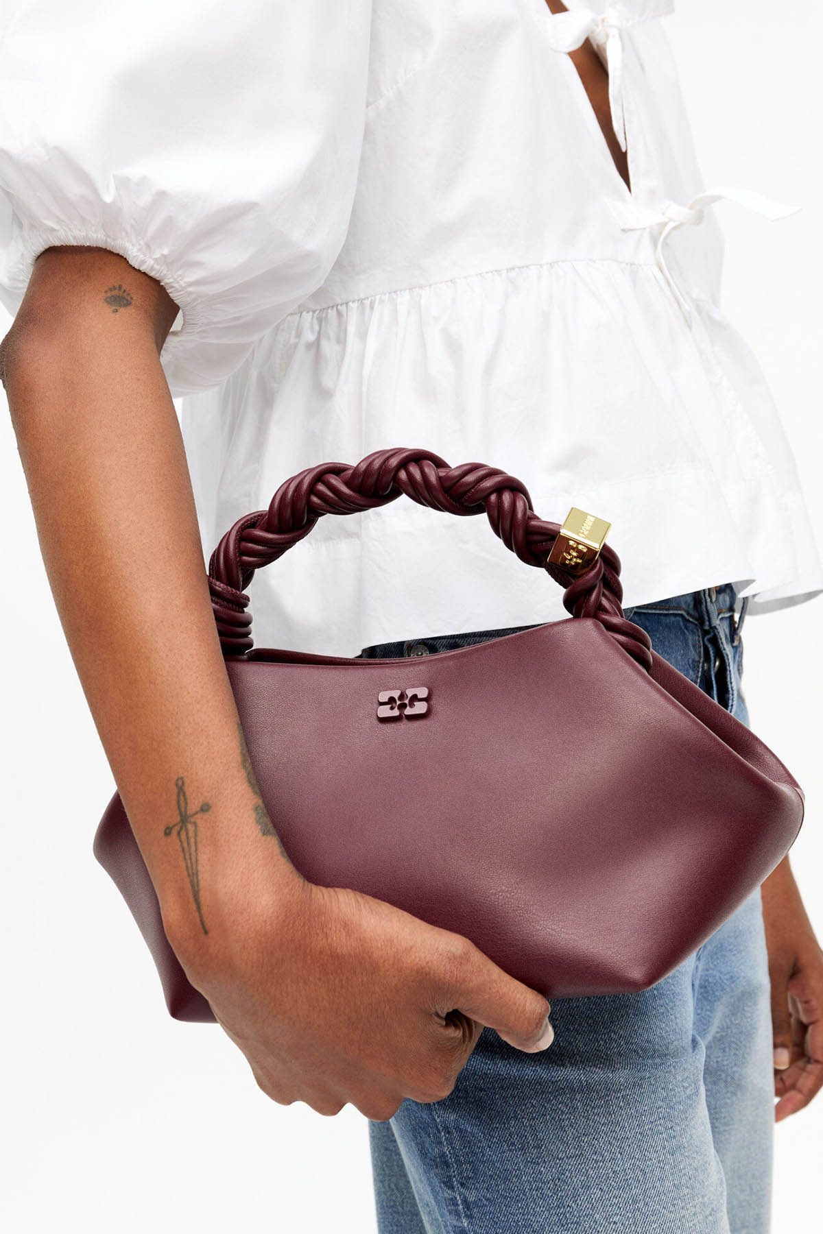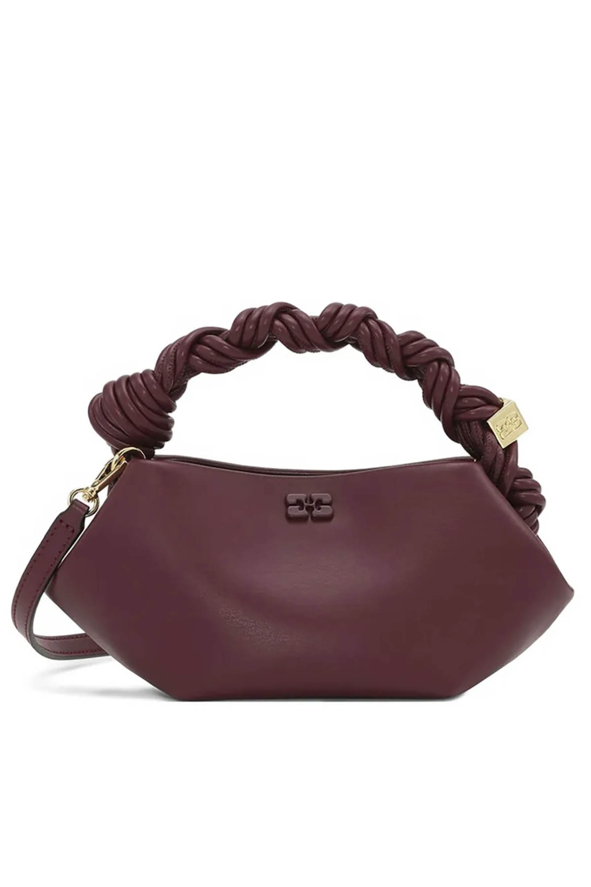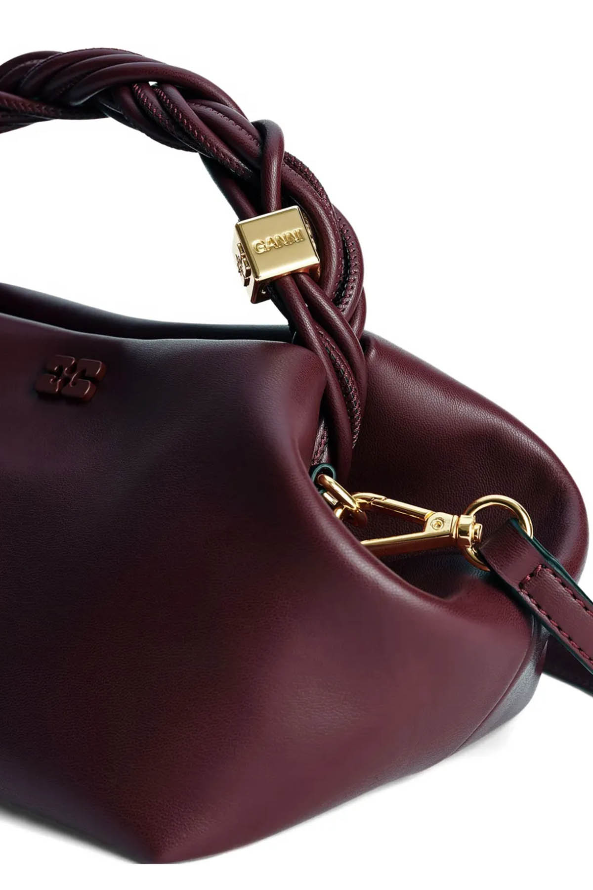 Modello pelle riciclata, dettagli color oro, placca con logo, chiusura magnetica, tracolla regolabile e rimovibile, manico intrecciato, scomparto interno, divisotasca interna a soffietto.