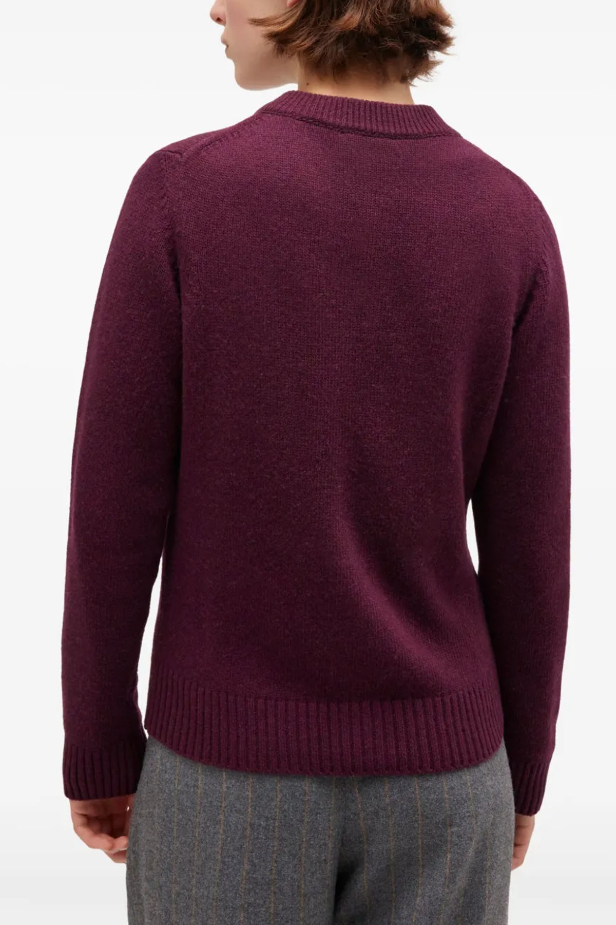 Modello girocollo, chiusura a bottoni, orlo a coste, maniche lunghe, logo ricmato sul petto.