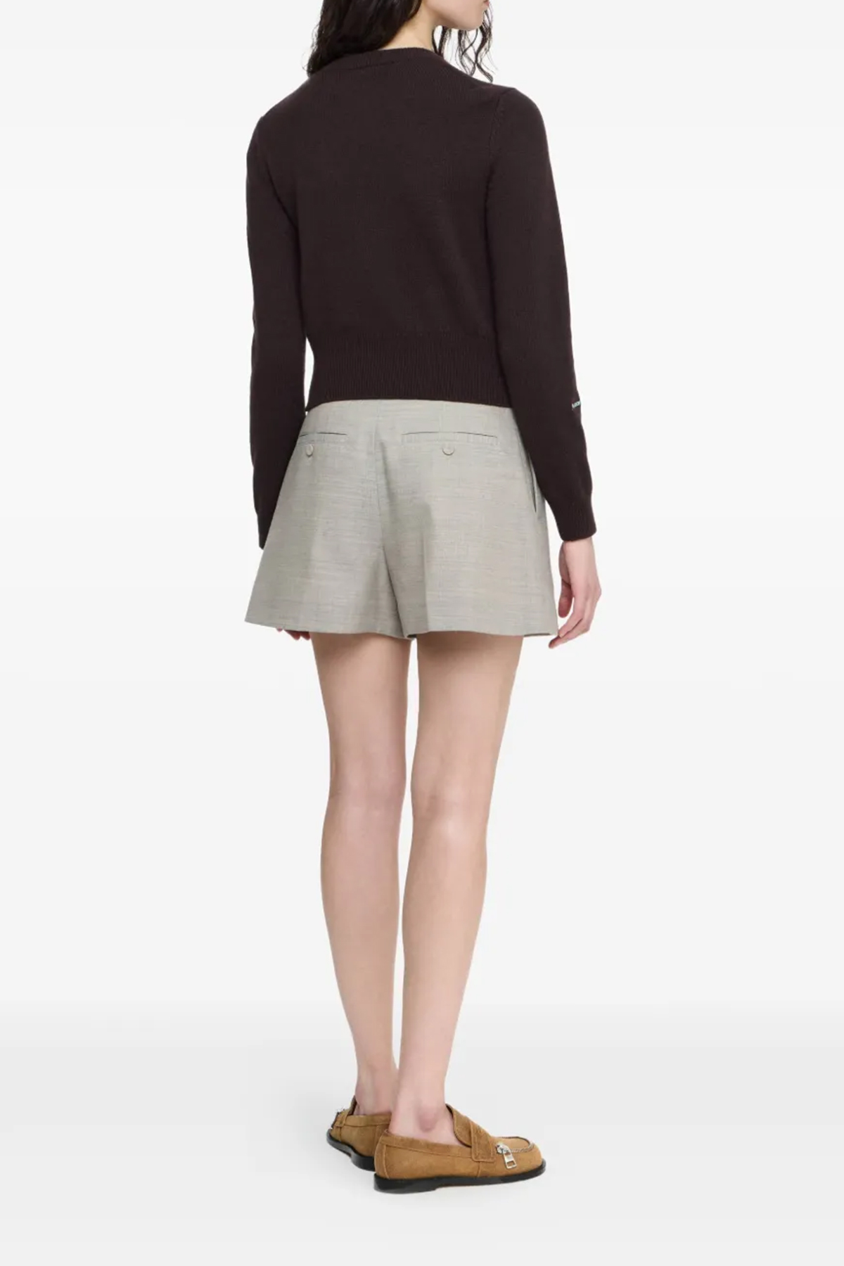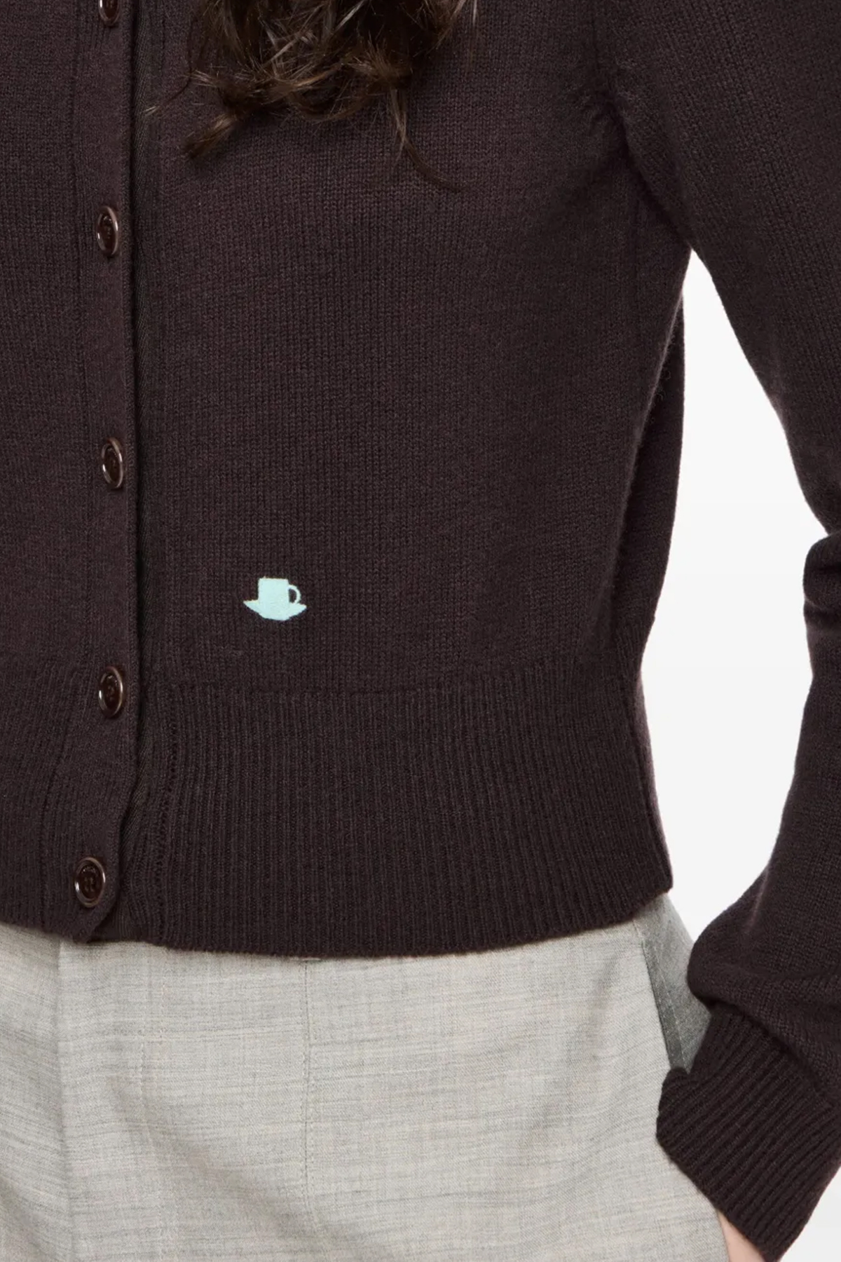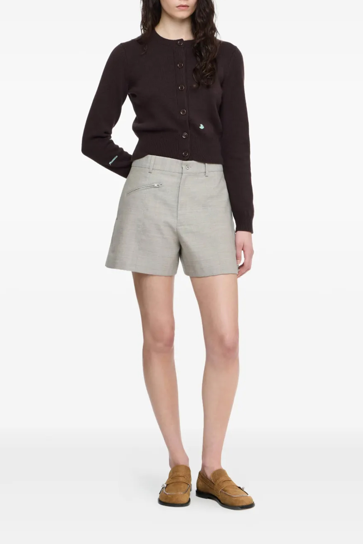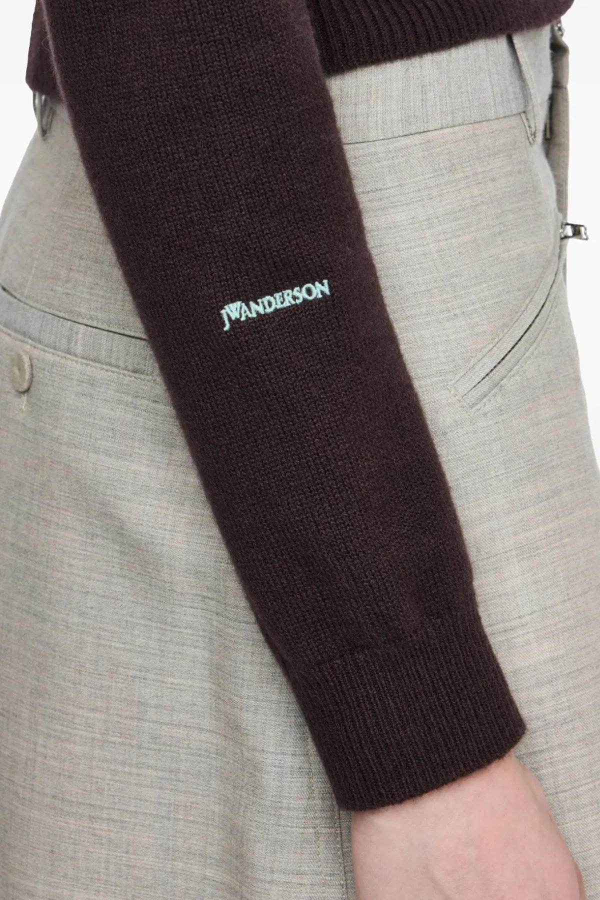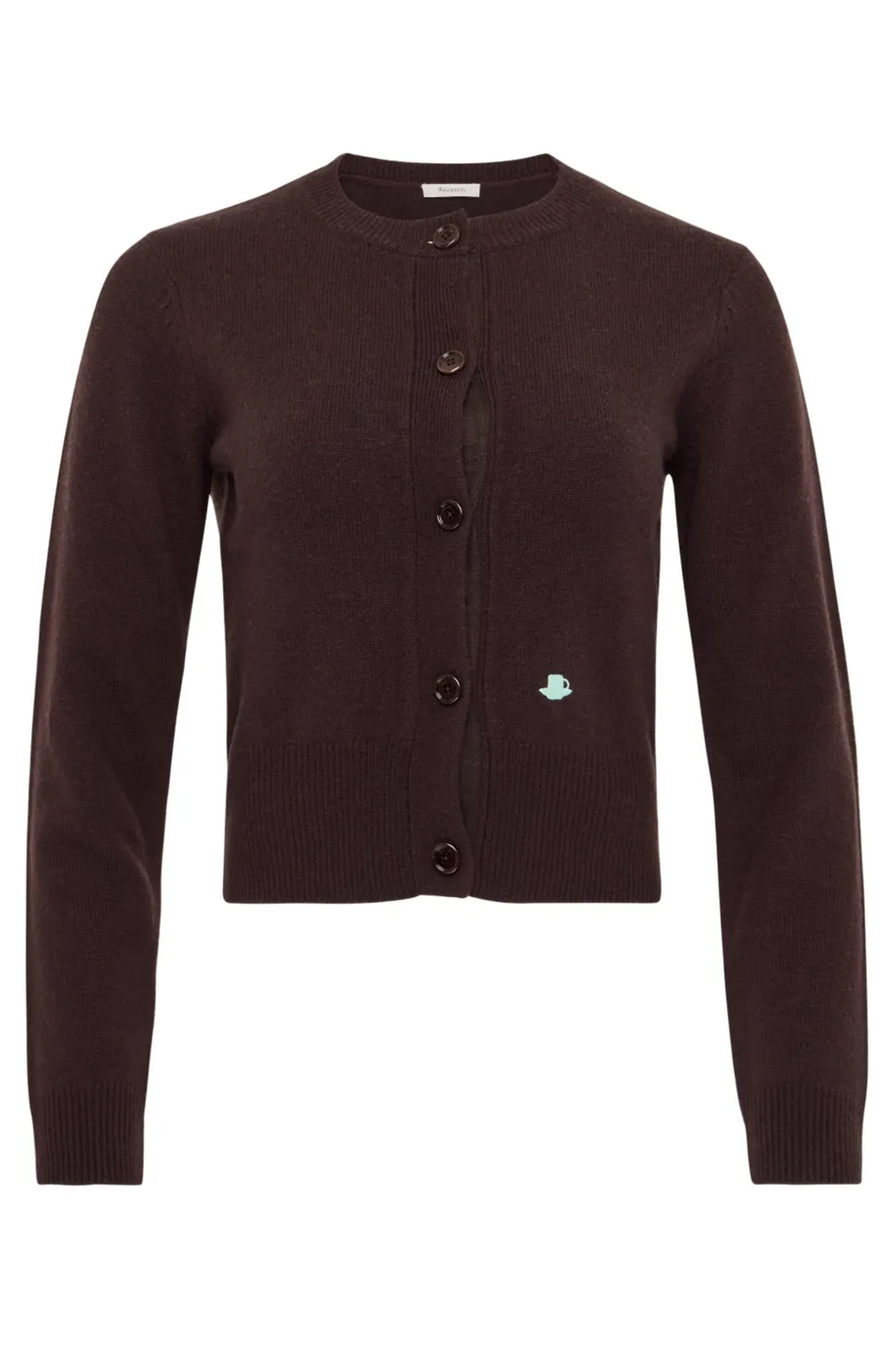 Modello girocollo, manica lunga, abbottonatura frontale, logo ricamato, orli a coste, design crop.