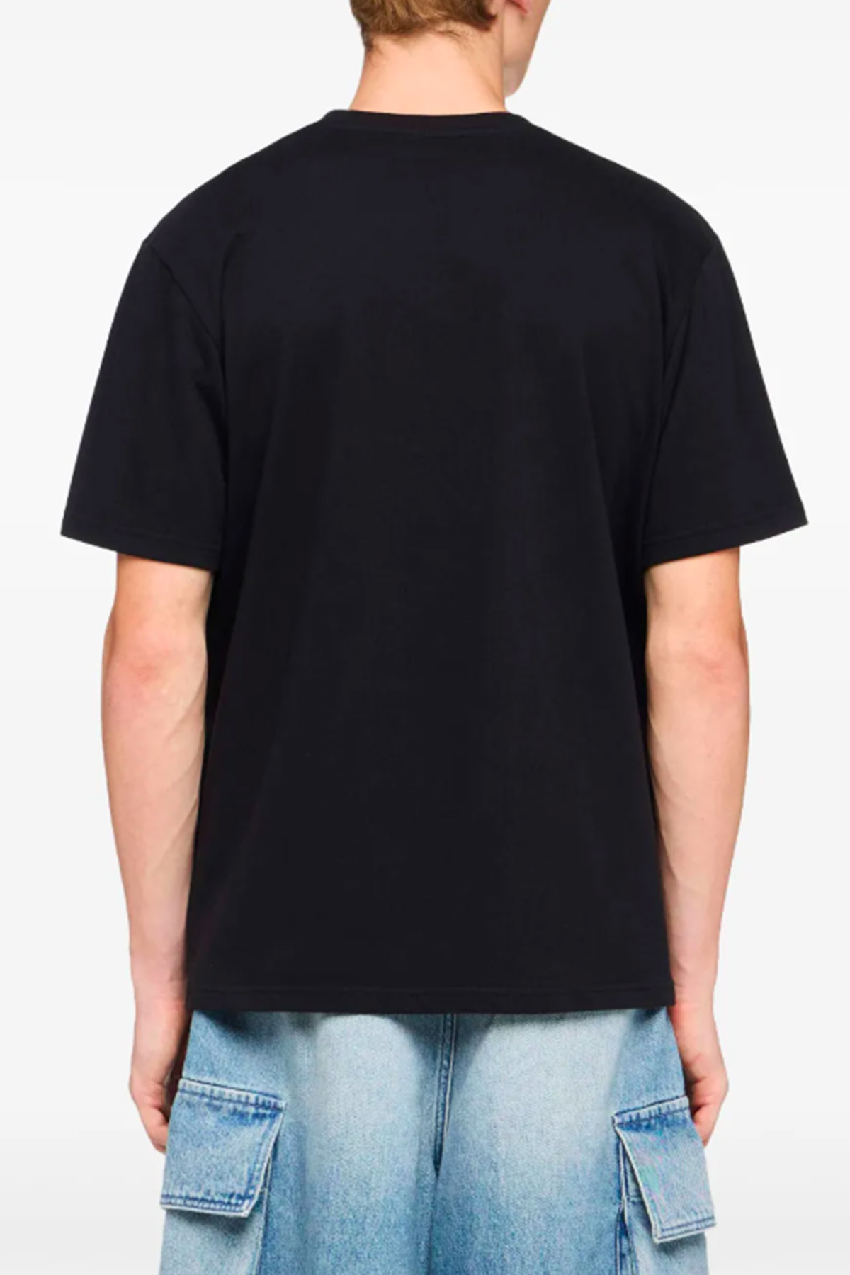 Modello girocollo, manica corta, logo frontale, orlo dritto.