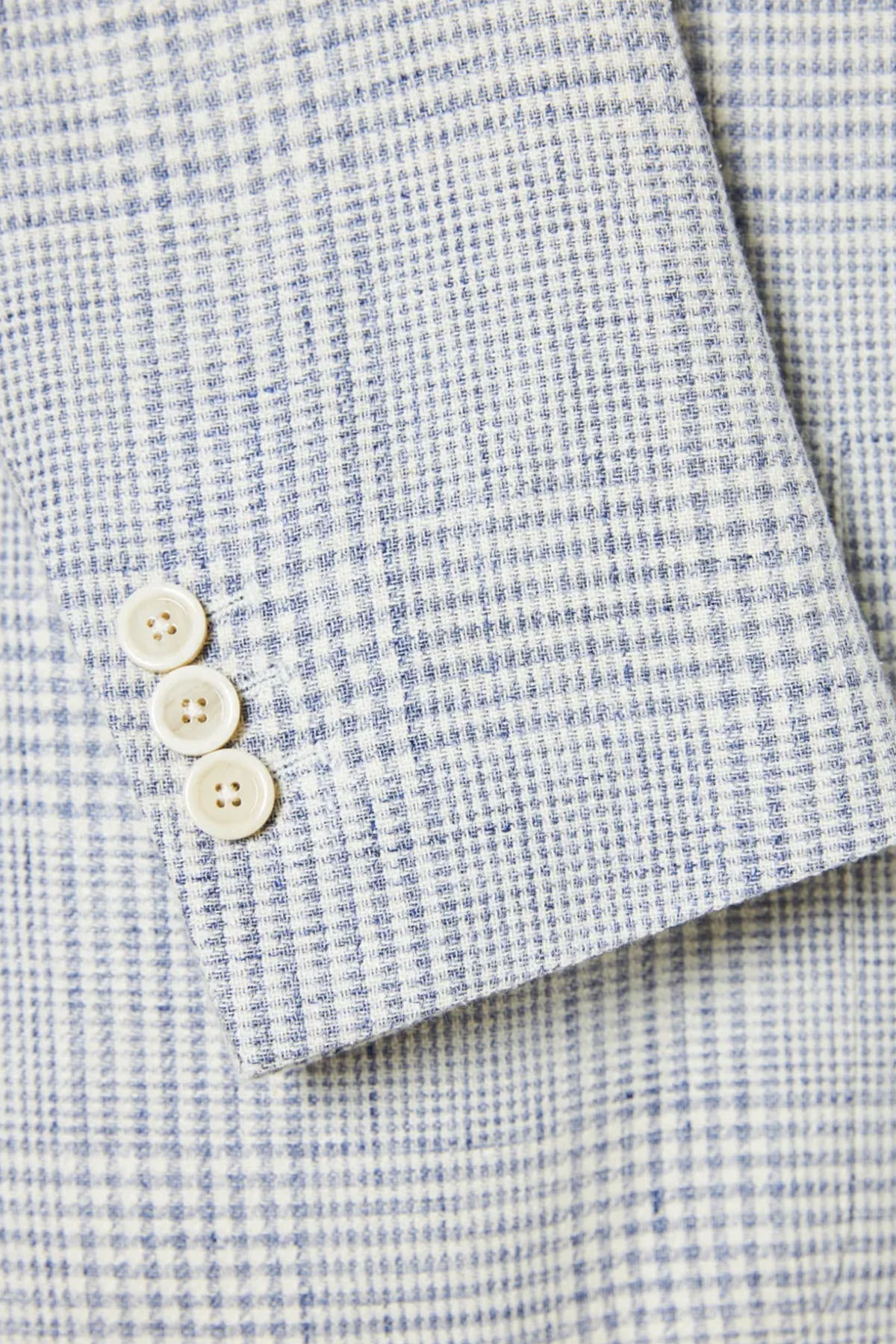 Motivo tartan, chiusura a bottoni, revers a punta, tasche frontali.