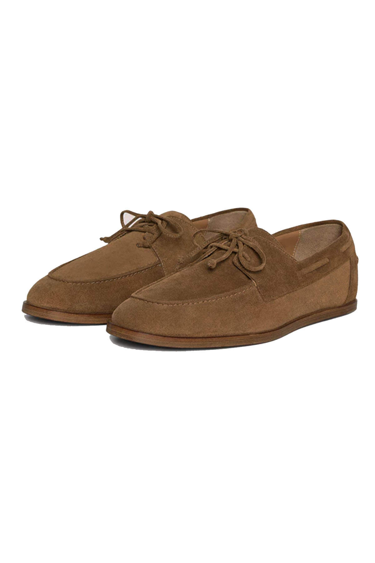 Scarpa da barca realizzata in pelle di vitello scamosciata, dal design classico ed essenziale, Suola in cuoio con inserti in microfibra per maggiore grip, tacco basso da 8 mm.