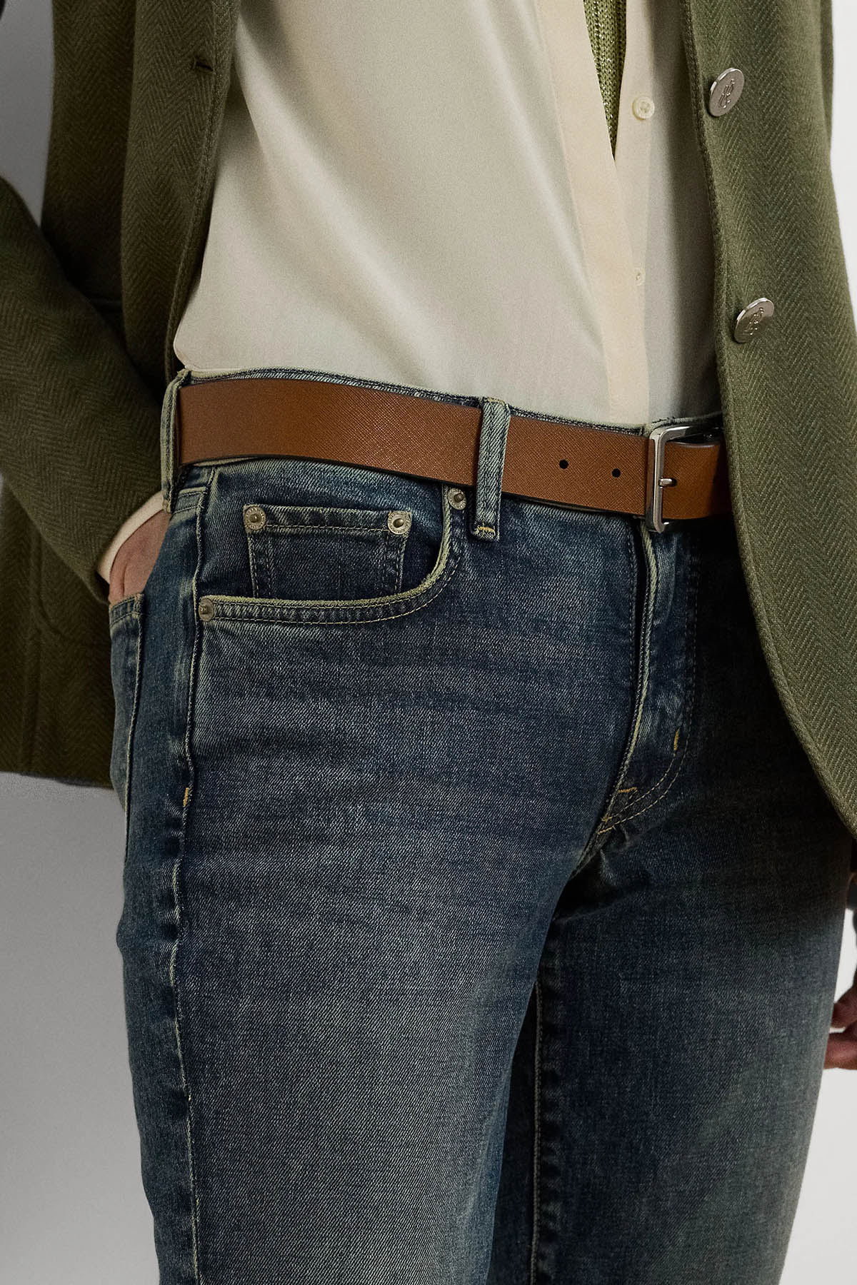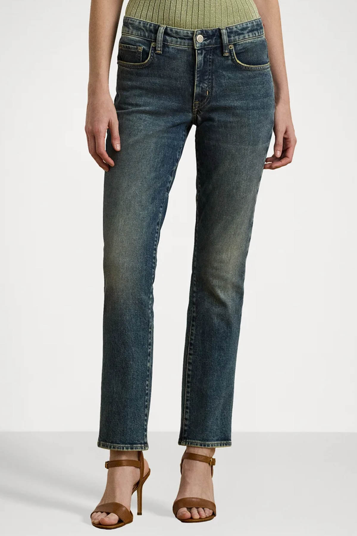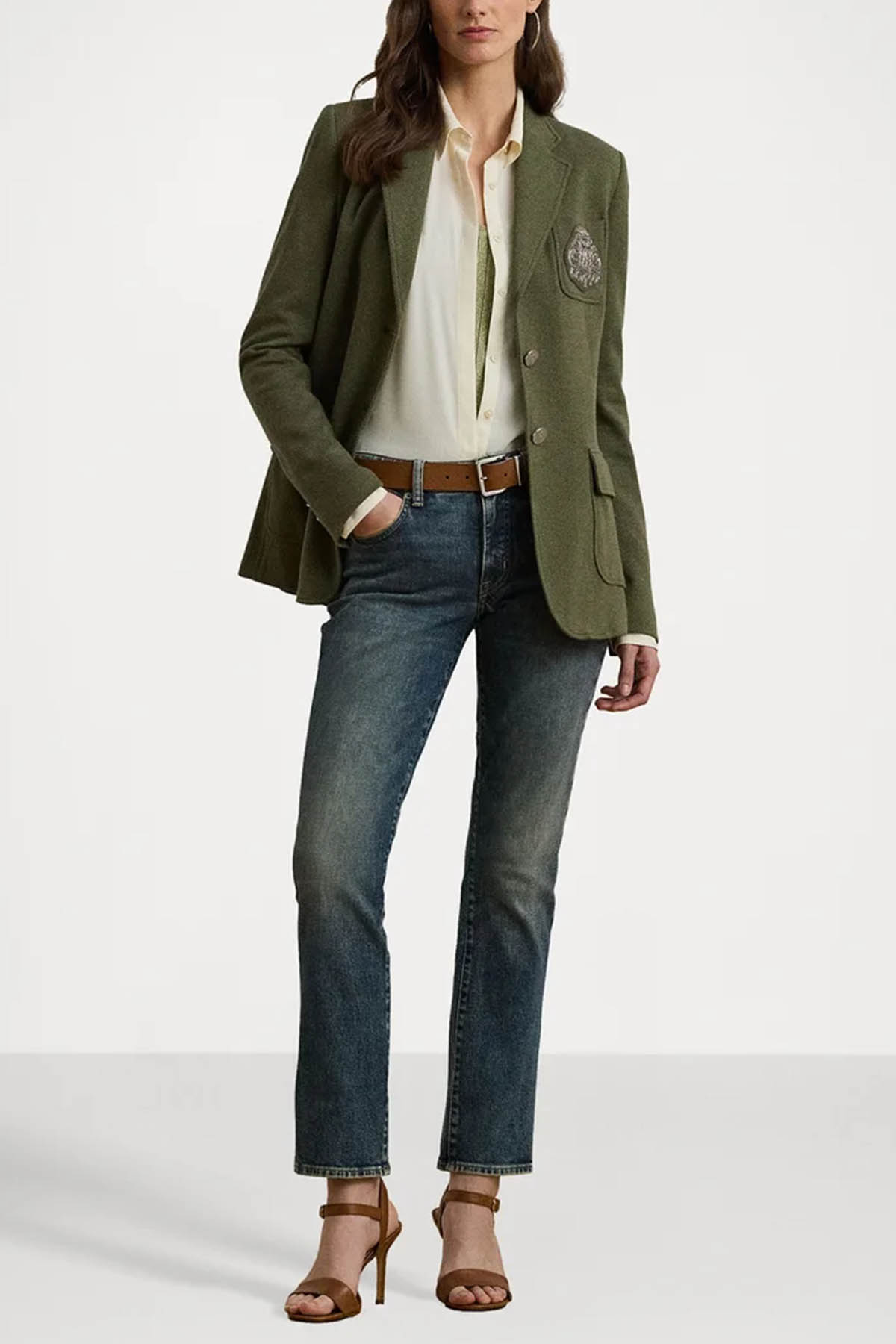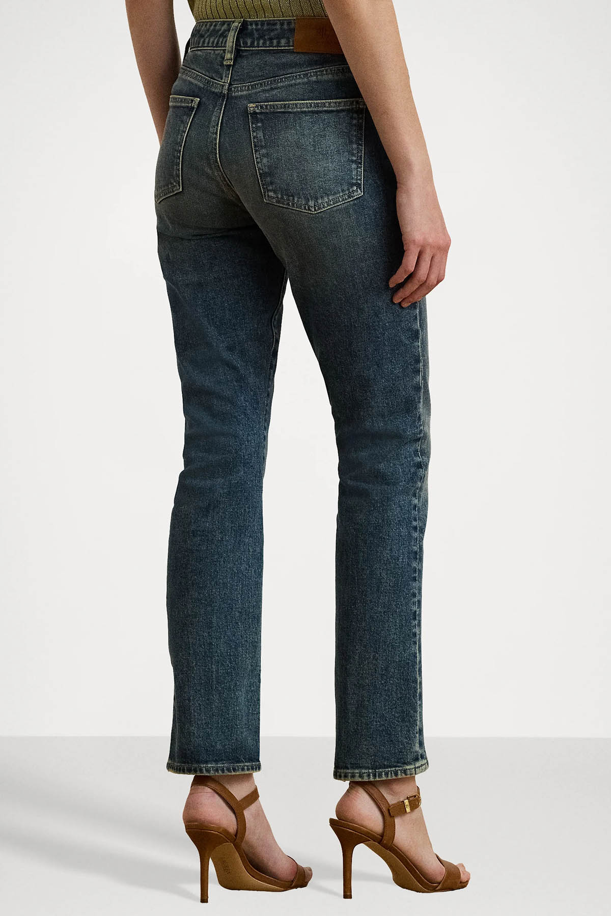 Modello con abbottonatura frontale con zip e bottone in metallo, vita con passanti, gamba dritta.