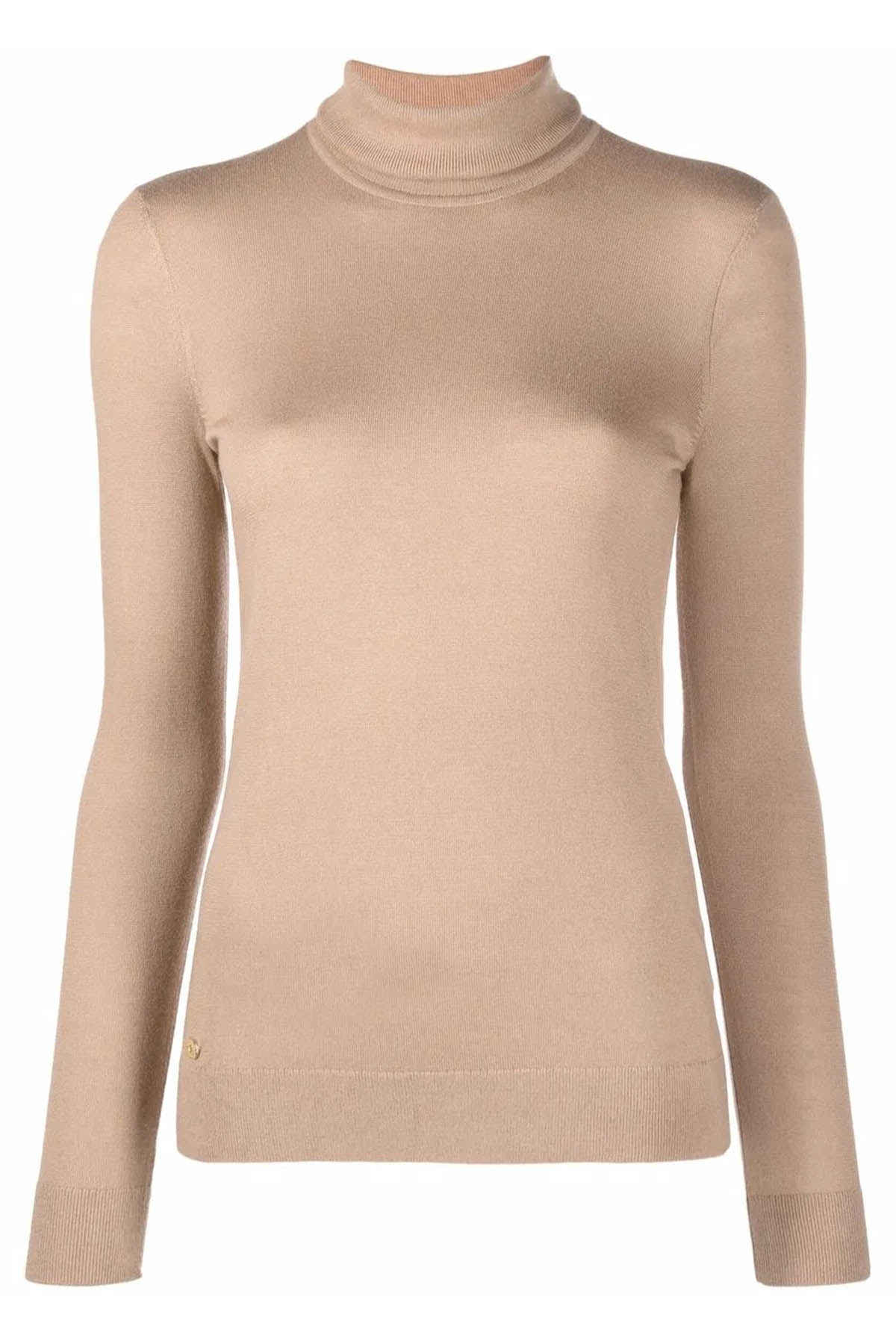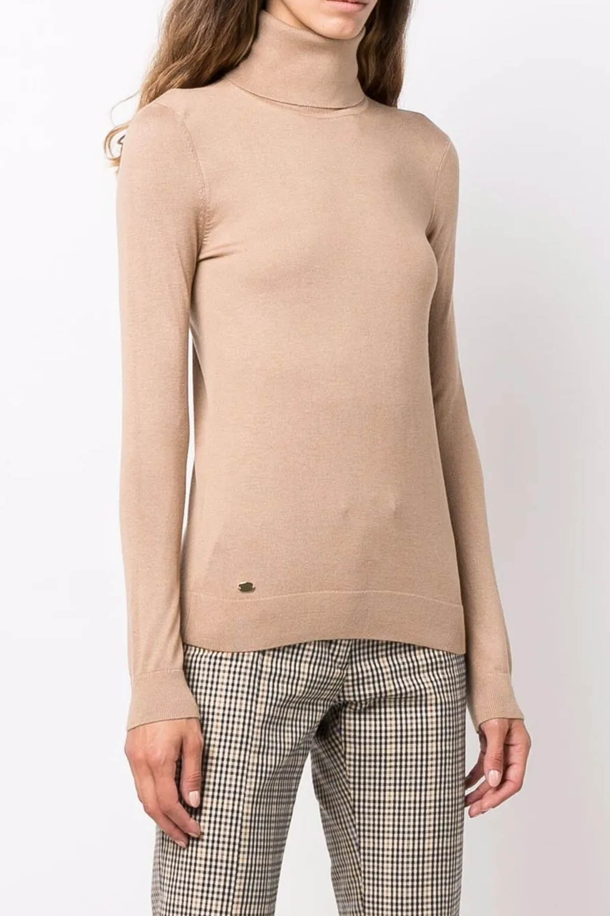 Modello collo alto, manica lunga, fibbia con logo applicata, orlo e polsini a coste.