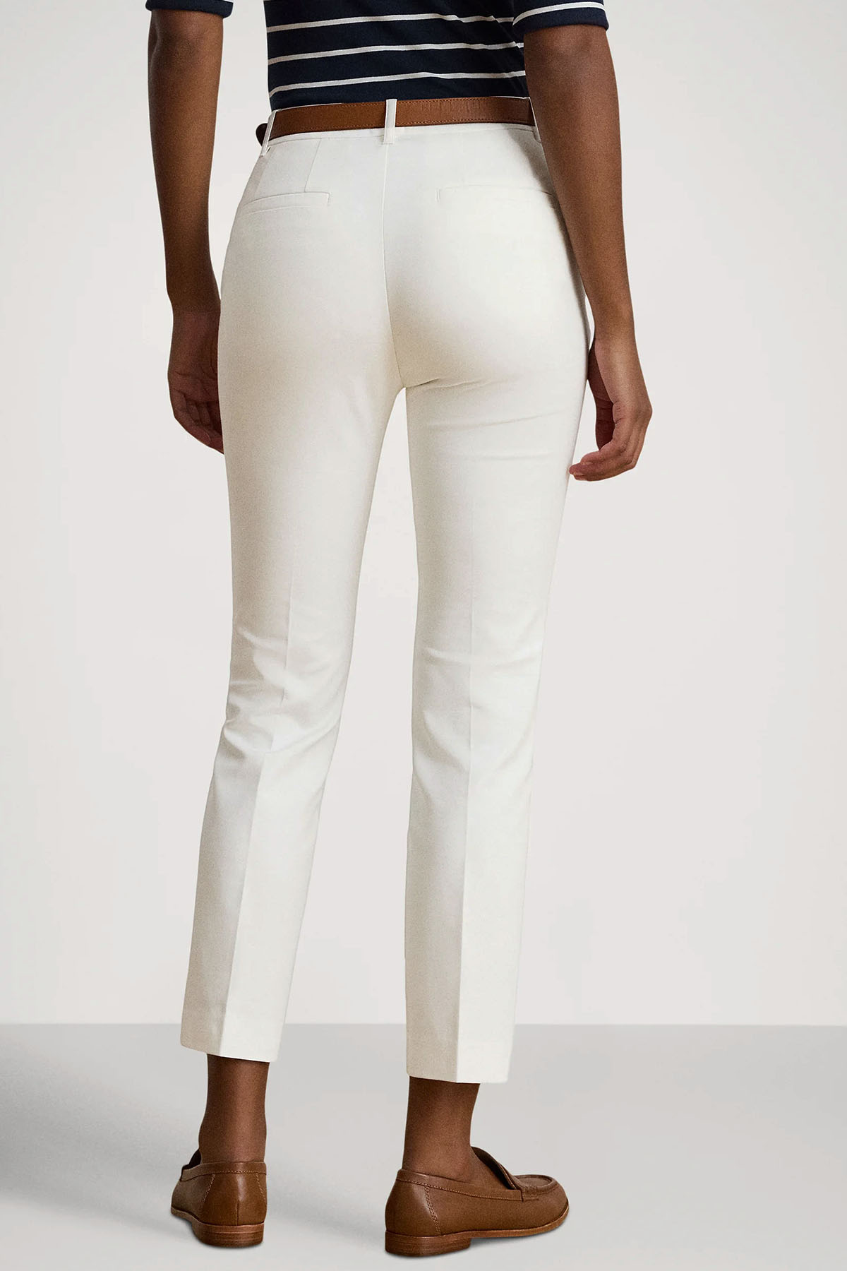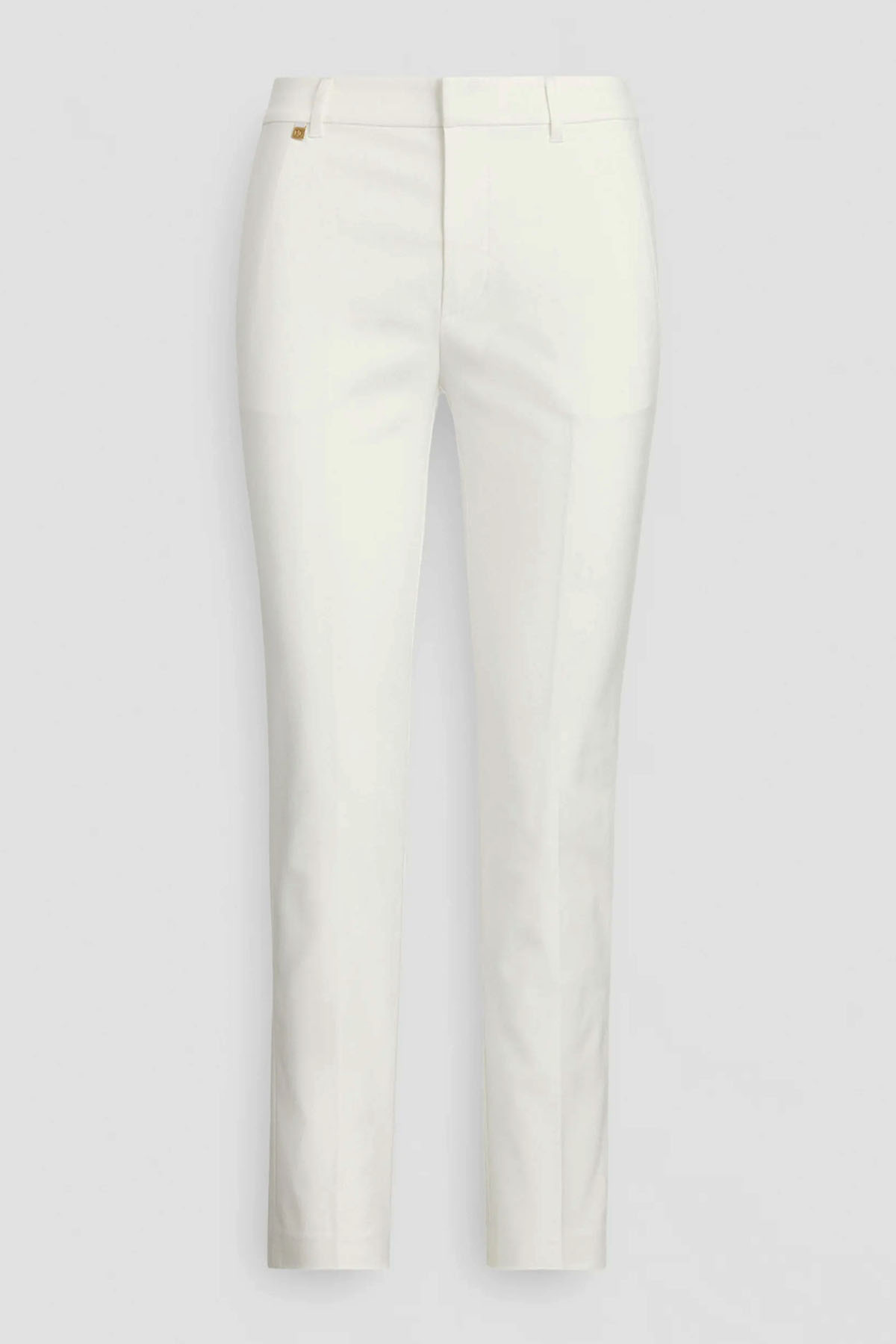 modello in misto cotone strech, con patta con cerniera e chiusura con gancetto, passanti per cintura, due tasche di sbieco in vita sul davanti, tasche a filetto in vita sul retro.