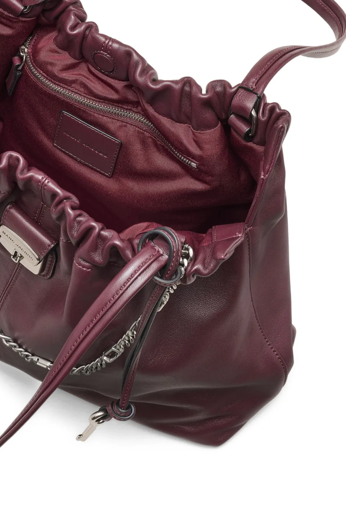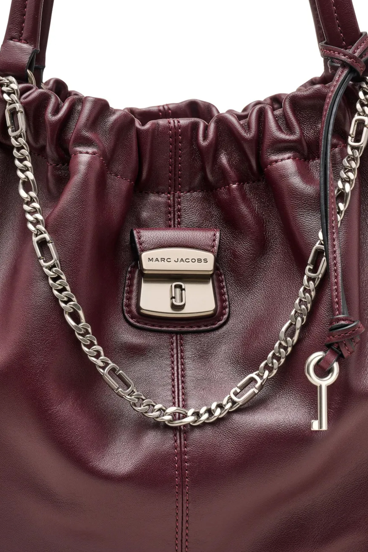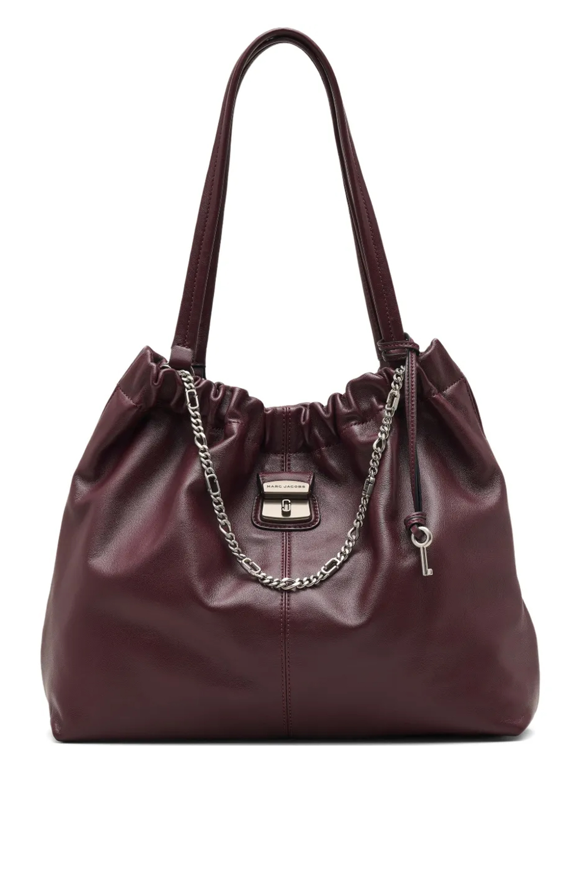 Modello realizzato in morbidissima nappa, ampia abbastanza da contenere un laptop da 13 pollici ma leggera al tatto, rifinita con una catena J Marc e un ciondolo a forma di chiave d'archivio, chiusura magnetica, due manici superiori, tasca interna con cerniera.