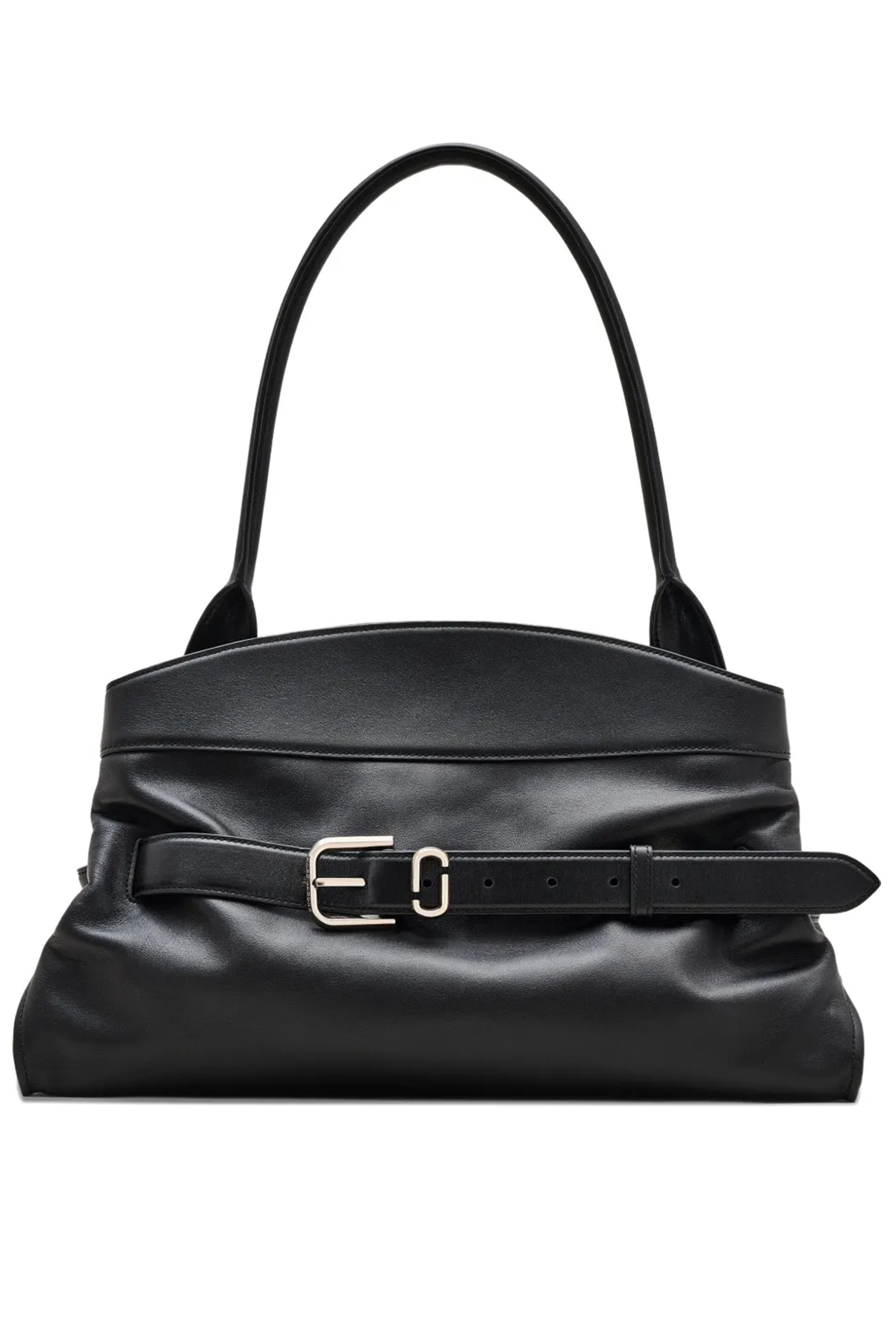 Modello realizzato in morbida pelle, cintura fissa con logo J Marc, chiusura magnetica, due scomparti interni e tasche, piedini in metallo, manico ampio che consente di indossarla a spalla.