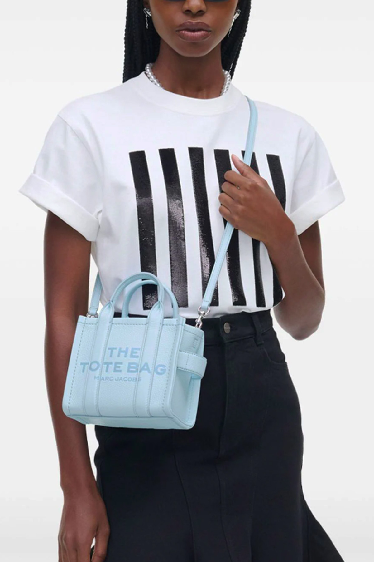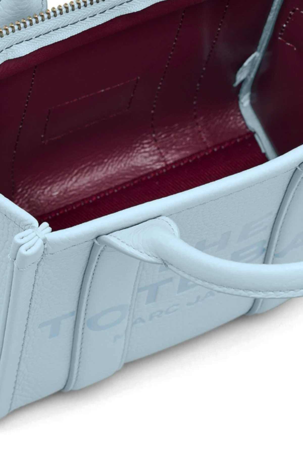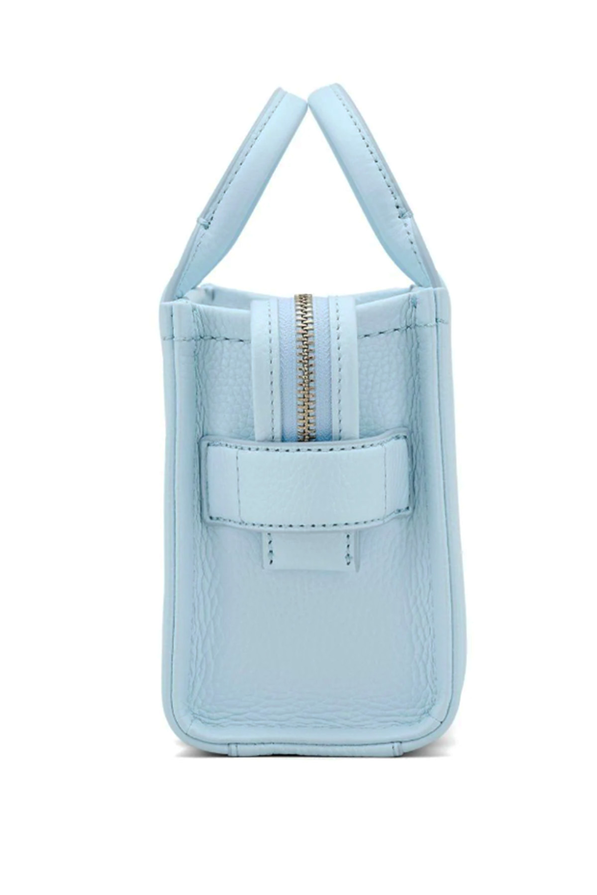 Modello in pelle di vitello, trama zigrinata, chiusura superiore nascosta con zip, due manici tondi, tracolla regolabile e rimovibile, manico piatto laterale, logo goffrato nella parte anteriore, fodera a contrasto, scomparto unico, tasca interna applicata.