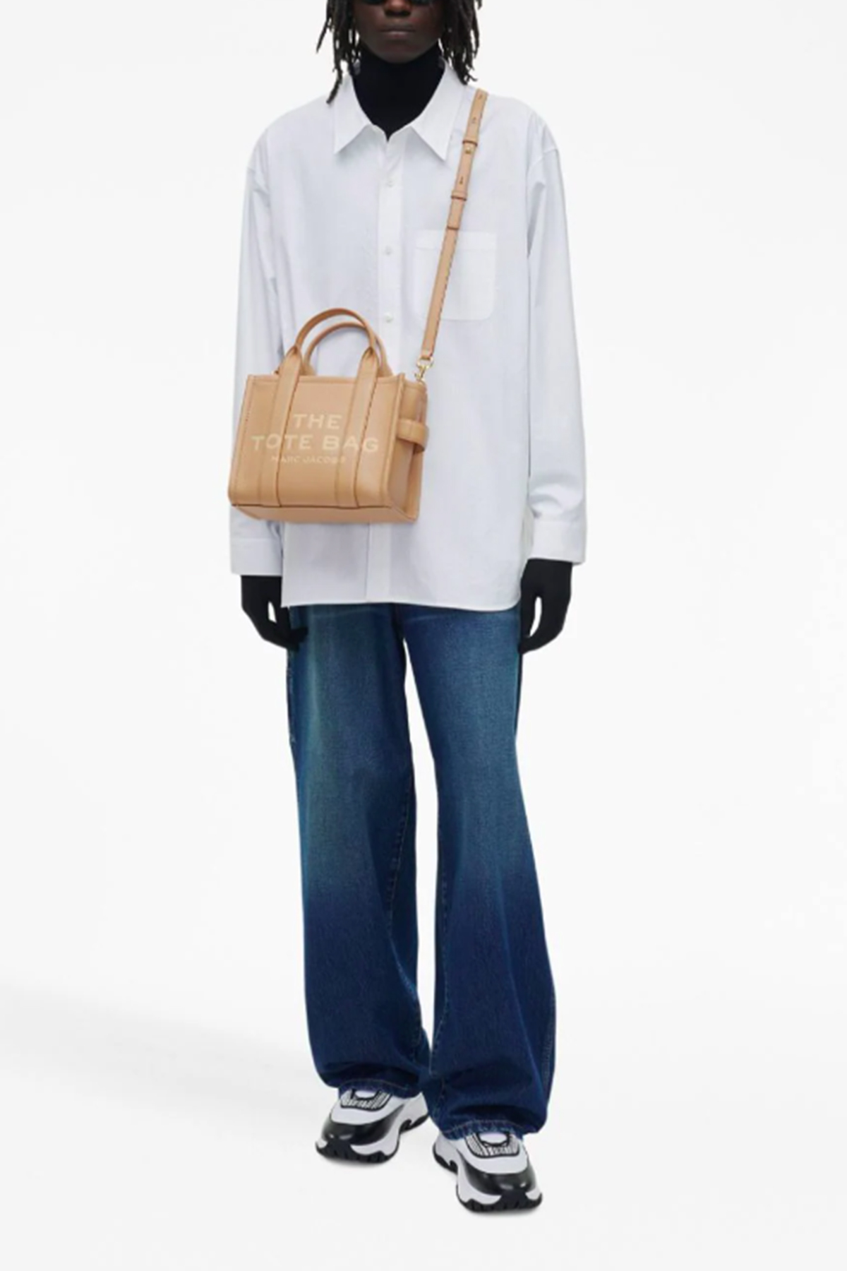 Borsa con manici, logo frontale, tracolla regolabile e rimovibile, componenti metalliche color oro, scomparto interno unico, tasca interna.