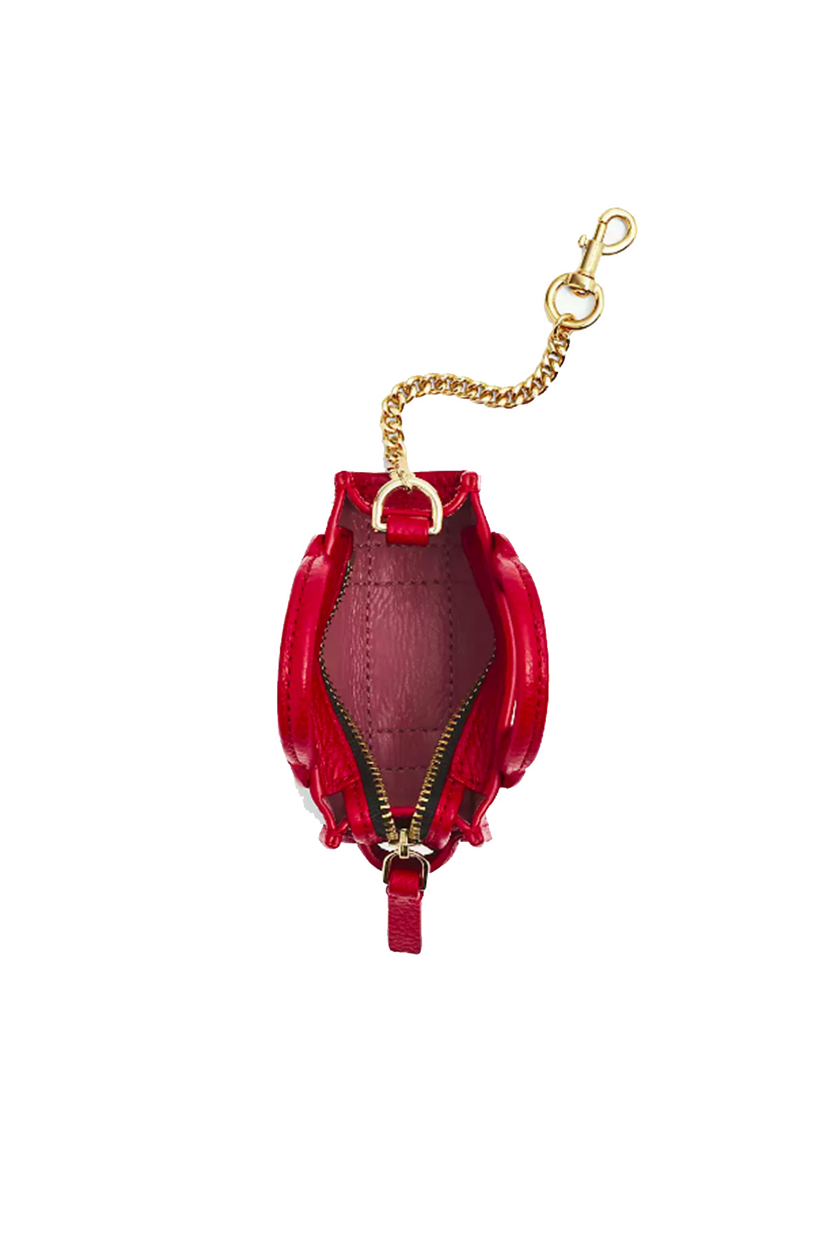 Modello in pelle, chiusura frontale con zip, chiusura a moschettone, due manici.