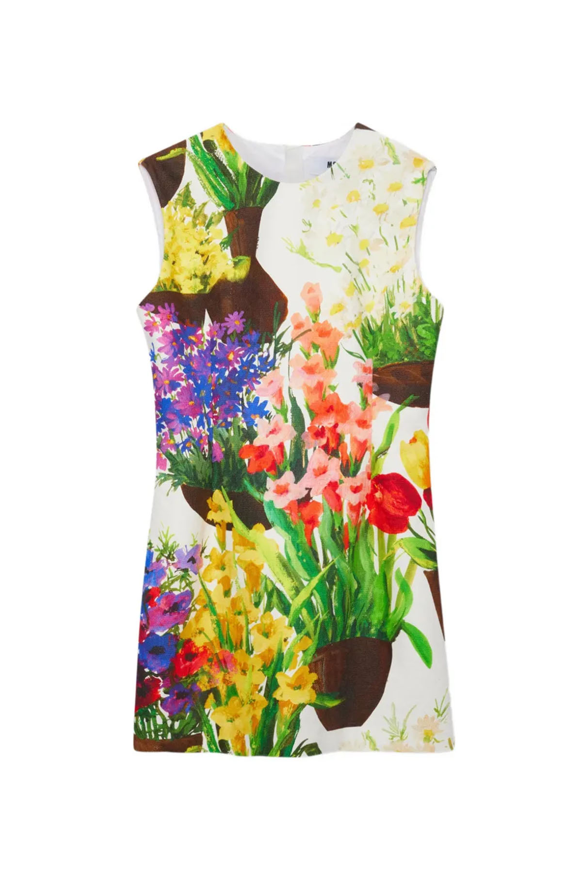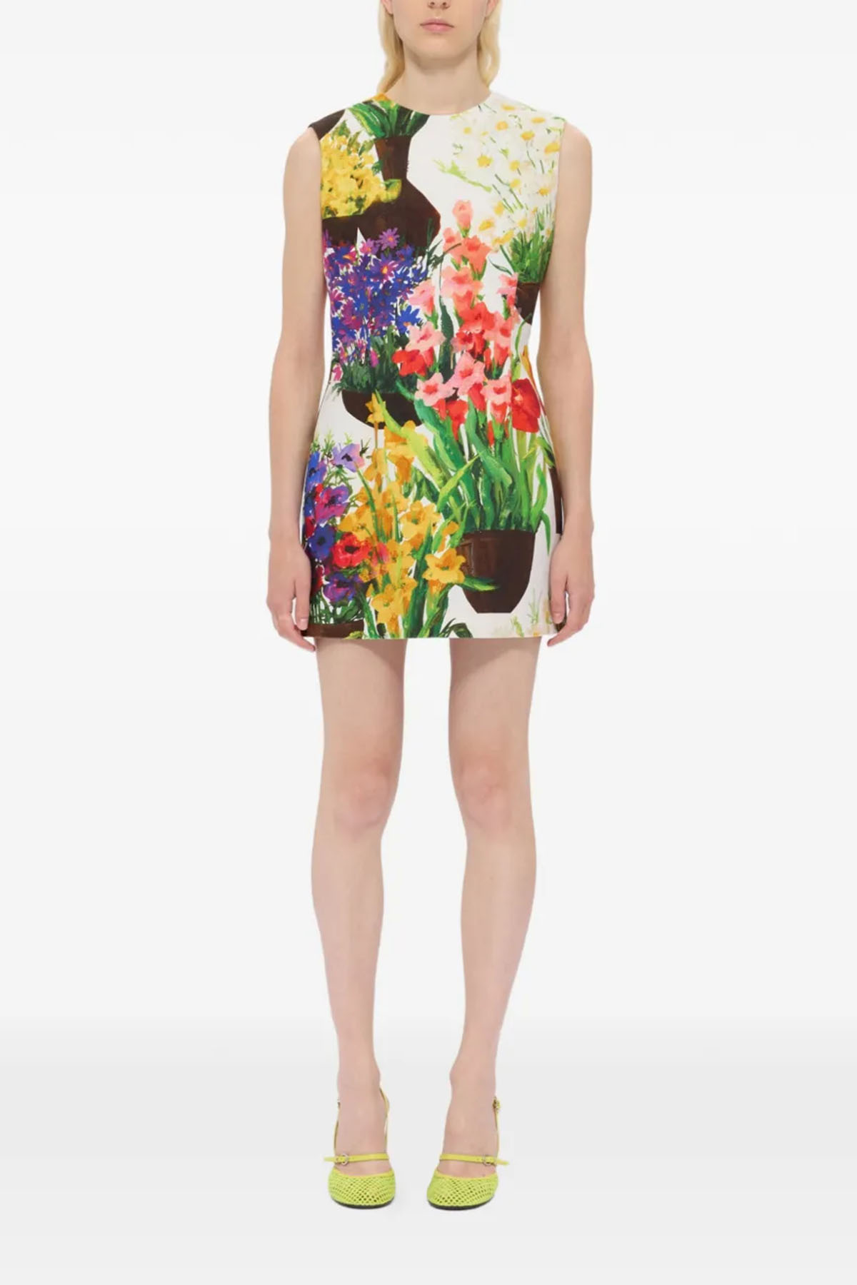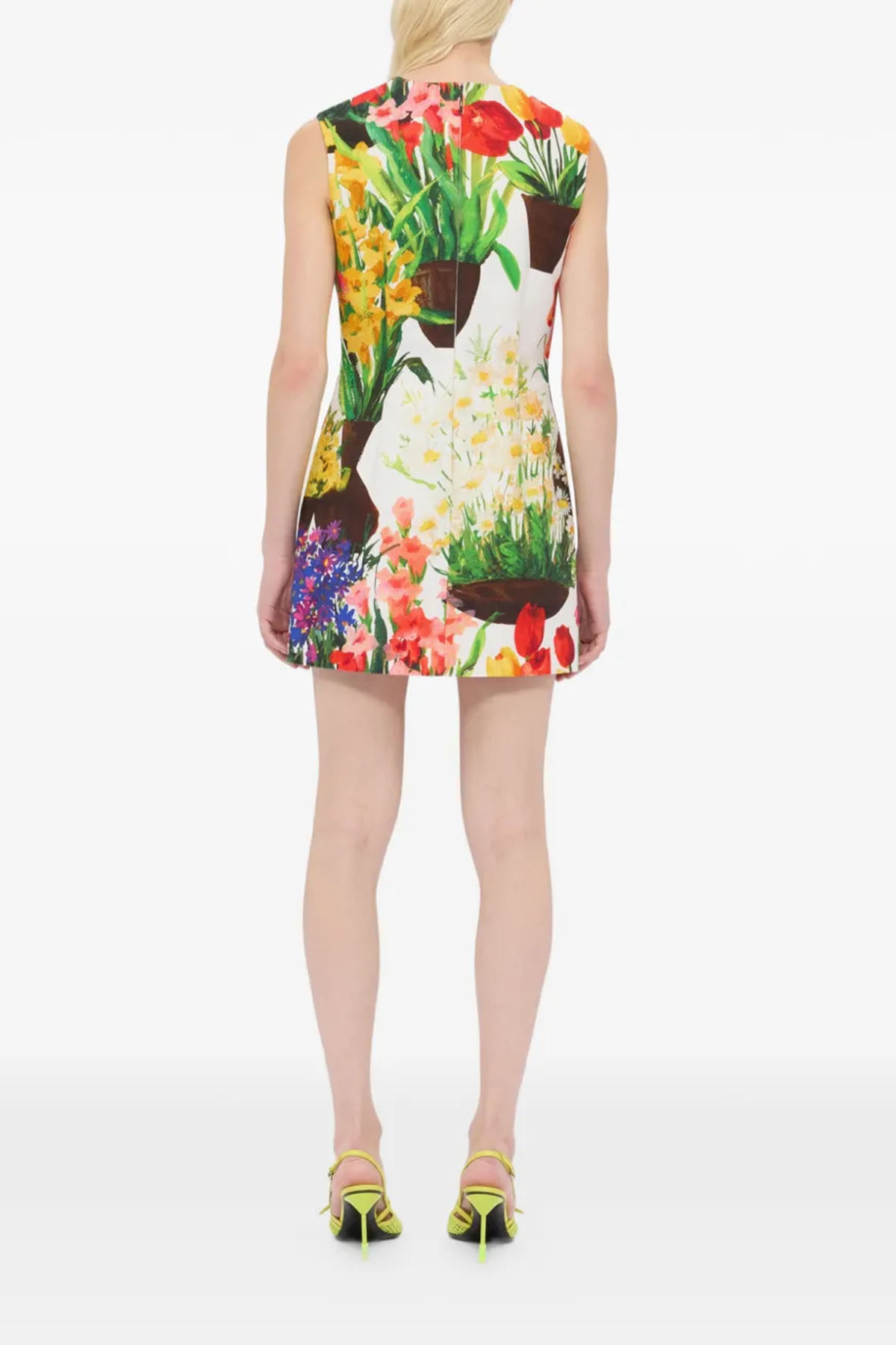 Modello stampa a fiori, senza maniche, scollo rotondo, chiusura posteriore con zip nascosta.