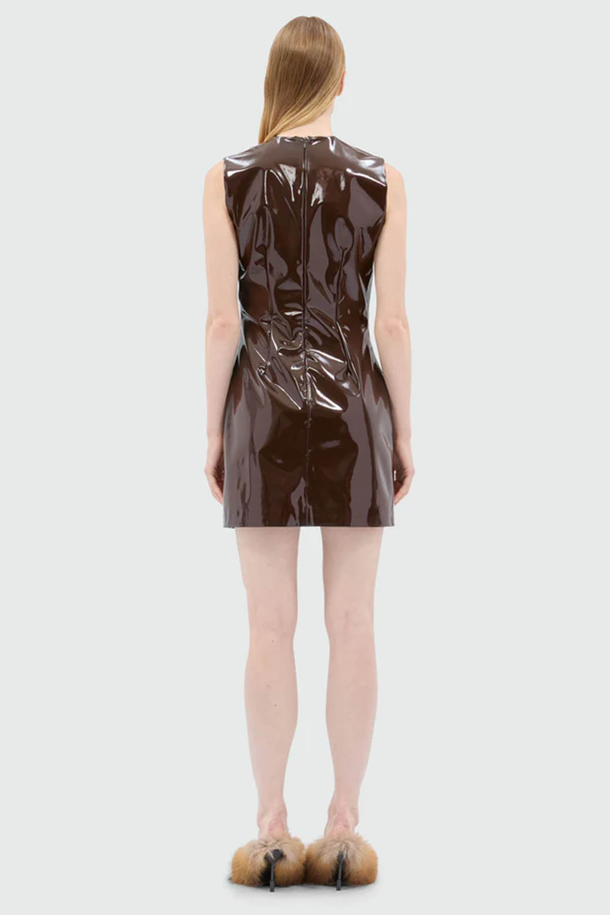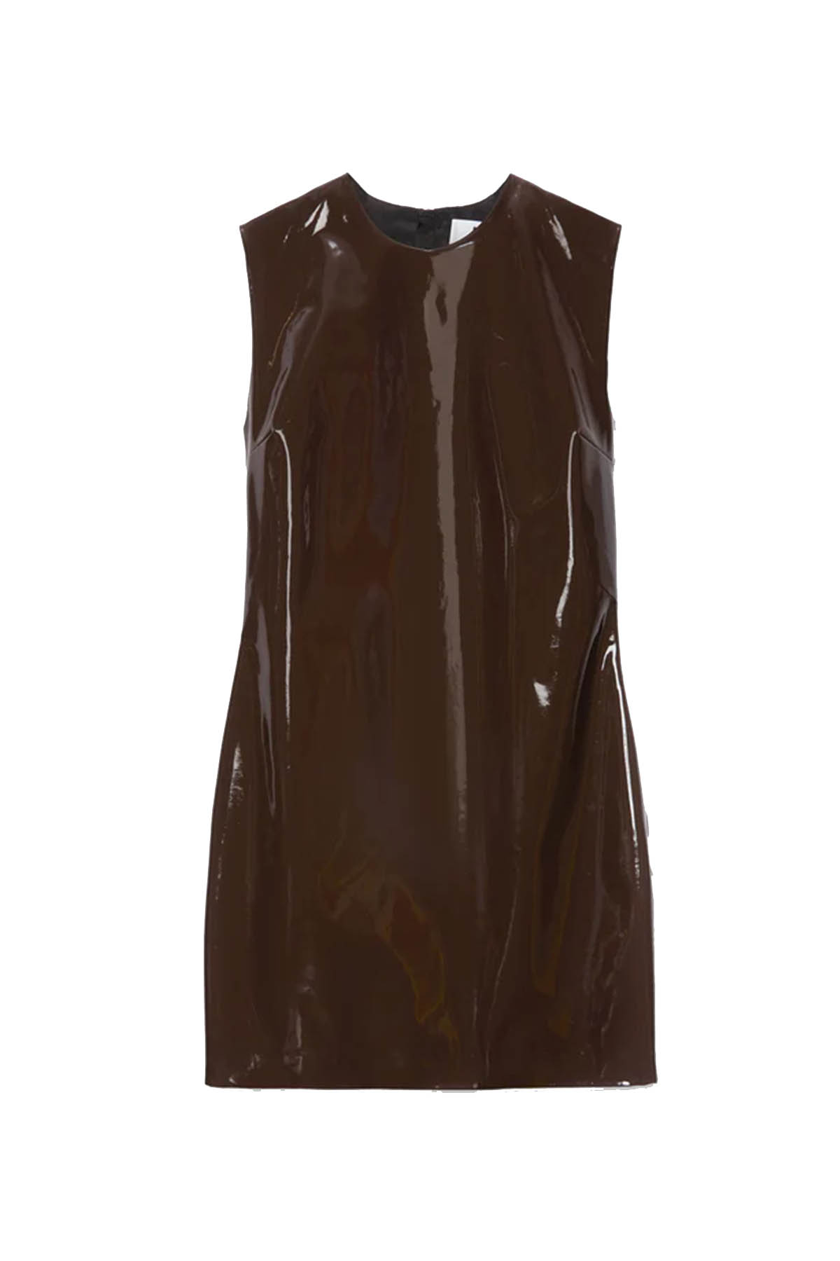 Modello girocollo, senza maniche, chiusura posteriore con zip nascosta, design corto.