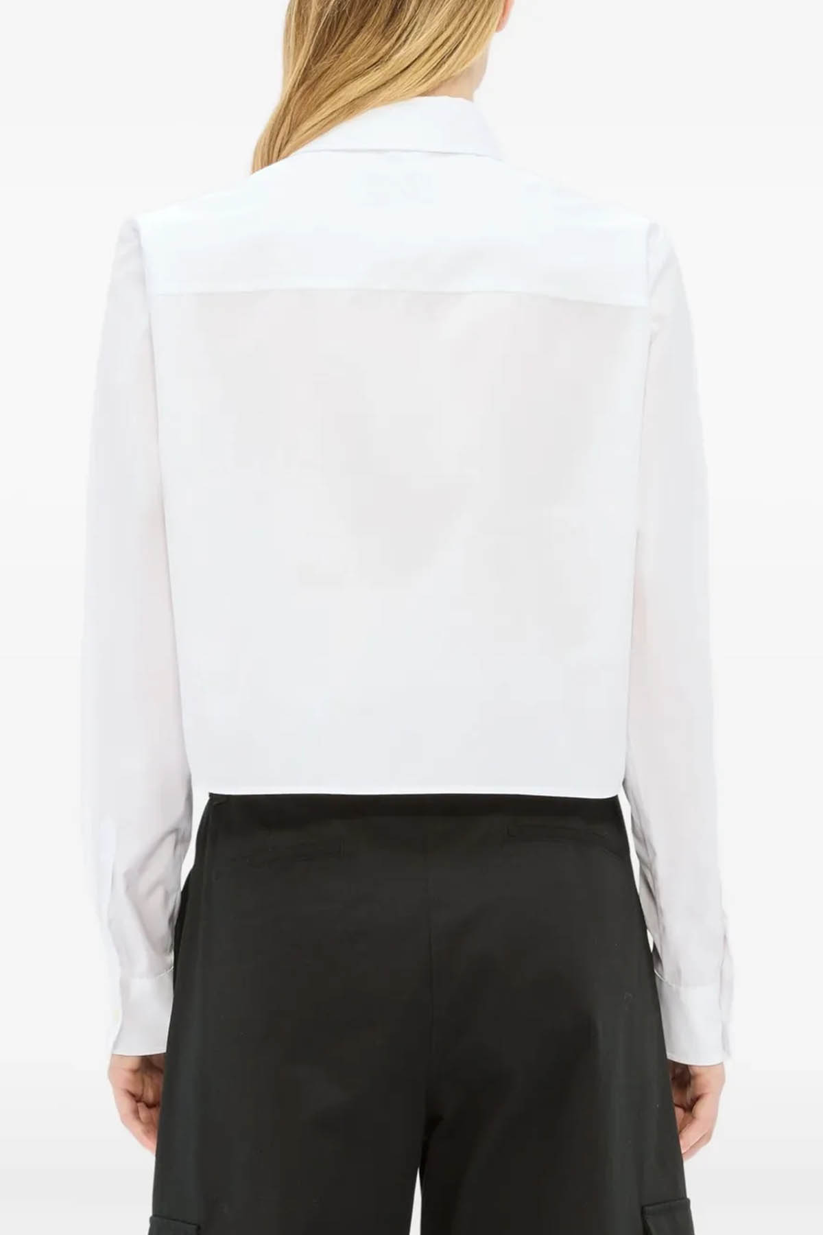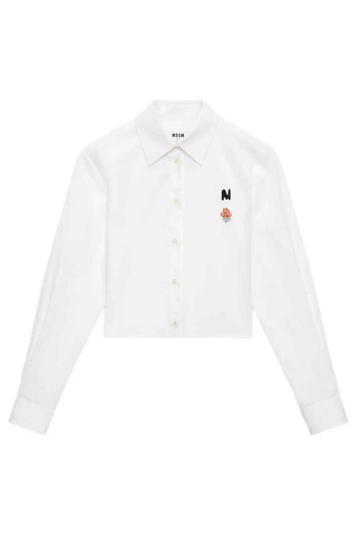 Modello con colletto, maniche lunghe, abbottonatura frontale, ricamo sul petto.