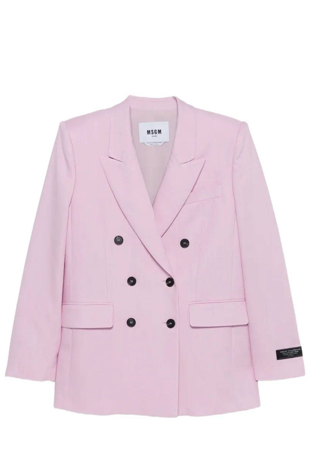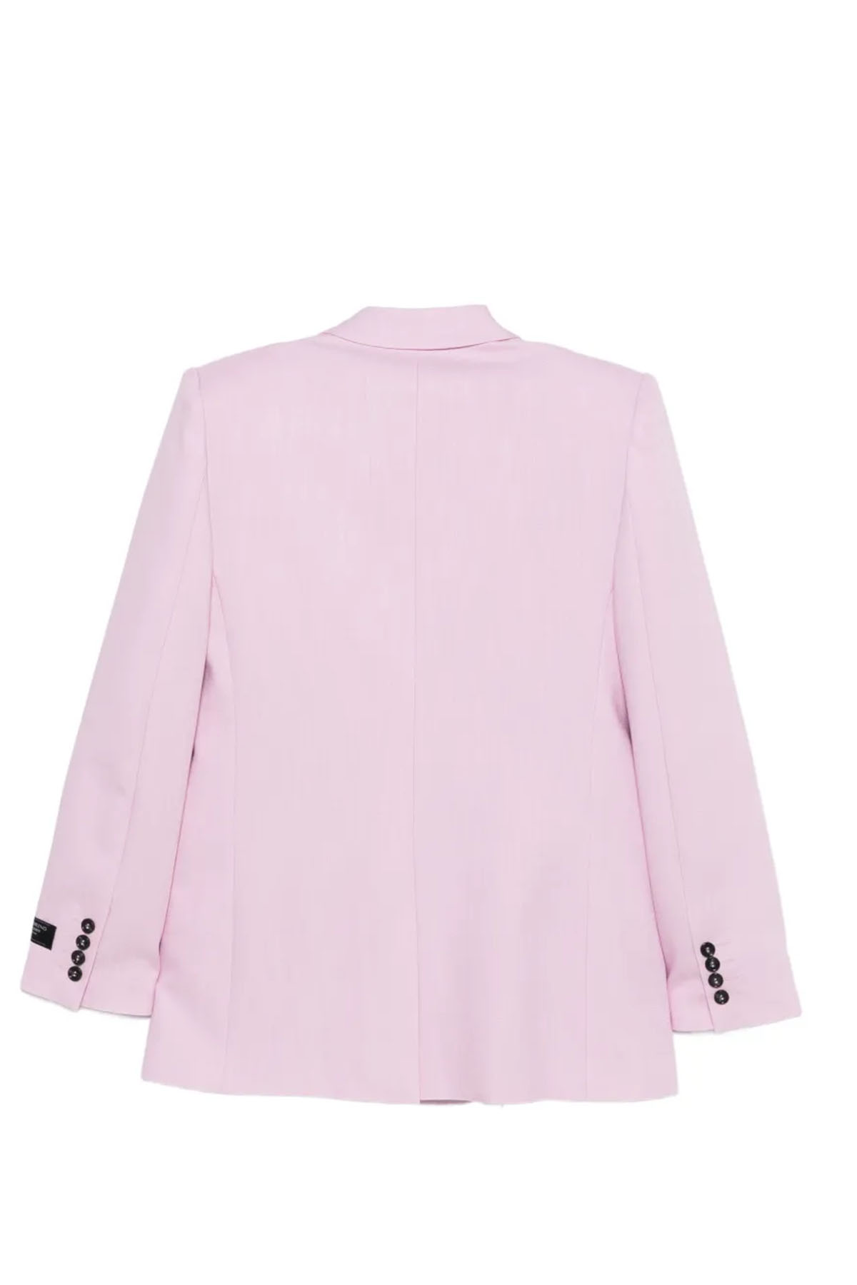 Giacca doppio petto in canvas misto viscosa, tasche con pattina e filetto su petto, etichetta jaquard su manica, spacco posteriore centrale.