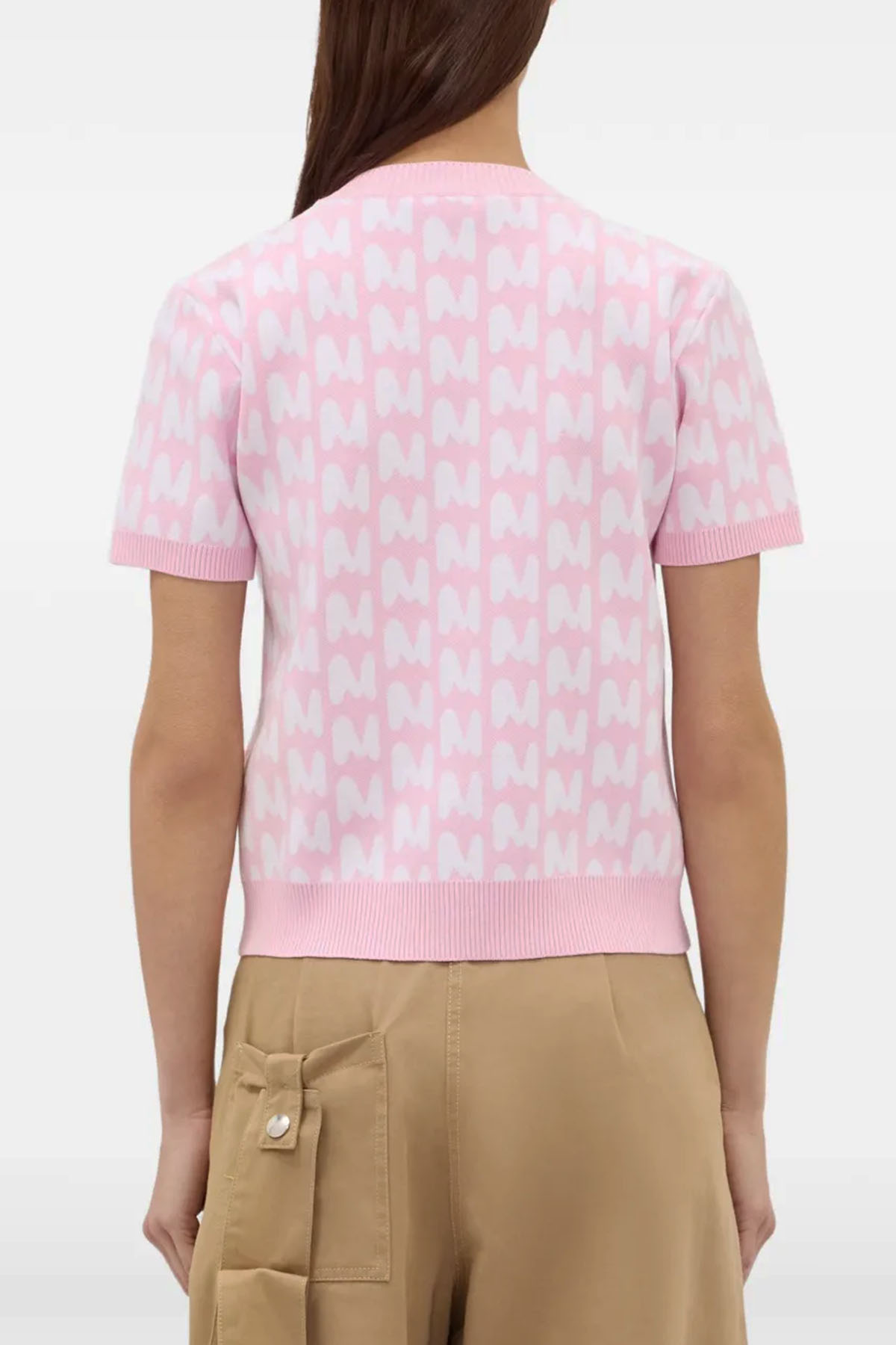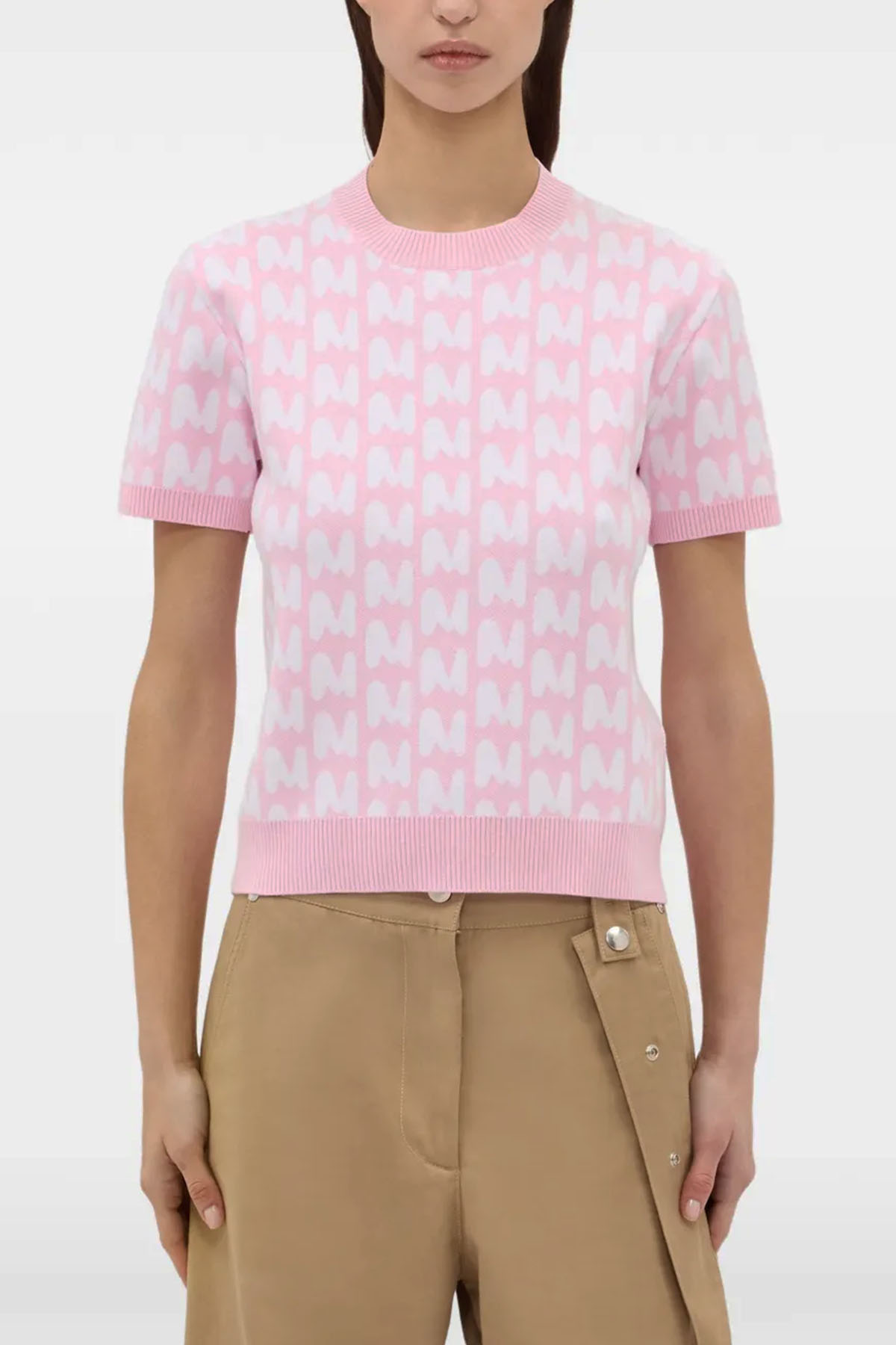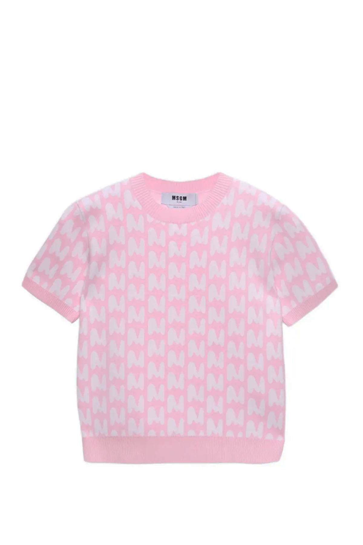 modello girocollo, manica corta, jaquard MWAVE, colore rosa/bianco.