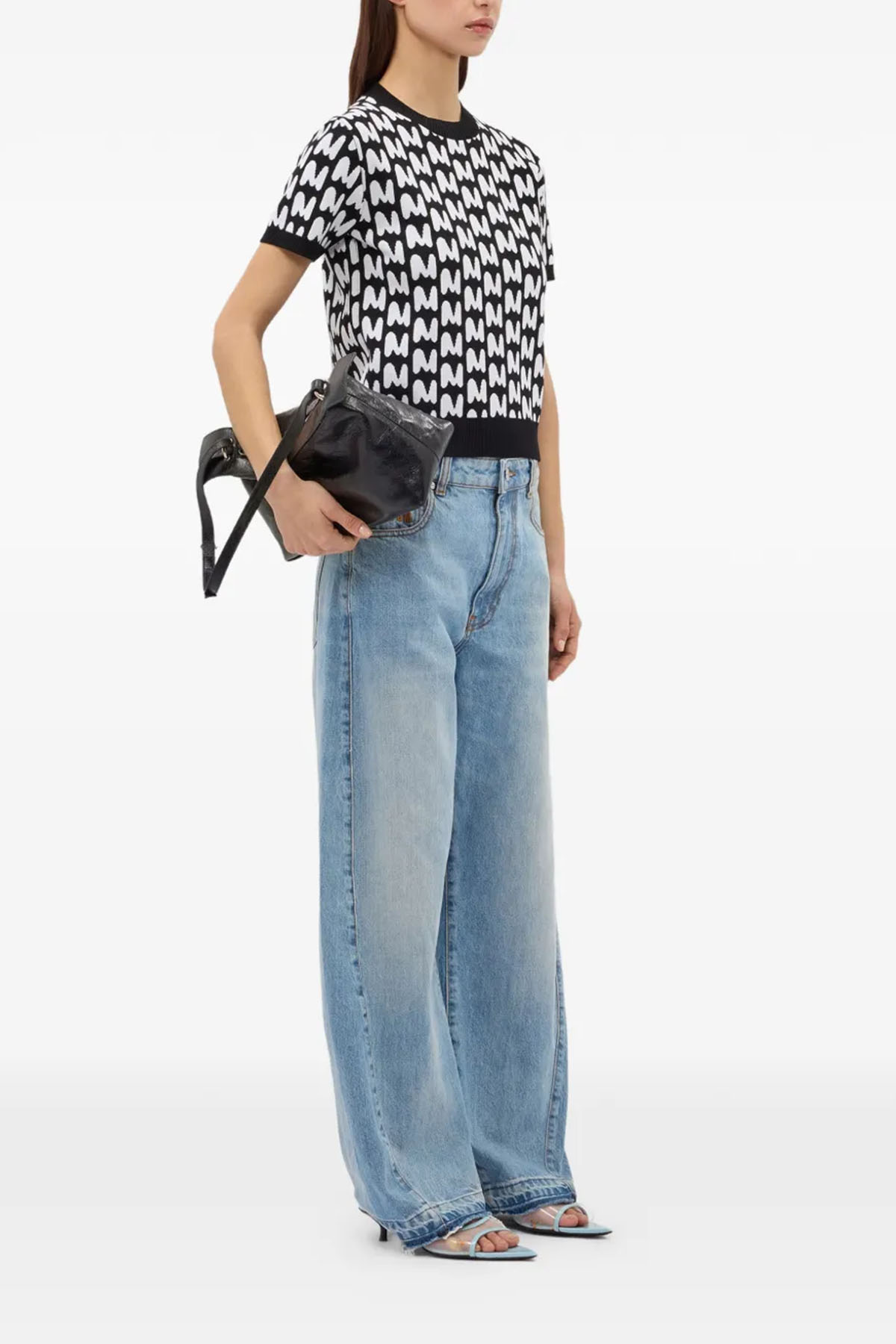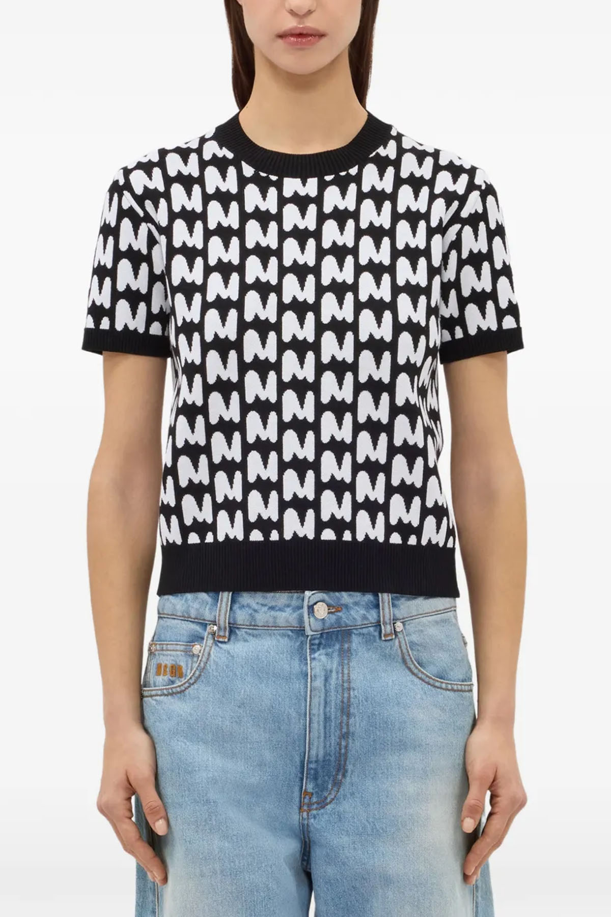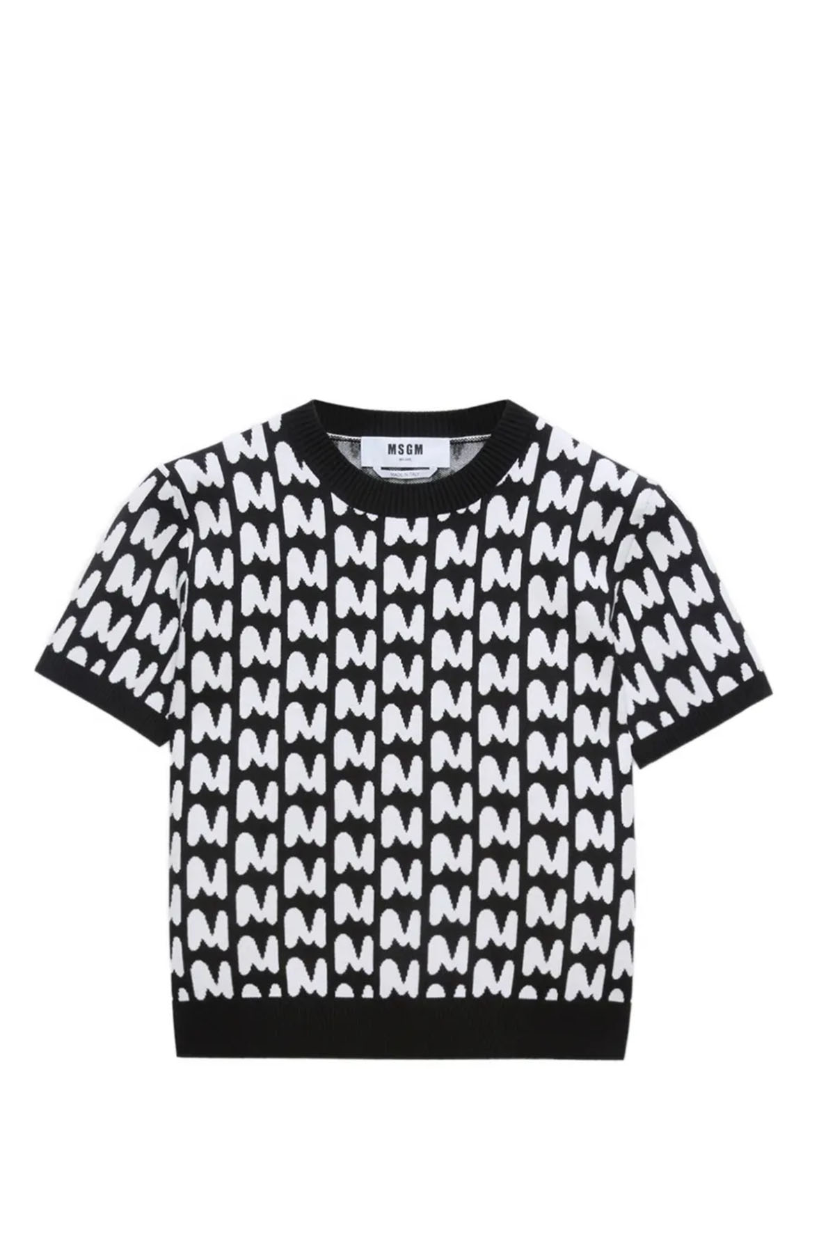 modello girocollo, manica corta, jaquard MWAVE, colore nero/bianco.