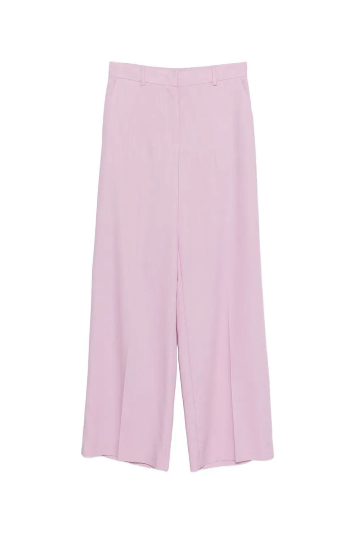 Pantalone in canvas misto viscosa, gamba larga, tasche sul fianco e tasche a filetto sul retro.