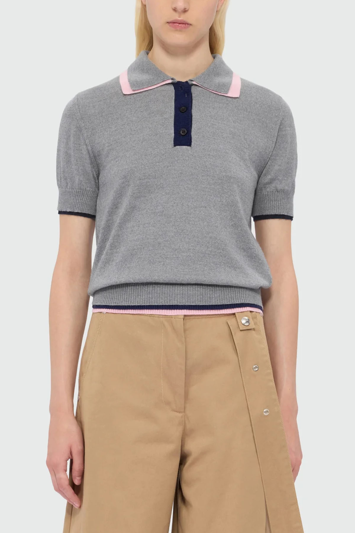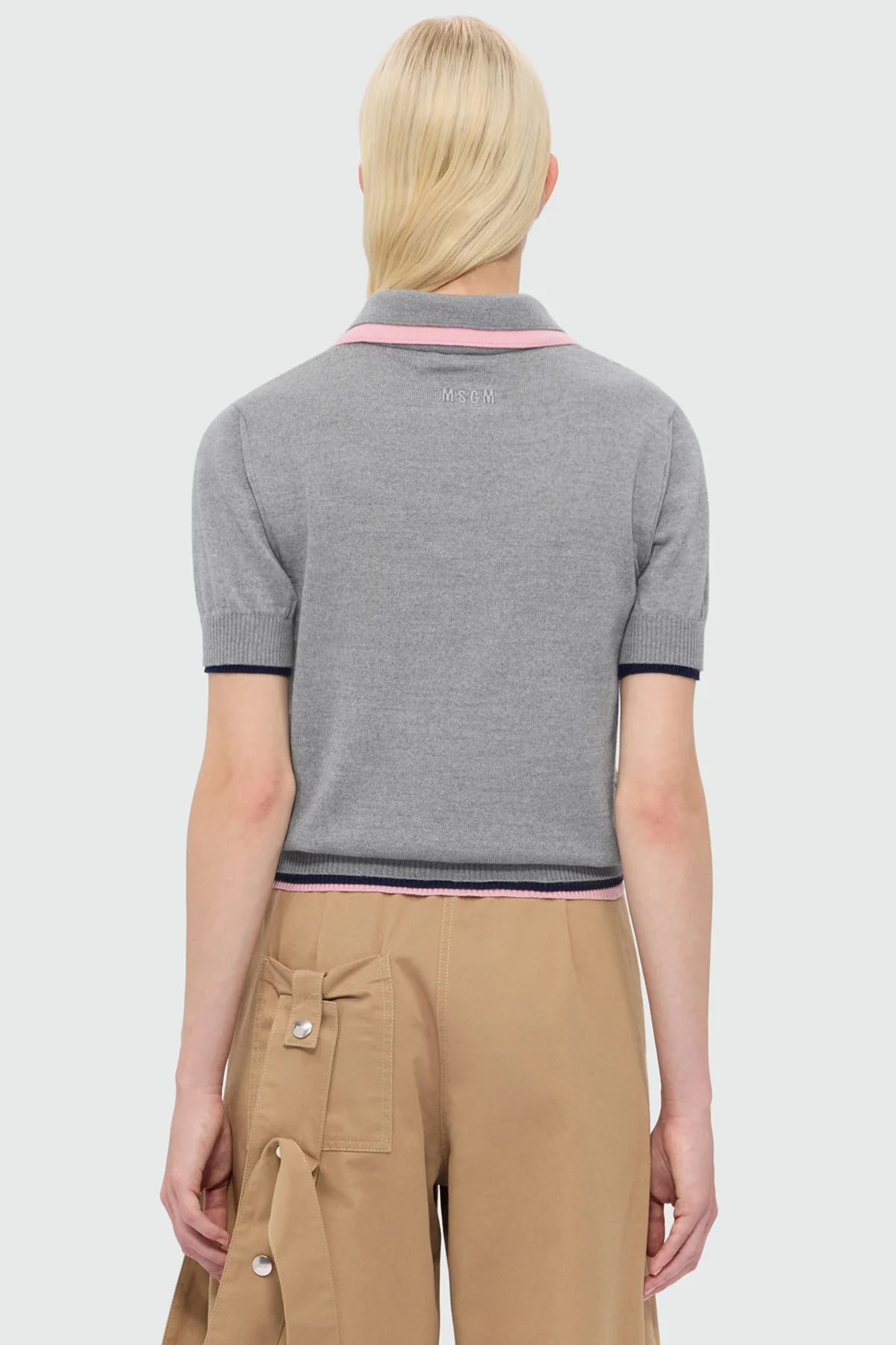Polo in lana con dettaglio doppio bordo, colletto classico e manica corta, ricamo MSGM in tono colore sul retro.