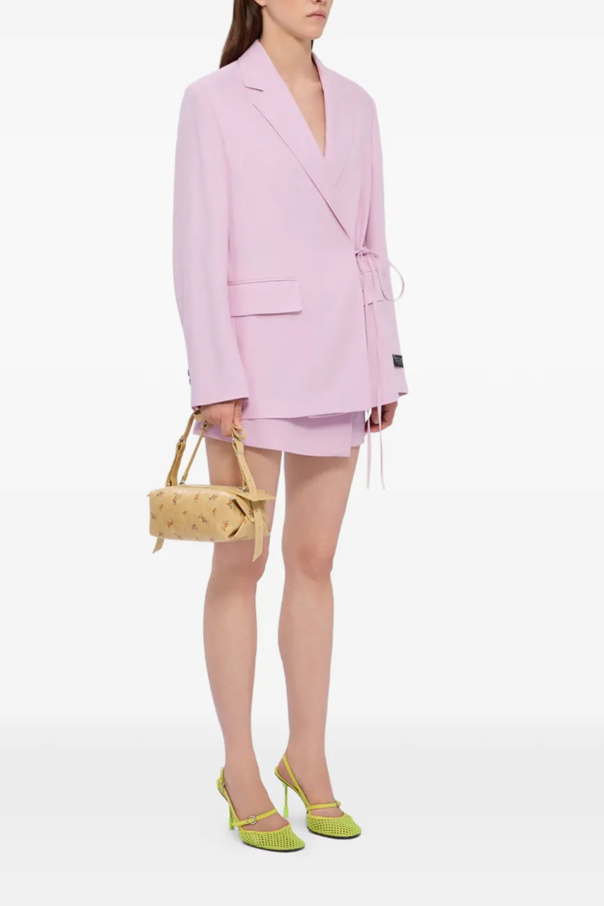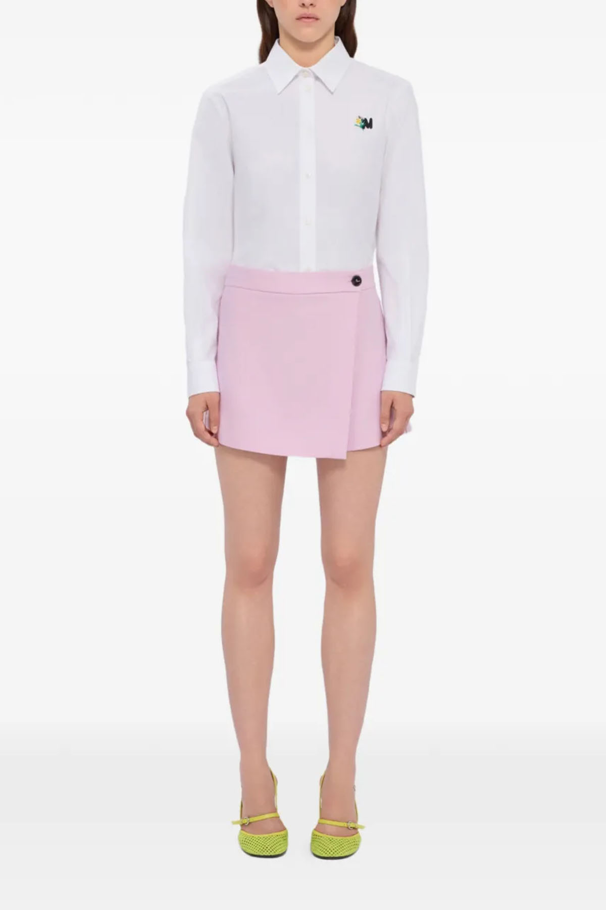 Shorts in misto viscosa, chiusura a portafoglio e bottone a vista.