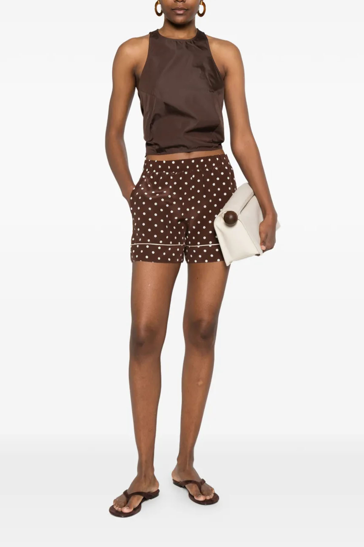 modello conn motivo a pois marrone/bianco, vita elasticizzata, design corto.