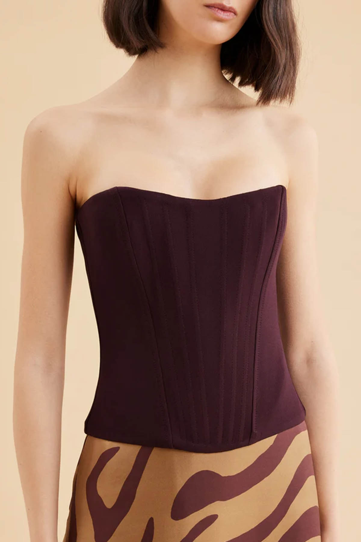 Modello corsetto, chiusura posteriore con zip nascosta, design corto.