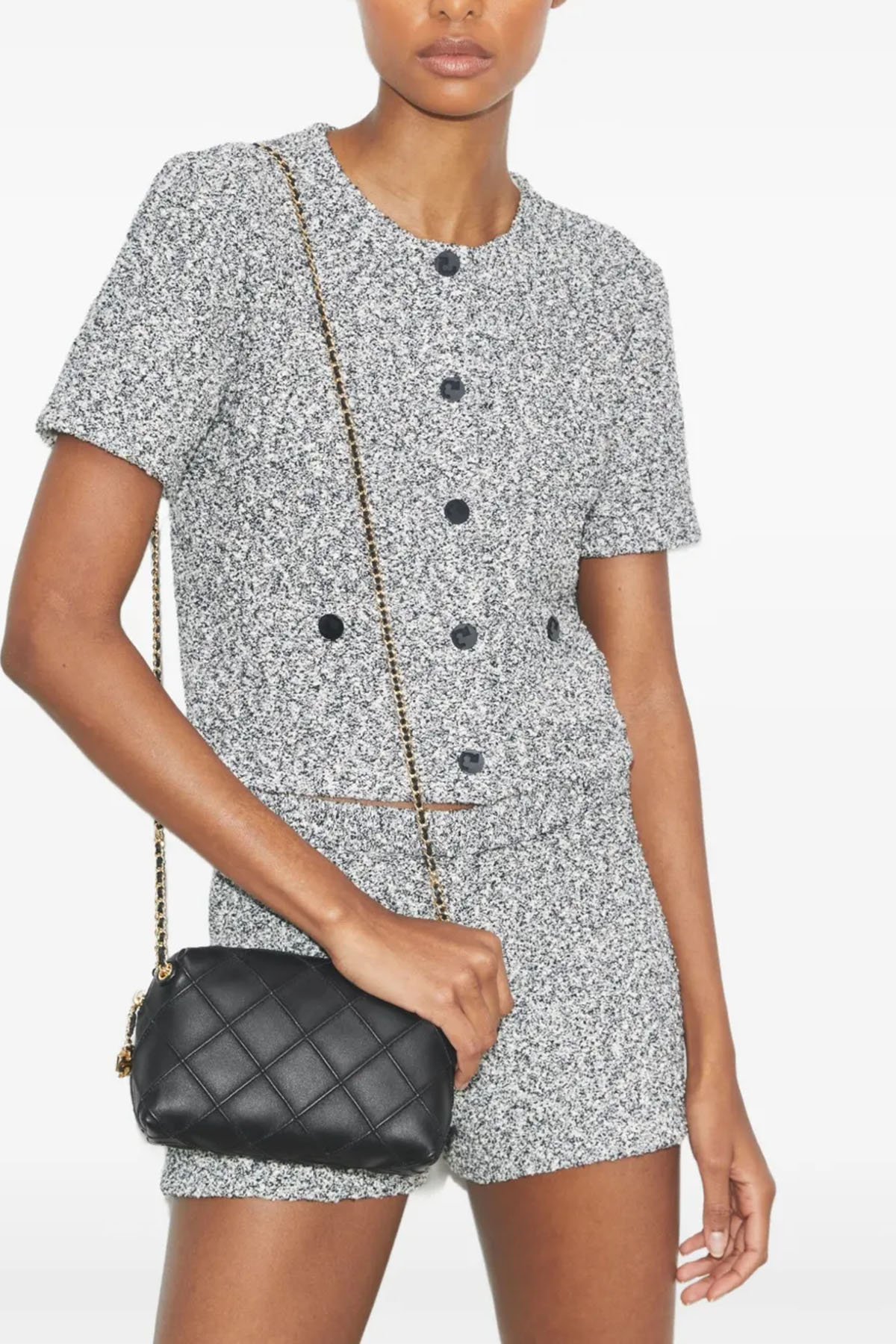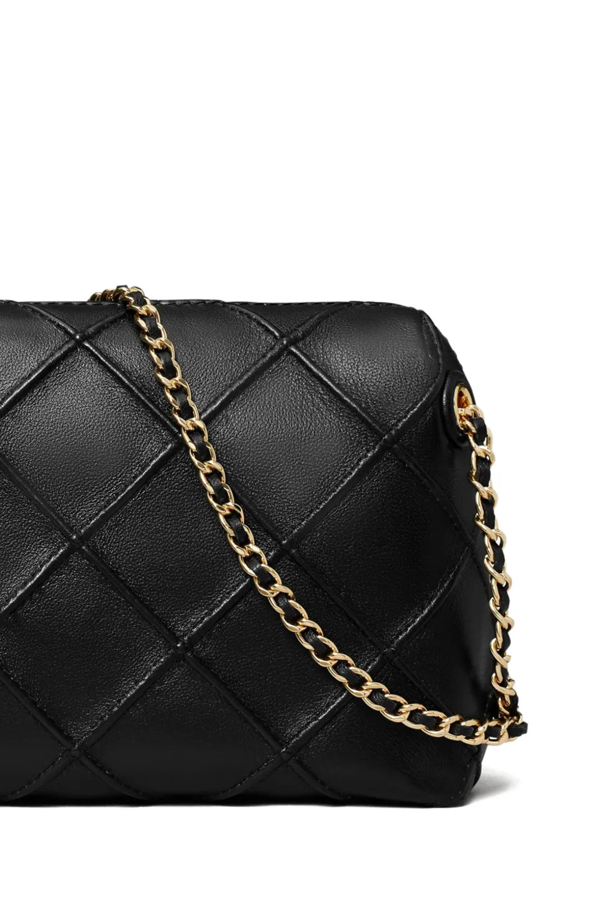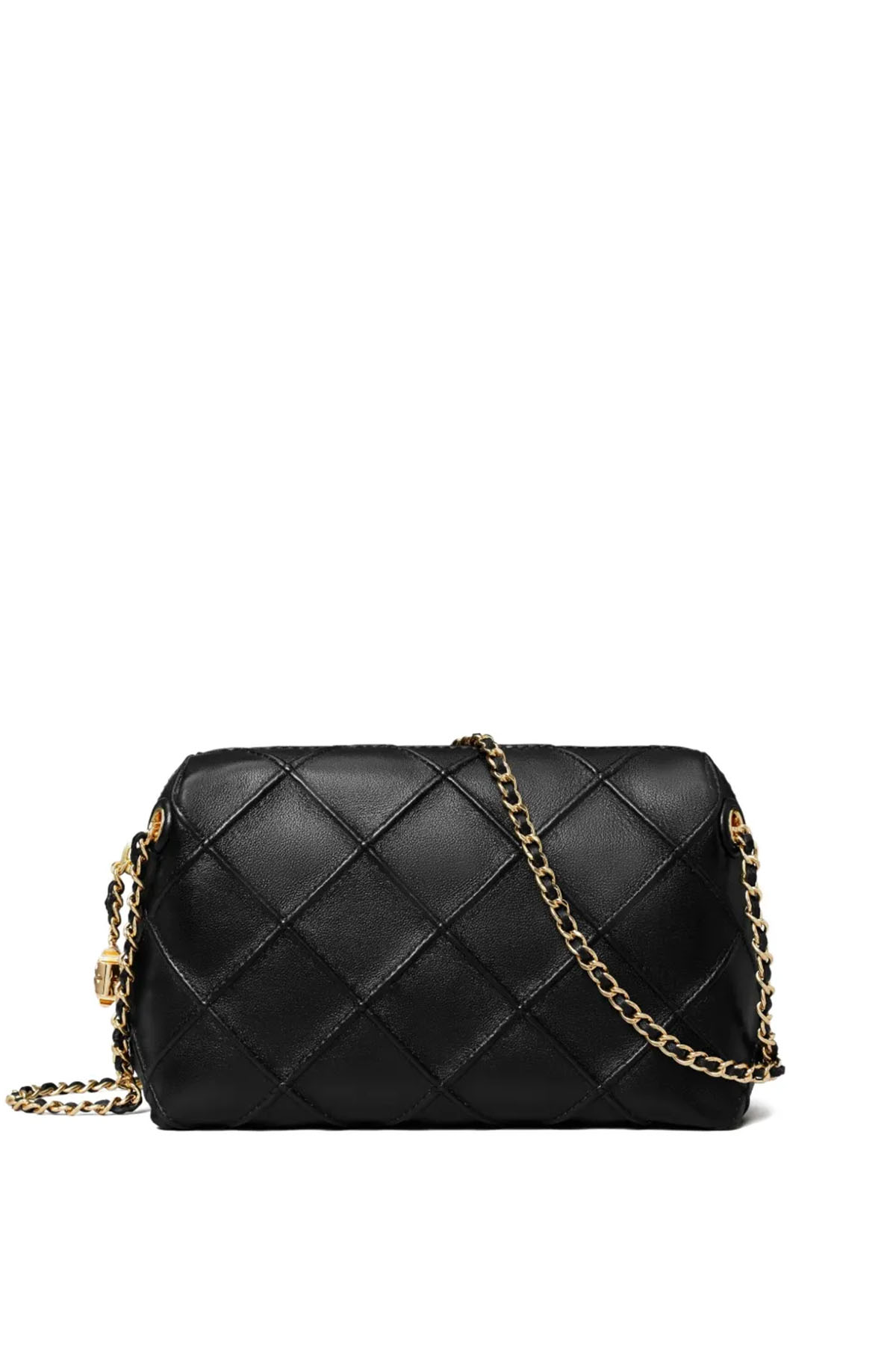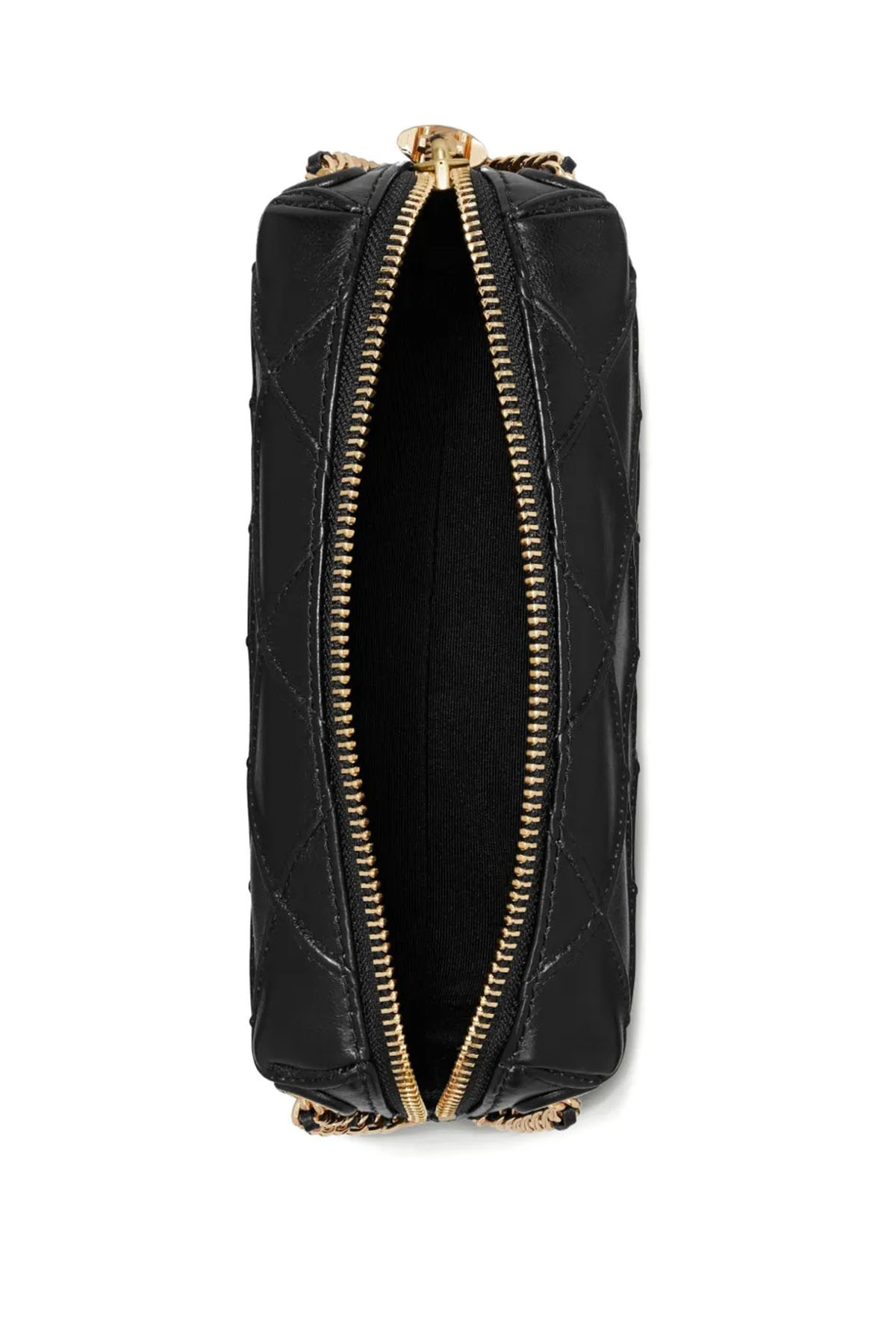 Modello con chiusura con zip, tracolla rimovibile in pelle e catena intrecciate, altezza 56,5 cm, uno scomparto interno per carte, ciondolo con logo, tecnica di trapuntatura con pinces. Sacchetto protettivo incluso.