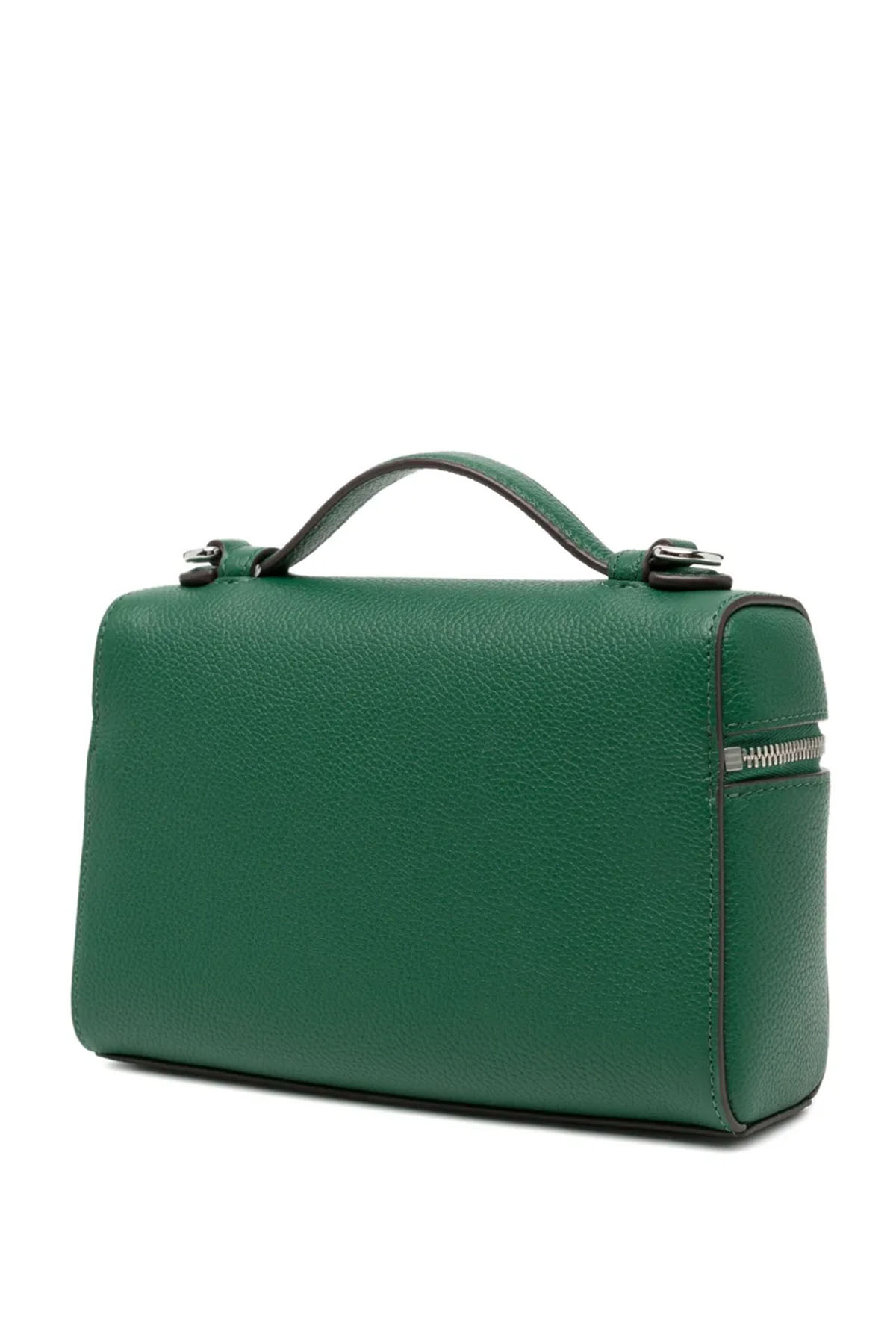Modello con chiusura con cerniera a doppio cursore; logo in metallo sui tiretti, manico superiore con altezza di 2,5 cm; tracolla regolabile e rimovibile con altezza di 56,5 cm, 1 tasca interna per carte. Sacca antipolvere inclusa.