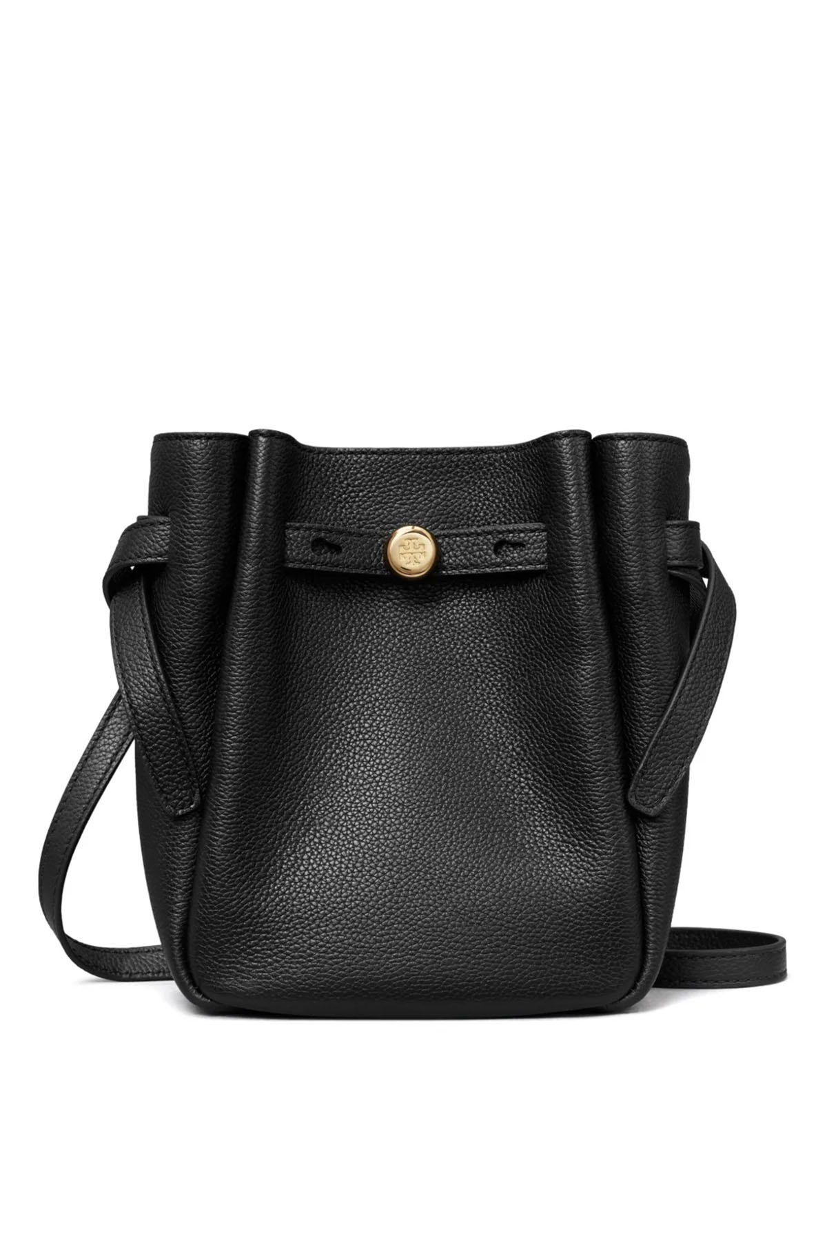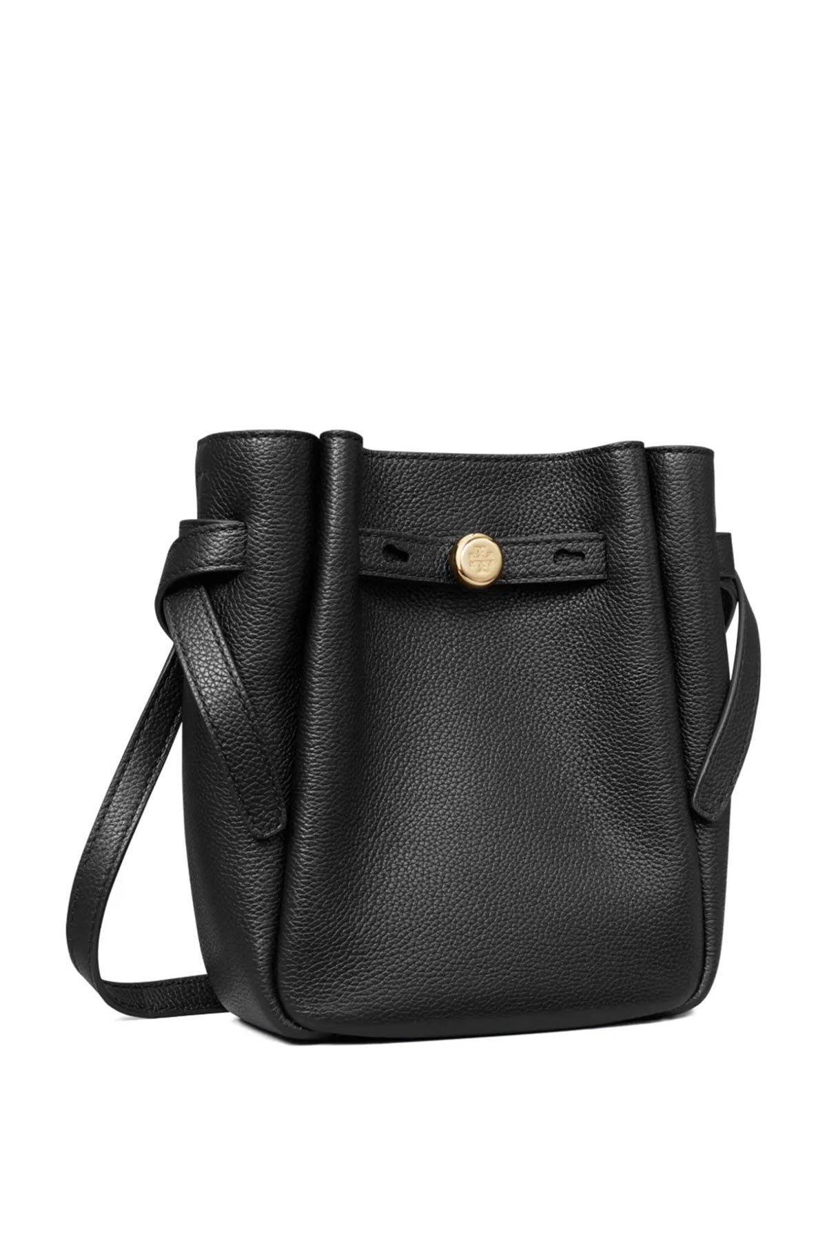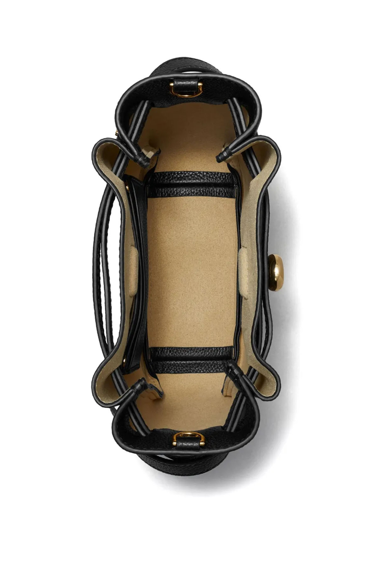 Modello in pelle martellata, fodera in microfibra con finitura in simil suede, chiusura con bottoni magnetici; cinturino con chiusura a bottoncino, manico superiore di 9,5 cm, tracolla regolabile e rimovibile, altezza 56,5 cm, 1 tasca interna. Sacchetto protettivo incluso.
