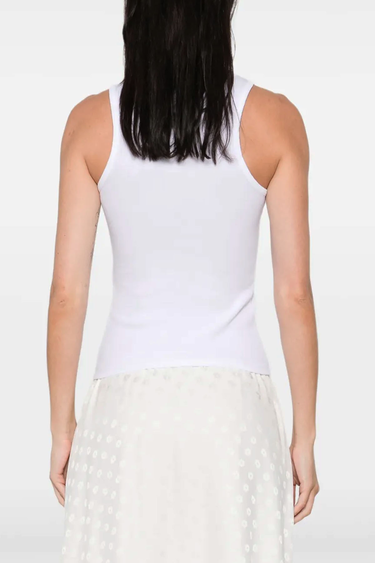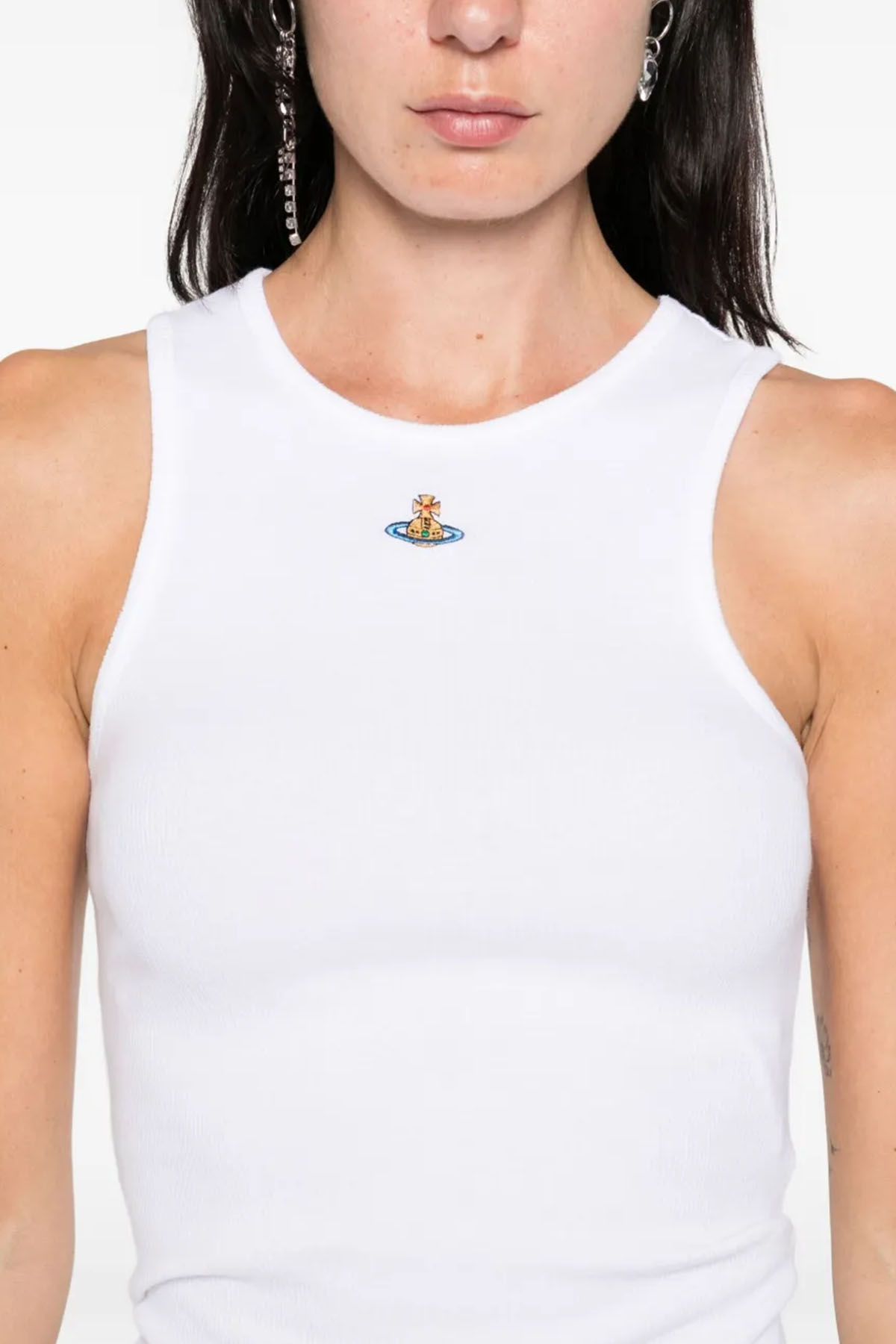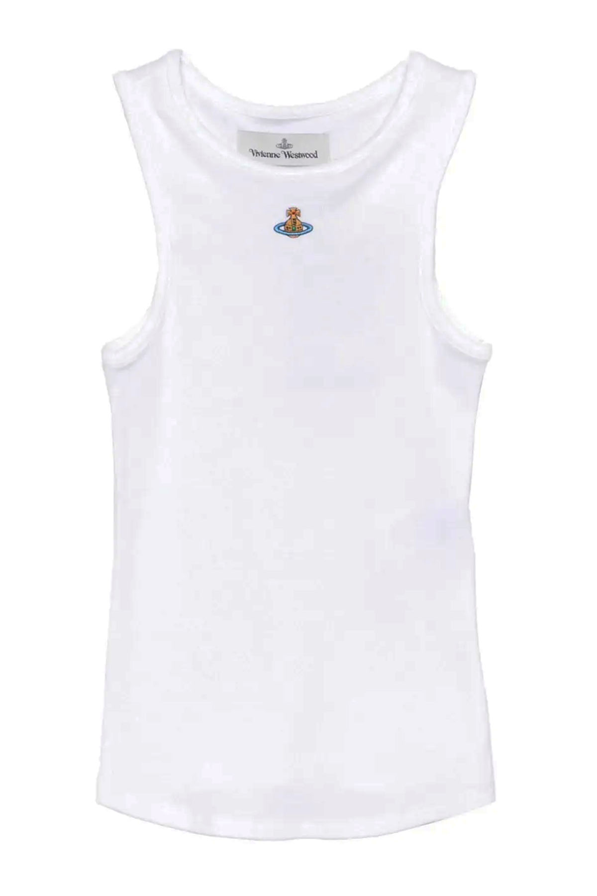 Modello con trama a coste, scollo rotondo, senza maniche, motivo Orb.